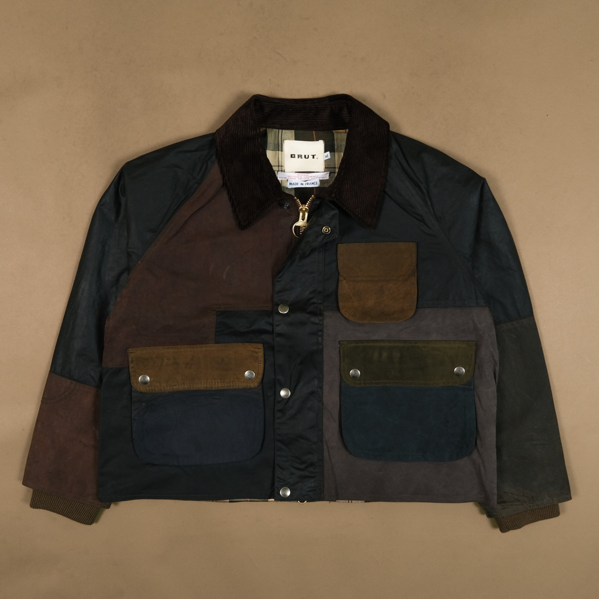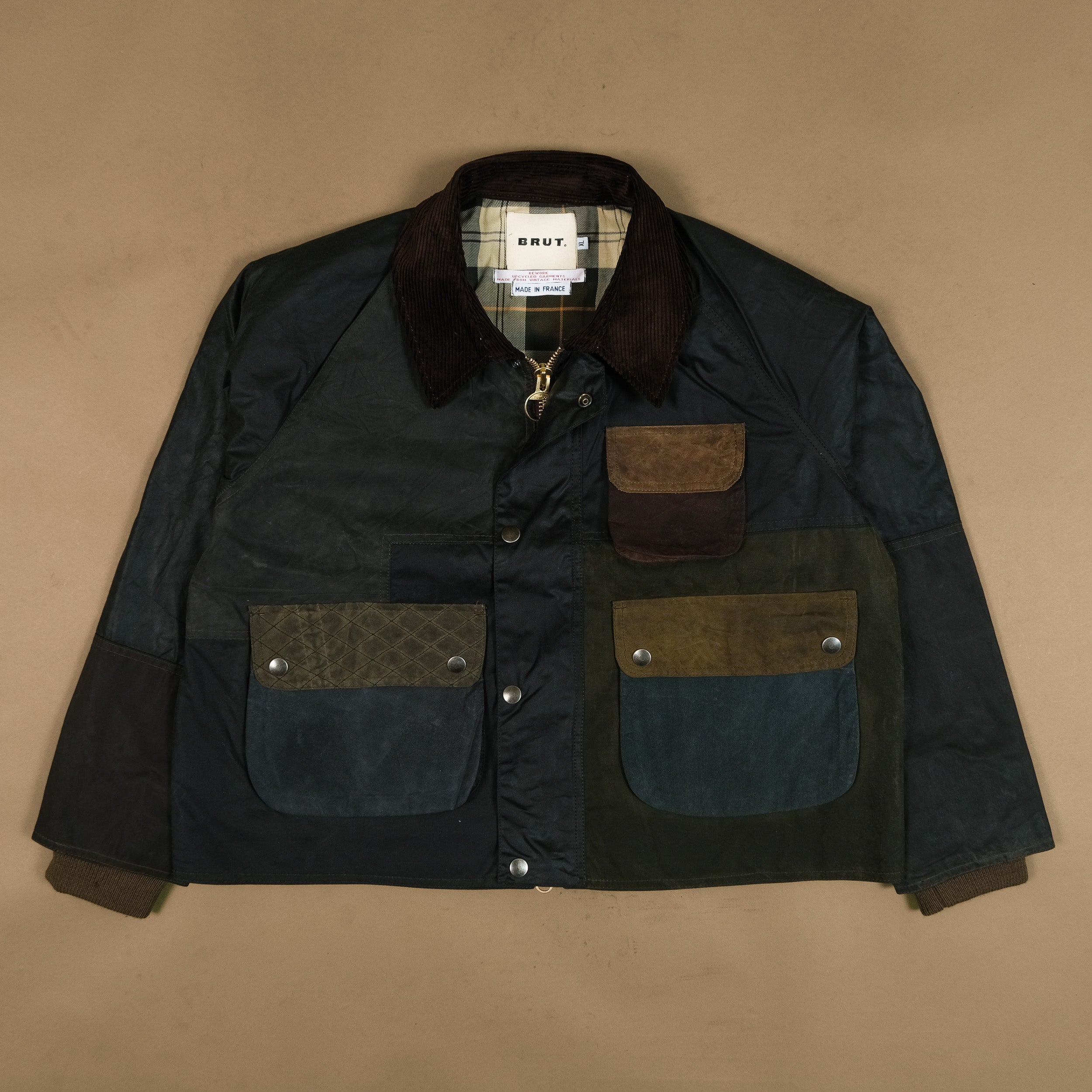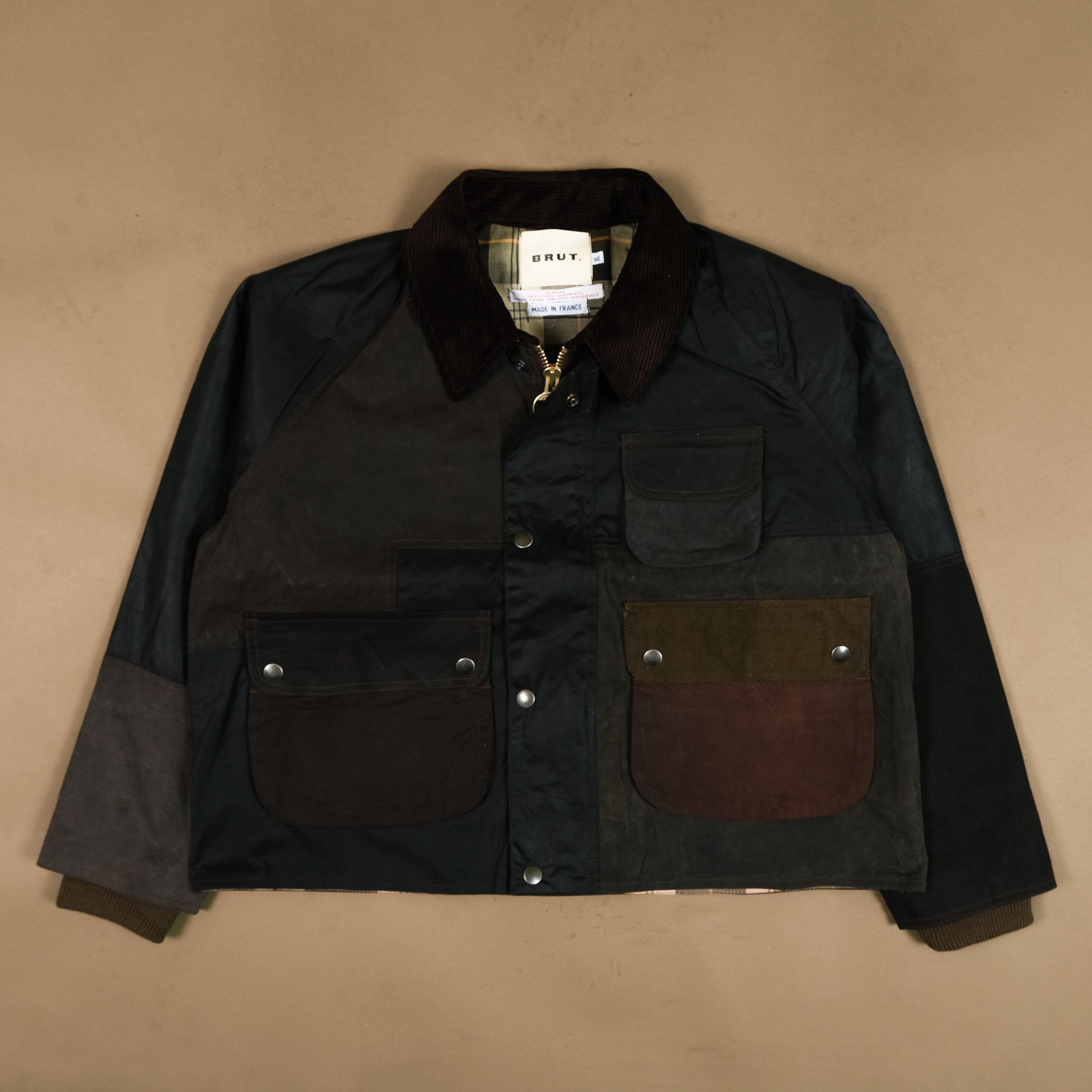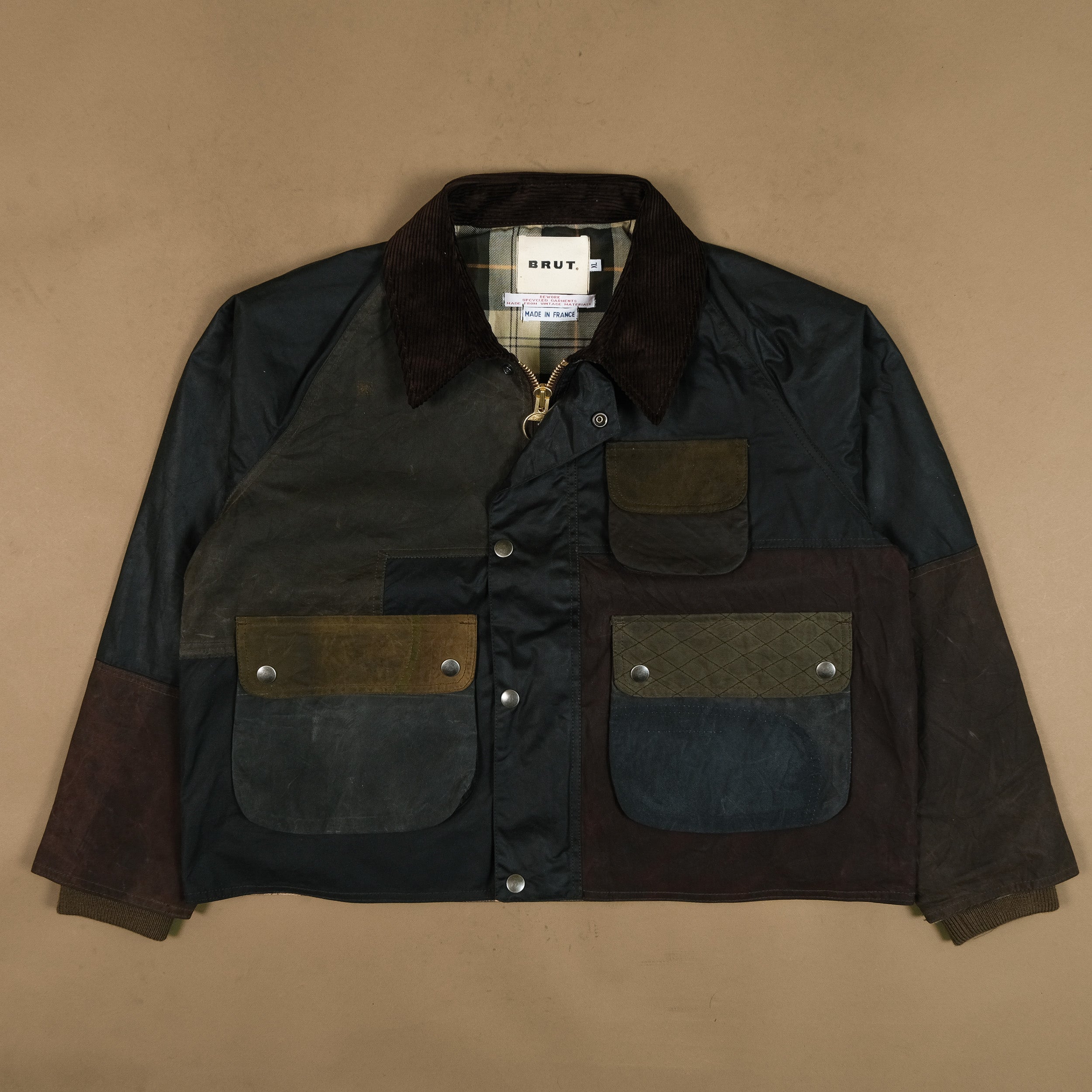 Built entirely from vintage Barbour jackets, the V3 pushed the idea of patchwork further, combining heritage fabrics with a refined, technical construction. Every jacket reimagines the Barbour DNA through BRUT's lens: cropped fit, reassembled panels and the visible character of wear.
