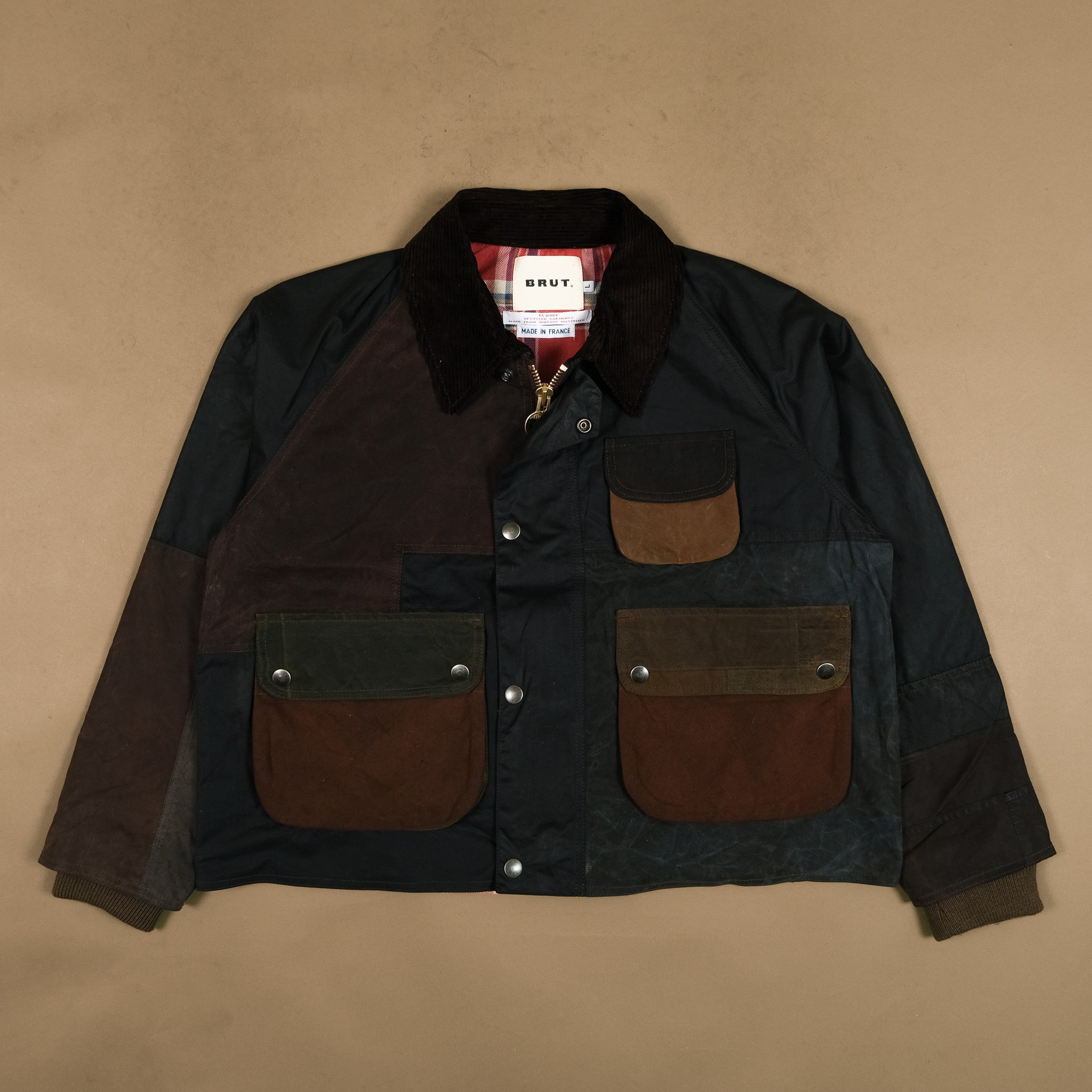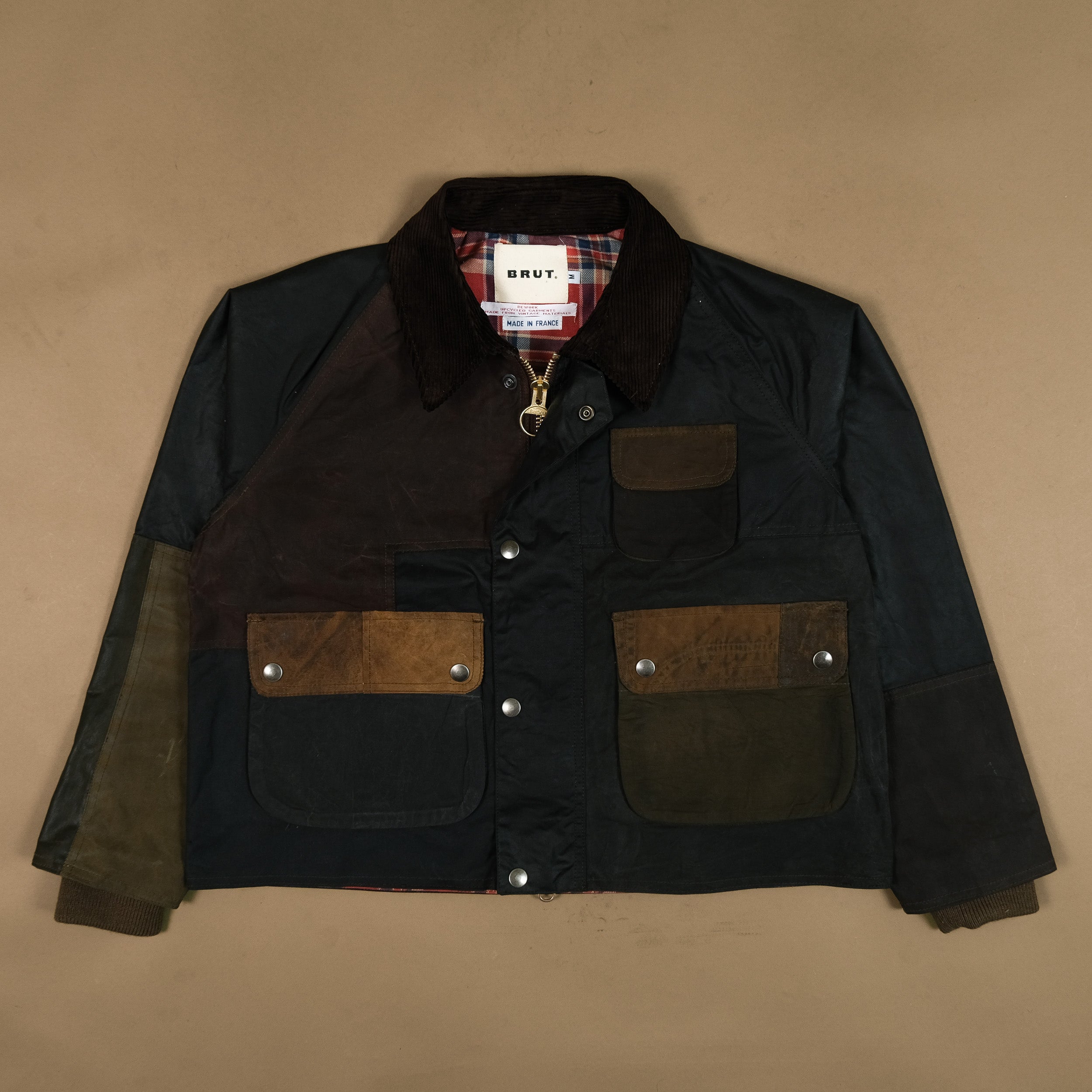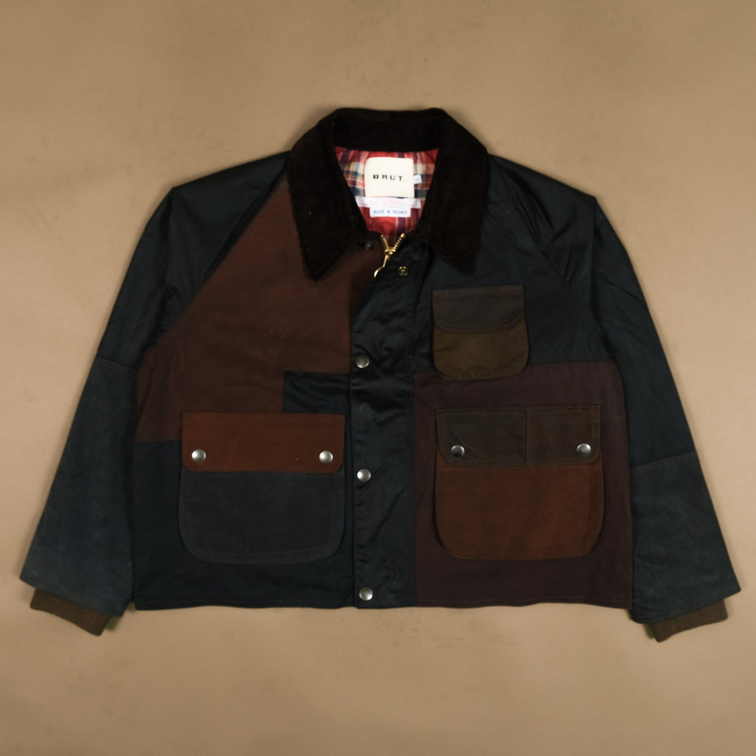 Built entirely from vintage Barbour jackets, the V3 pushed the idea of patchwork further, combining heritage fabrics with a refined, technical construction. Every jacket reimagines the Barbour DNA through BRUT's lens: cropped fit, reassembled panels and the visible character of wear.