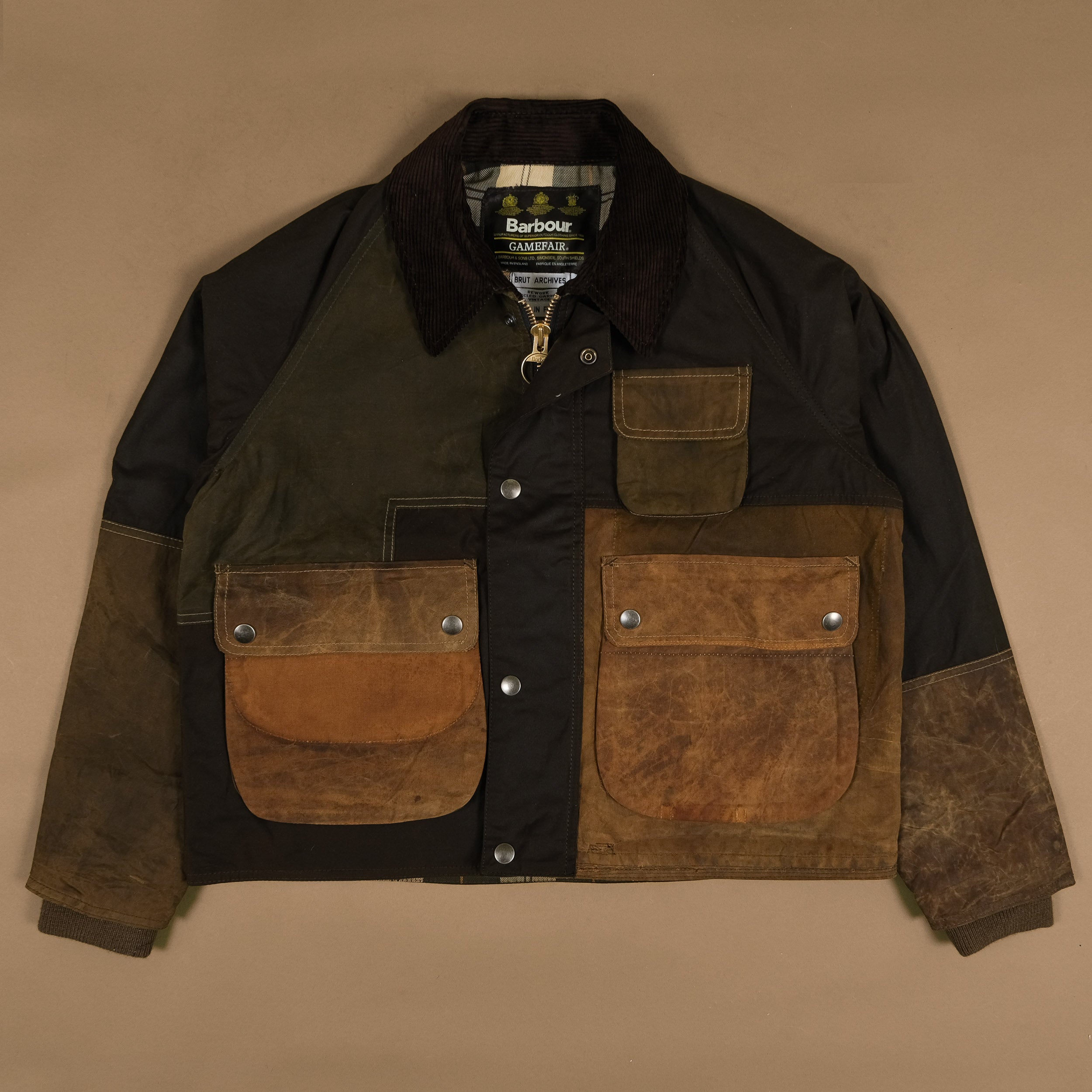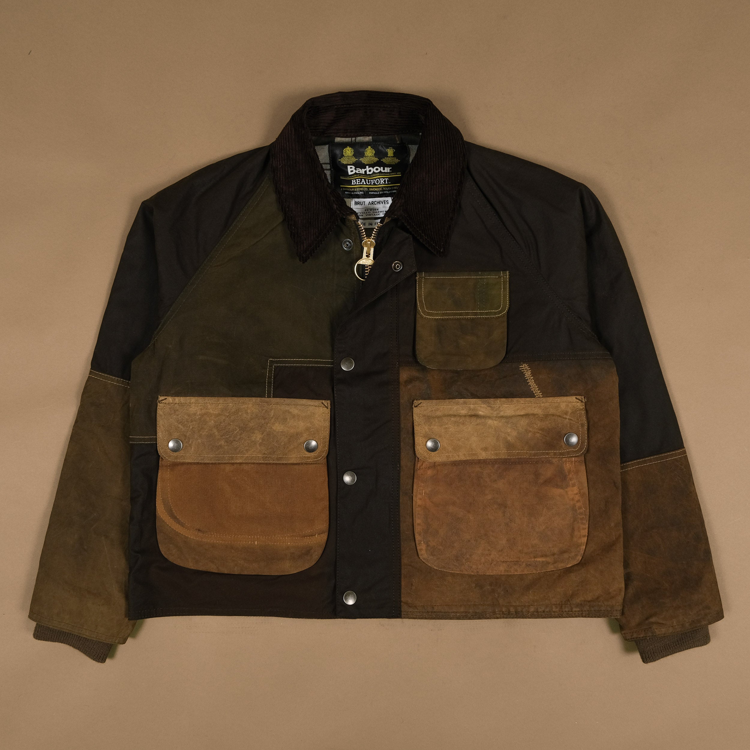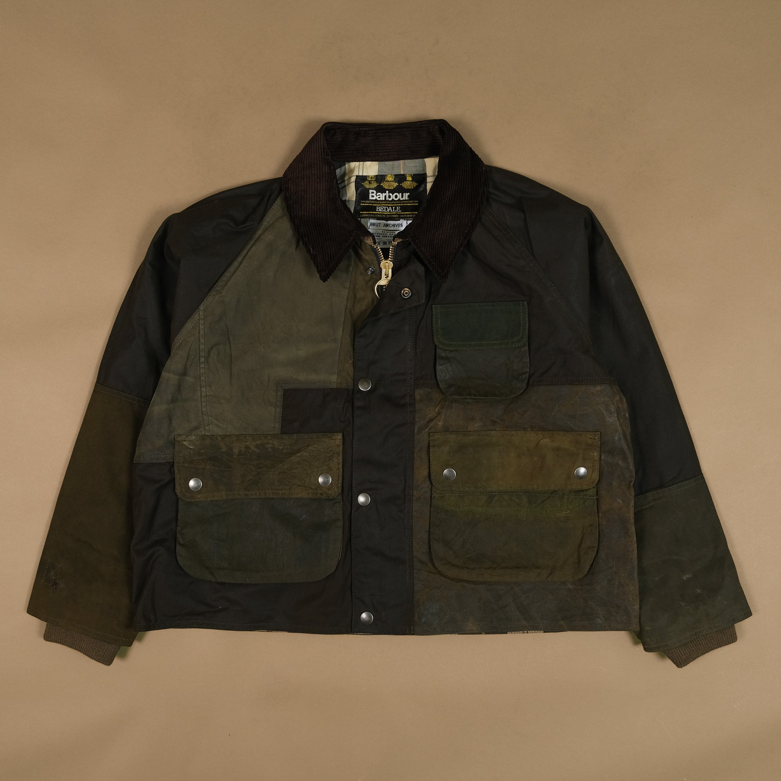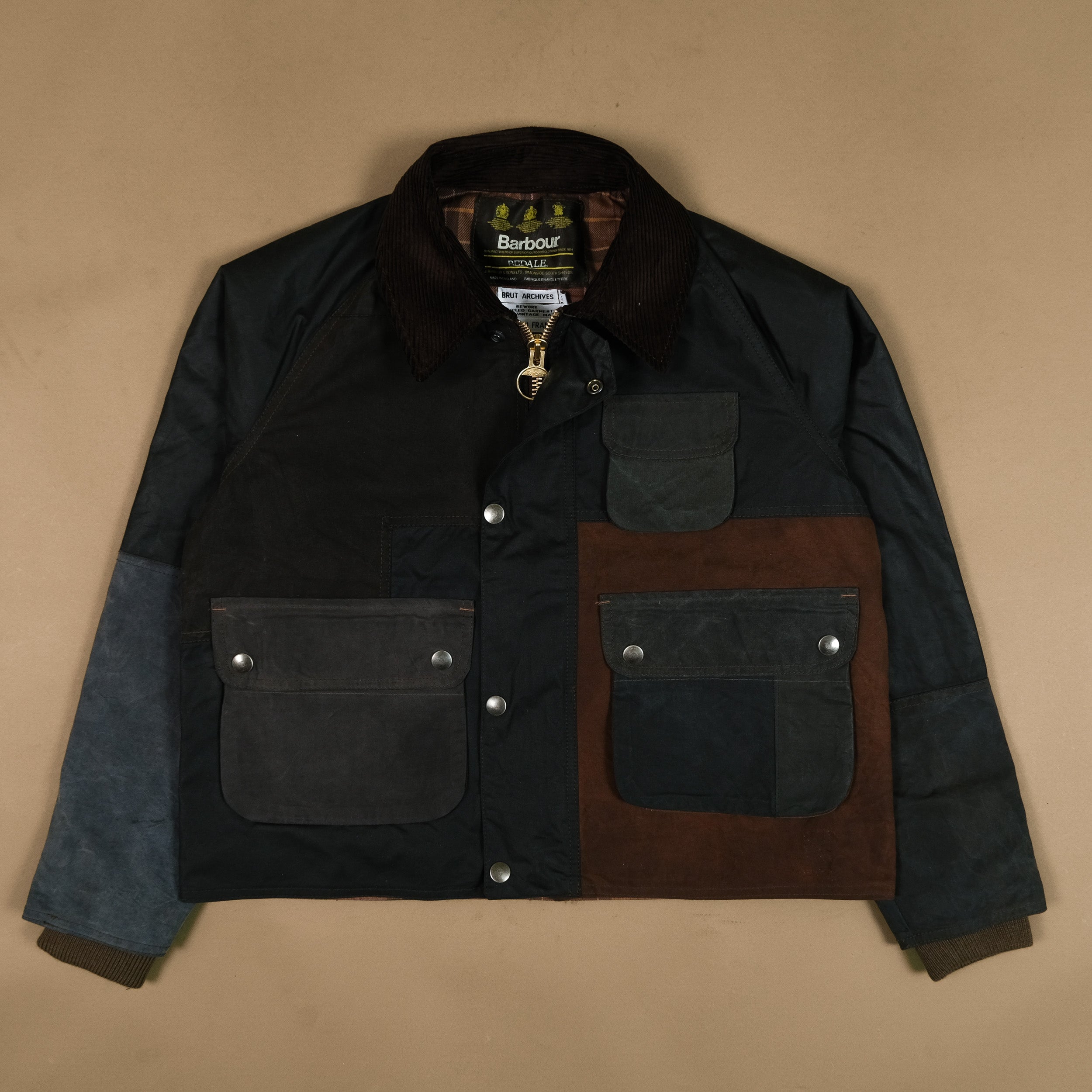 Built entirely from vintage Barbour jackets, the V3 pushed the idea of patchwork further, combining heritage fabrics with a refined, technical construction. Every jacket reimagines the Barbour DNA through BRUT's lens: cropped fit, reassembled panels and the visible character of wear.