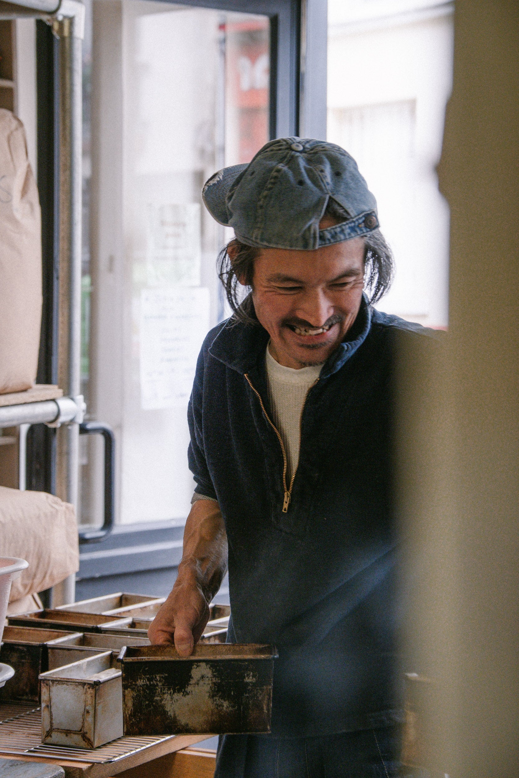 Forget about sleek counters and curated addresses: you enter a chaotic shop/lab/bakery, with inconvenient opening hours and bread scattered everywhere. As a soloist baker, Shinya kneads, bakes, welcomes, sells, and even handles communication on social media (an Instagram account with post-it notes listing the daily breads).