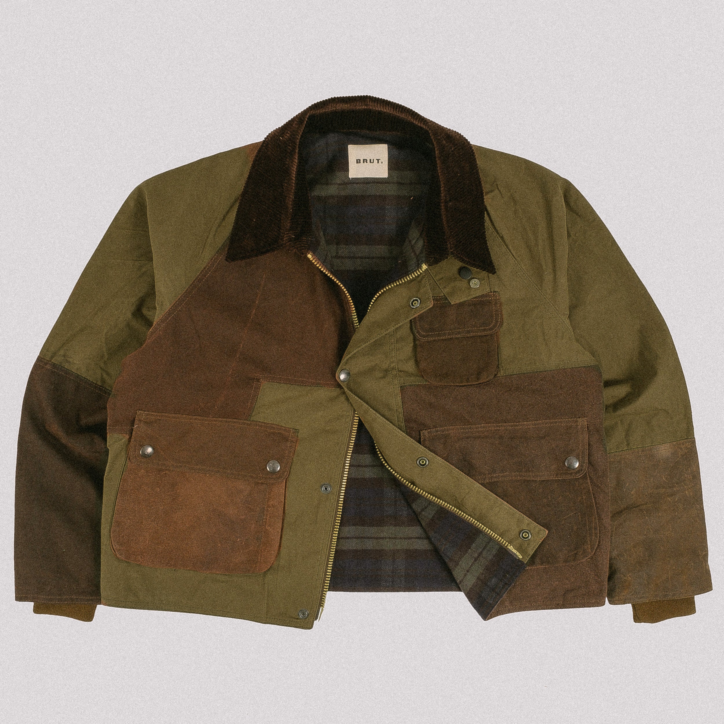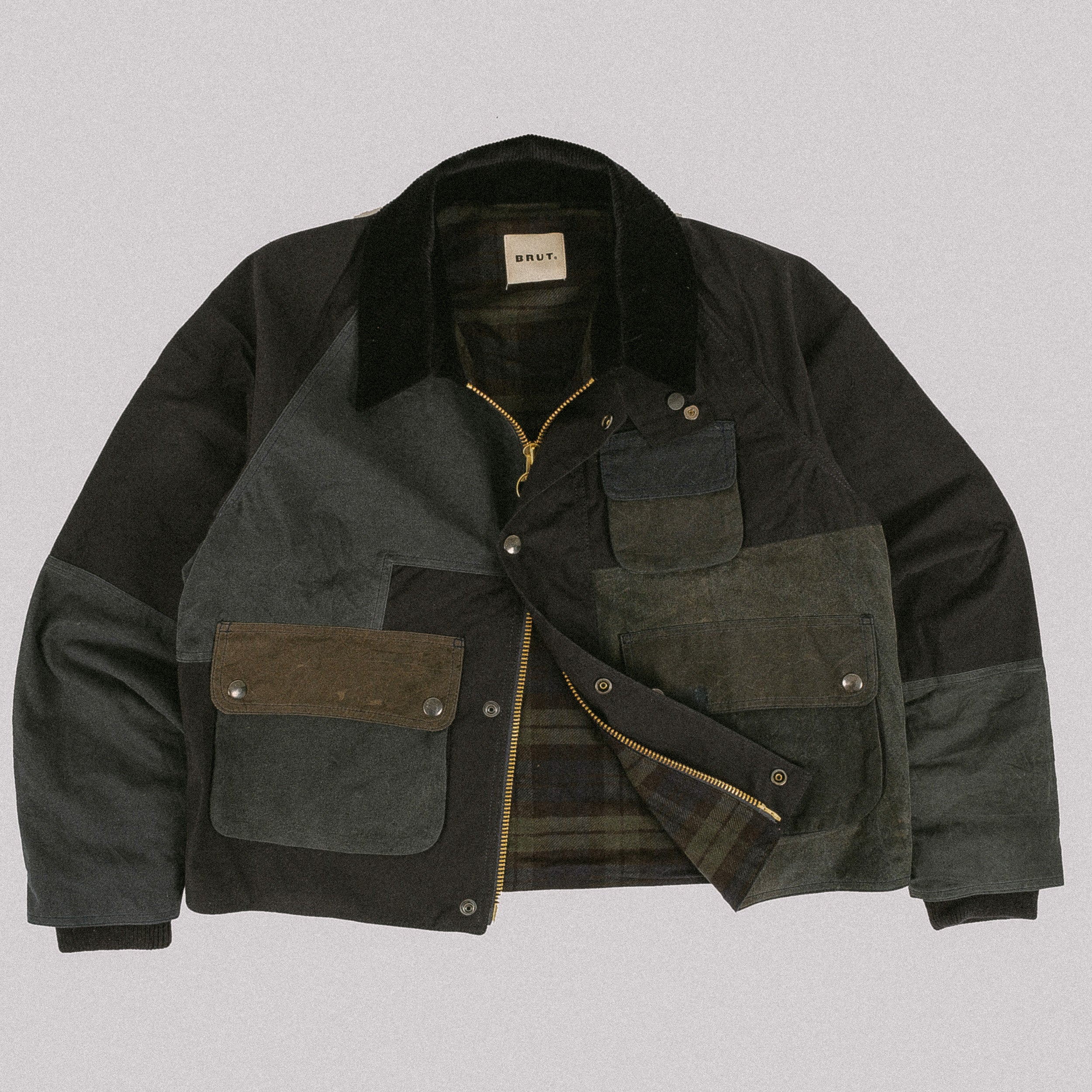 Our journey began in May 2021 with the launch of our first drop, which introduced the concept of reimagining the Barbour heritage, fusing it with modern design and a commitment to a greener future. We started by collecting hundreds of original Barbour jackets in different sizes, colors, and conditions. Each jacket had to be carefully unpicked to create a clean foundation, and every element was reworked to ensure the final design was both fresh and harmonio us in its combination of colors and materials. Each patch on this jacket tells its own story, showcasing the character and history of the vintage Barbour pieces it's composed of.