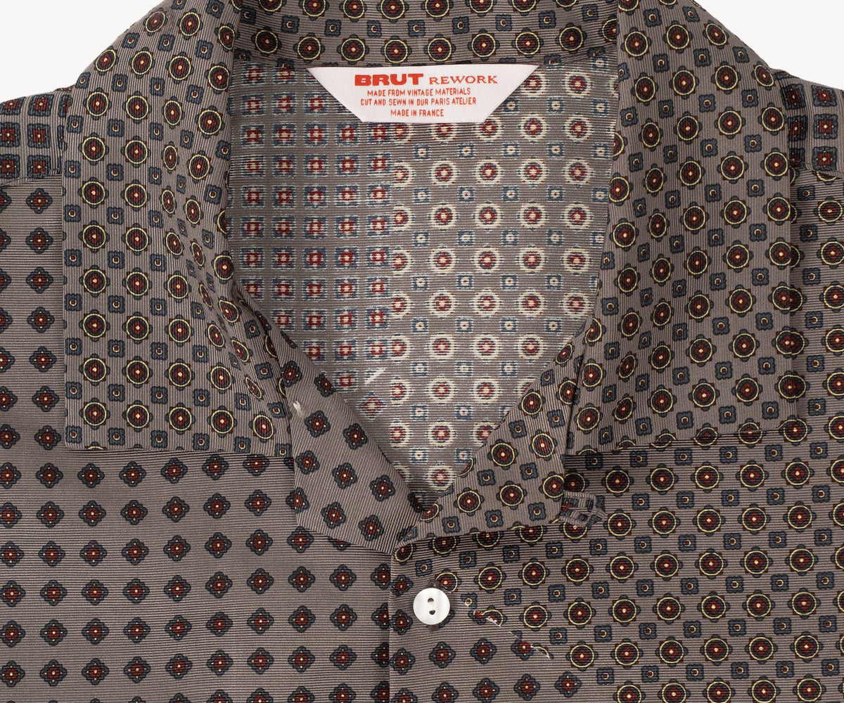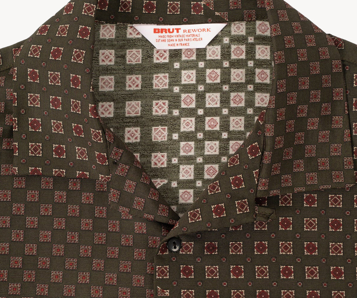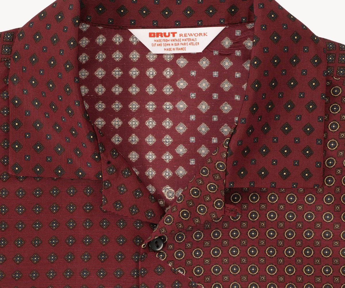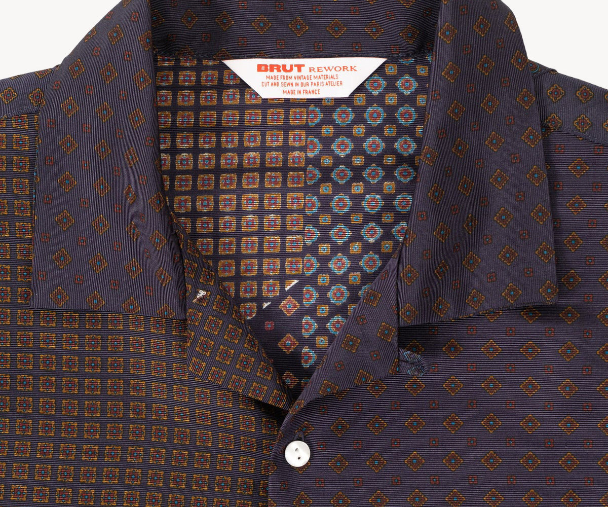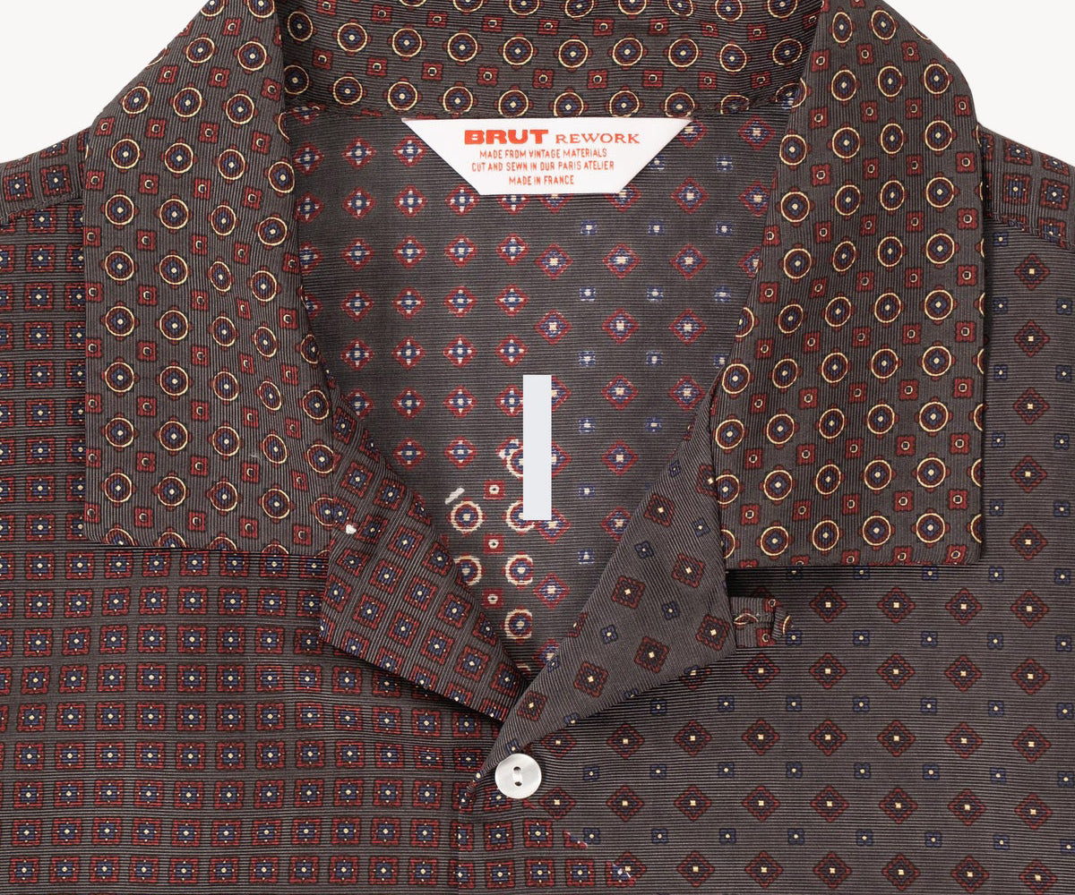 THESE SHIRTS ARE MADE FROM VINTAGE TIE FABRICS SOURCED FROM A WELL-KNOWN MERCHANT WHO USED TO SUPPLY PARISIAN LUXURY HOTELS AND NEO-CLASSICAL BISTROS BACK IN THE '70S. EACH PATTERN HAS ITS OWN VIBE, THERE ARE 35 IN TOTAL. EVERY PIECE IS ONE-OF-A-KIND AND HANDCRAFTED IN FRANCE, IN OUR PARIS WORKSHOP.