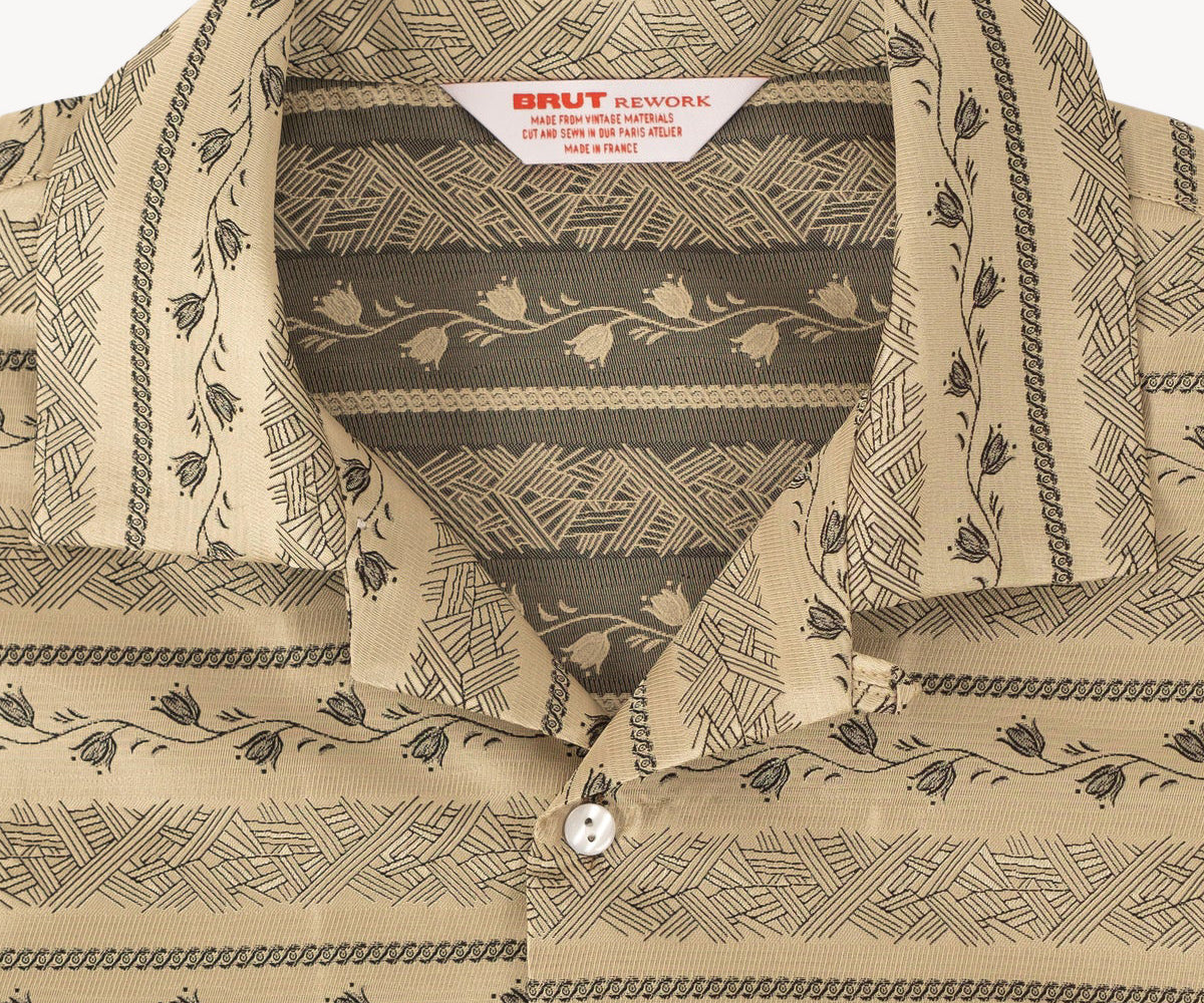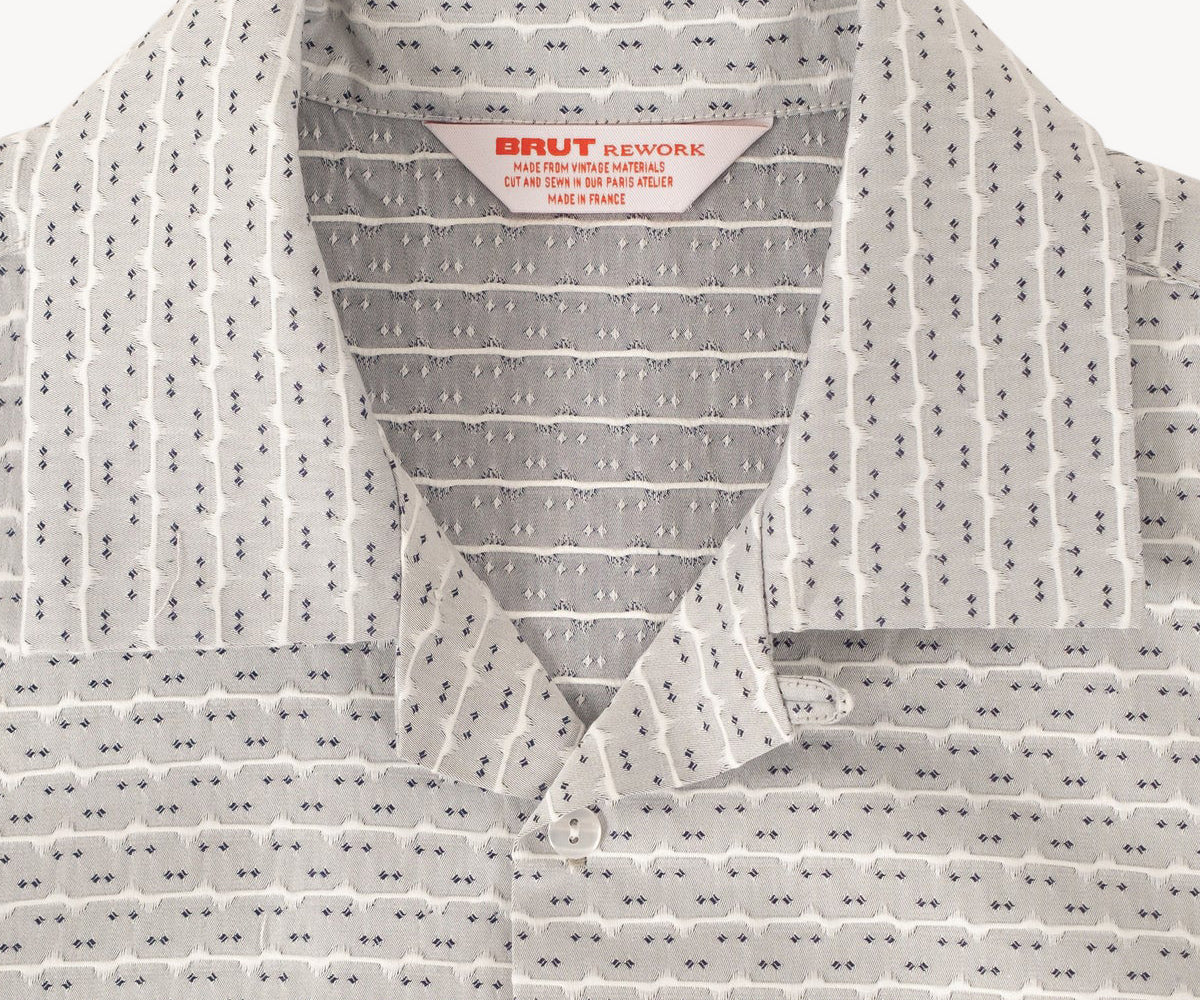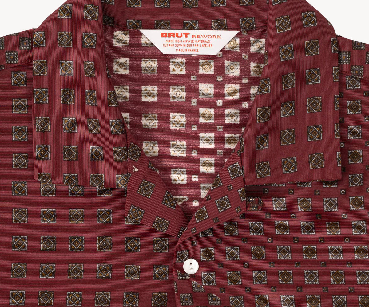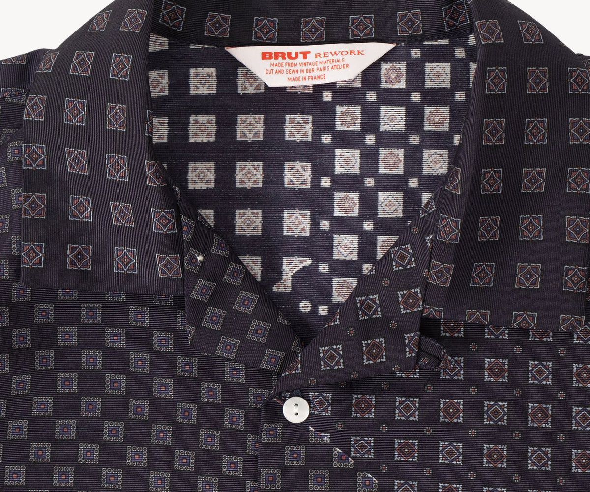 THESE SHIRTS ARE MADE FROM VINTAGE TIE FABRICS SOURCED FROM A WELL-KNOWN MERCHANT WHO USED TO SUPPLY PARISIAN LUXURY HOTELS AND NEO-CLASSICAL BISTROS BACK IN THE '70S. EACH PATTERN HAS ITS OWN VIBE, THERE ARE 35 IN TOTAL. EVERY PIECE IS ONE-OF-A-KIND AND HANDCRAFTED IN FRANCE, IN OUR PARIS WORKSHOP.