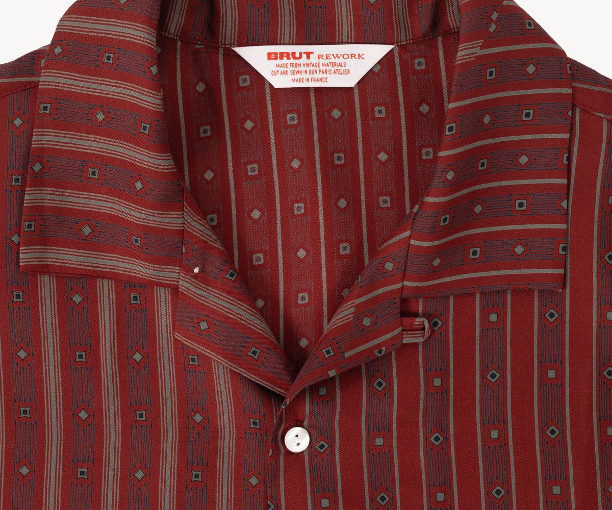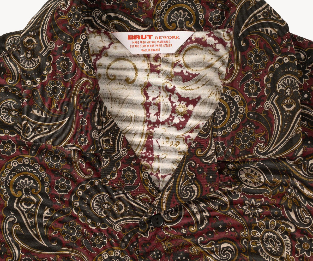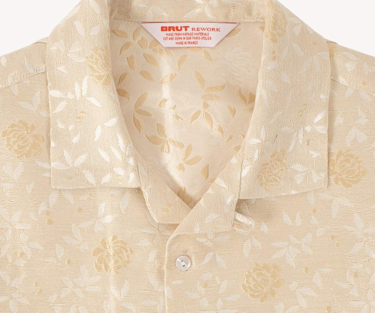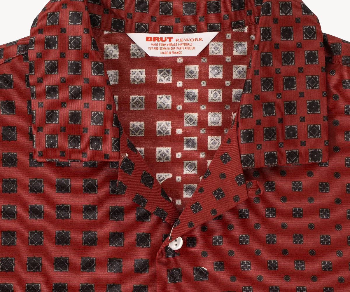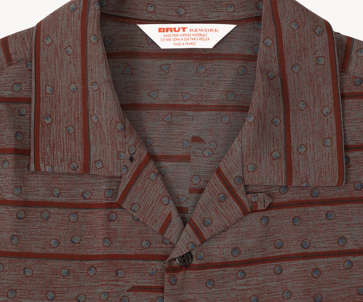 THESE SHIRTS ARE MADE FROM VINTAGE TIE FABRICS SOURCED FROM A WELL-KNOWN MERCHANT WHO USED TO SUPPLY PARISIAN LUXURY HOTELS AND NEO-CLASSICAL BISTROS BACK IN THE '70S. EACH PATTERN HAS ITS OWN VIBE, THERE ARE 35 IN TOTAL. EVERY PIECE IS ONE-OF-A-KIND AND HANDCRAFTED IN FRANCE, IN OUR PARIS WORKSHOP.