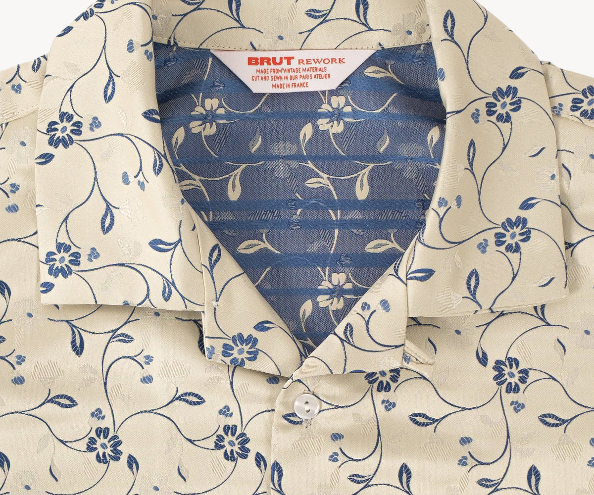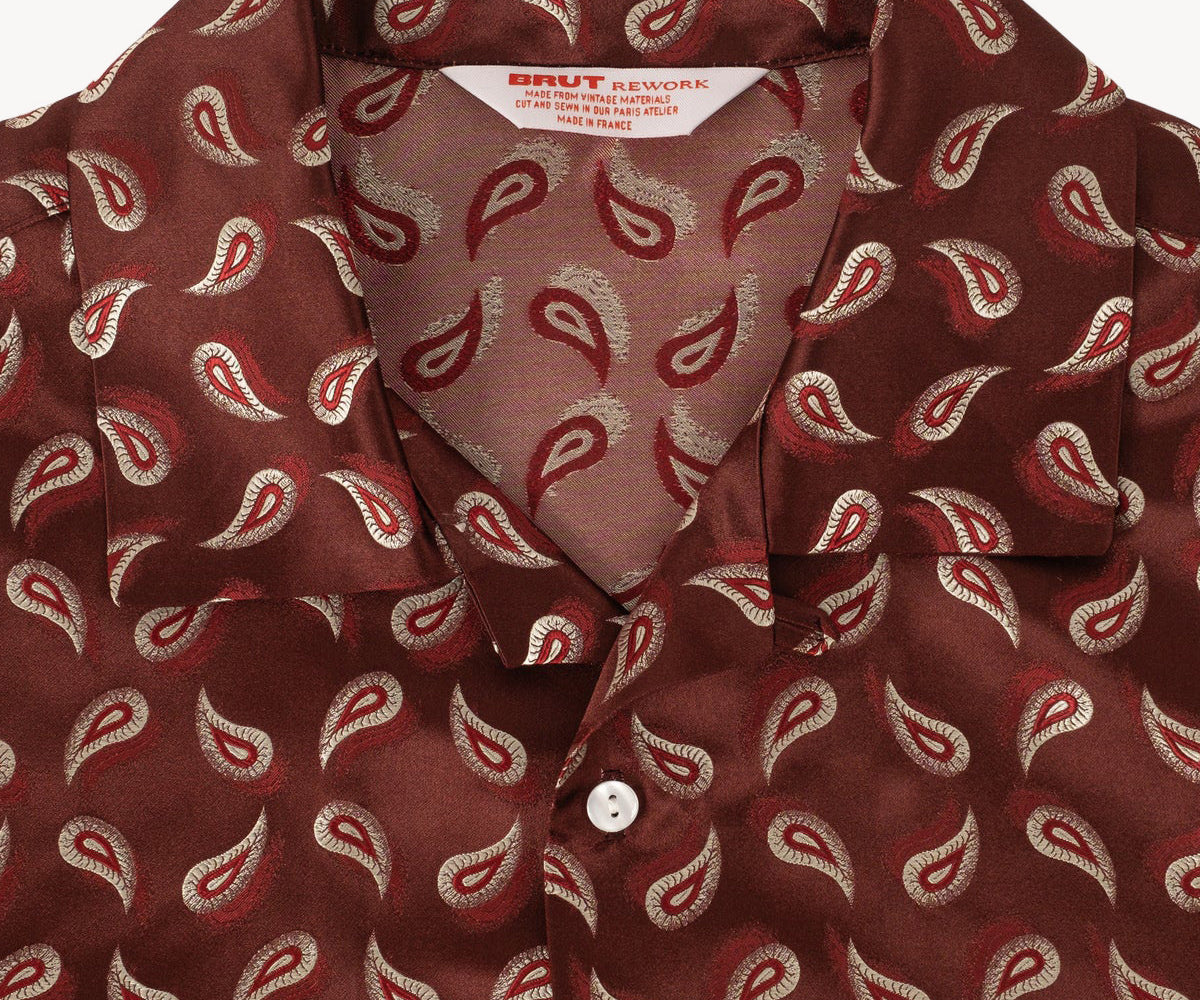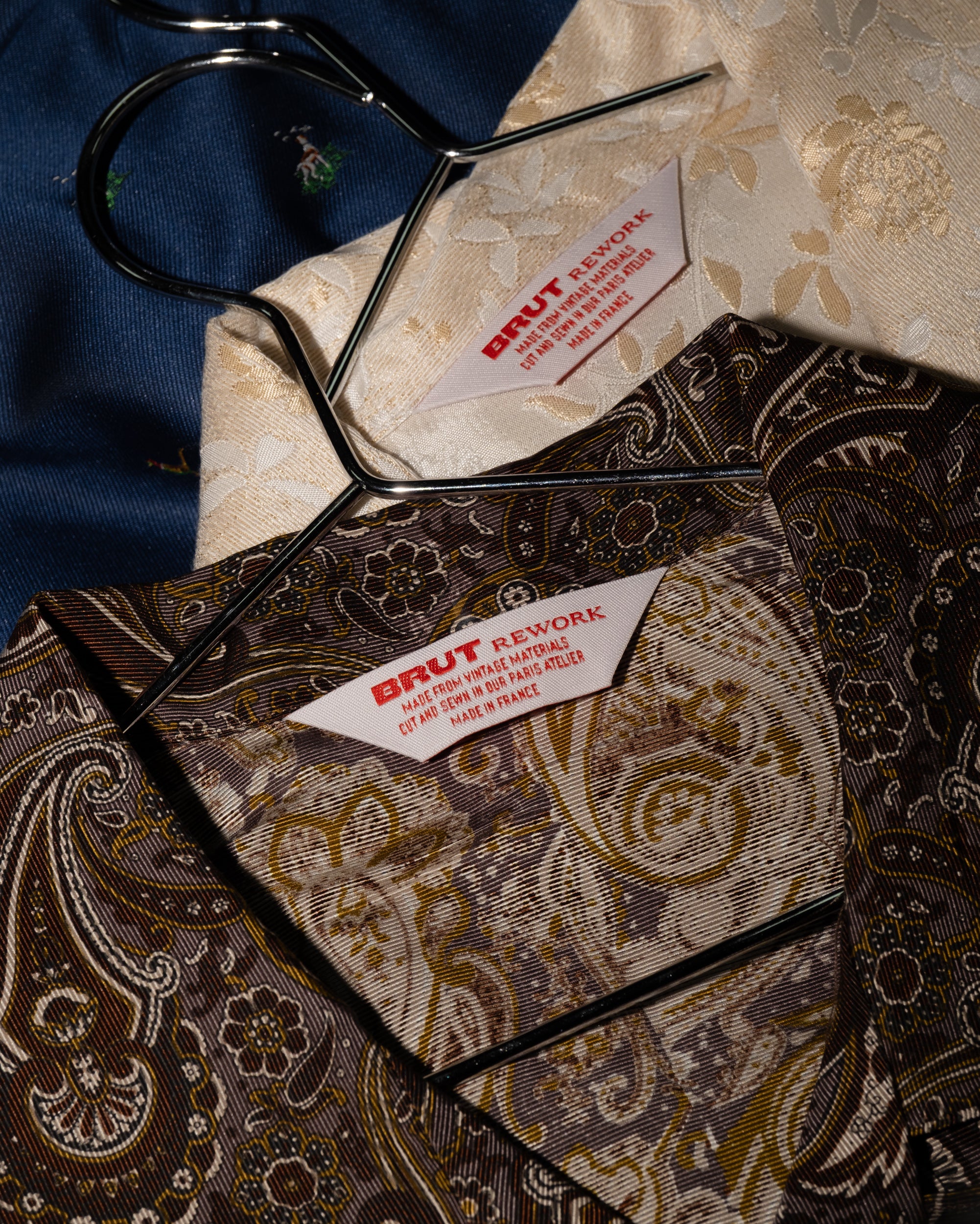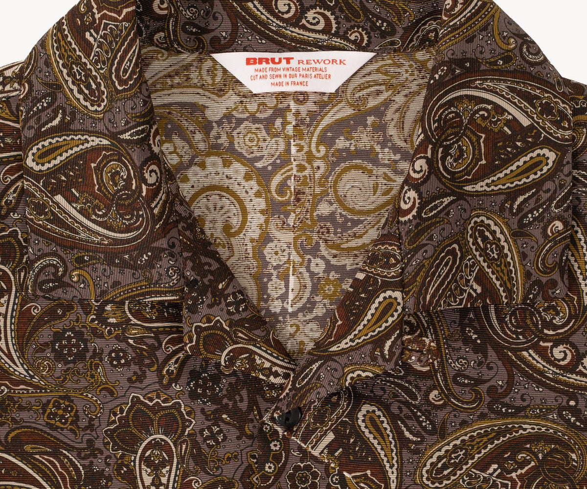 THESE SHIRTS ARE MADE FROM VINTAGE TIE FABRICS SOURCED FROM A WELL-KNOWN MERCHANT WHO USED TO SUPPLY PARISIAN LUXURY HOTELS AND NEO-CLASSICAL BISTROS BACK IN THE '70S. EACH PATTERN HAS ITS OWN VIBE, THERE ARE 35 IN TOTAL. EVERY PIECE IS ONE-OF-A-KIND AND HANDCRAFTED IN FRANCE, IN OUR PARIS WORKSHOP.