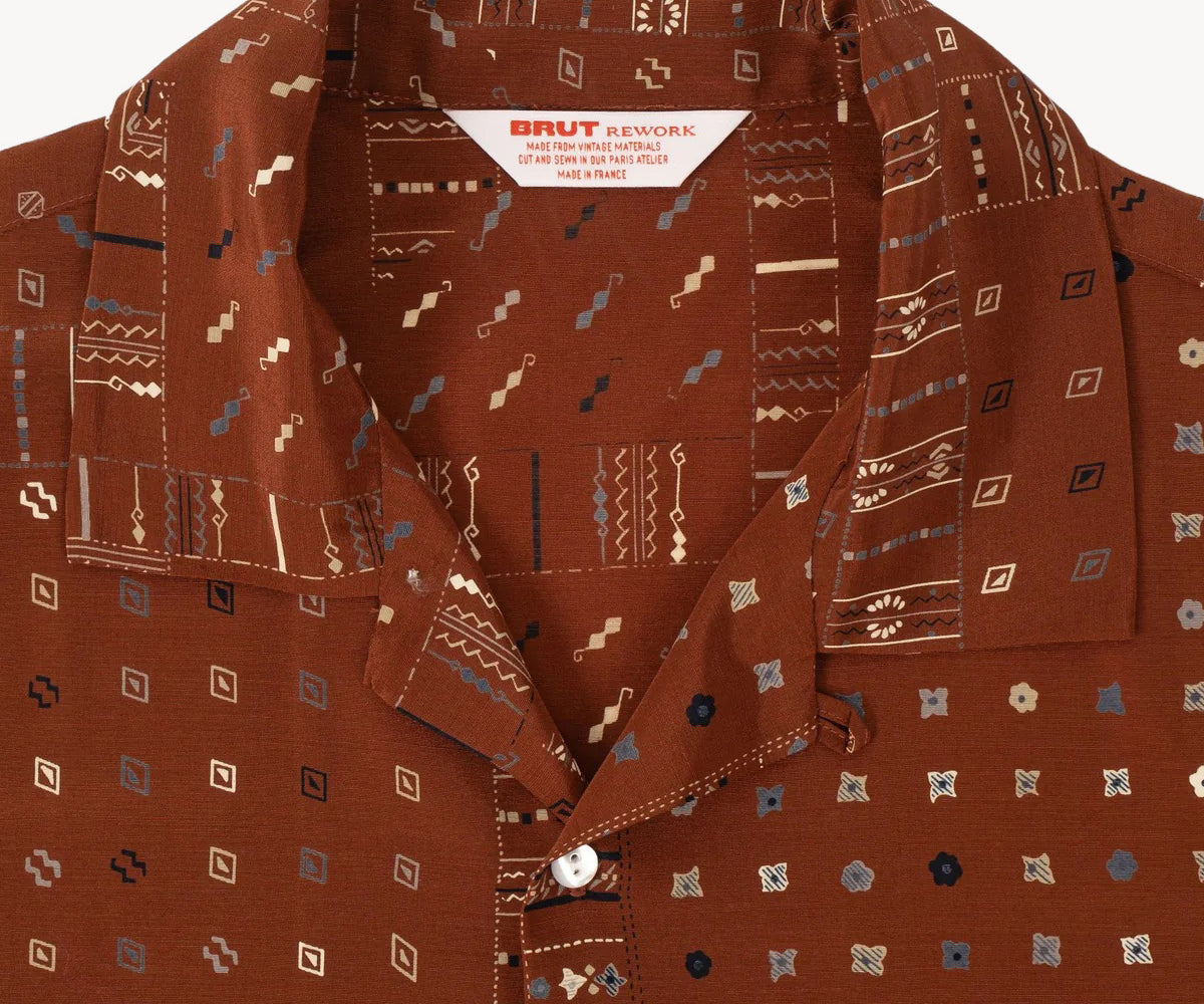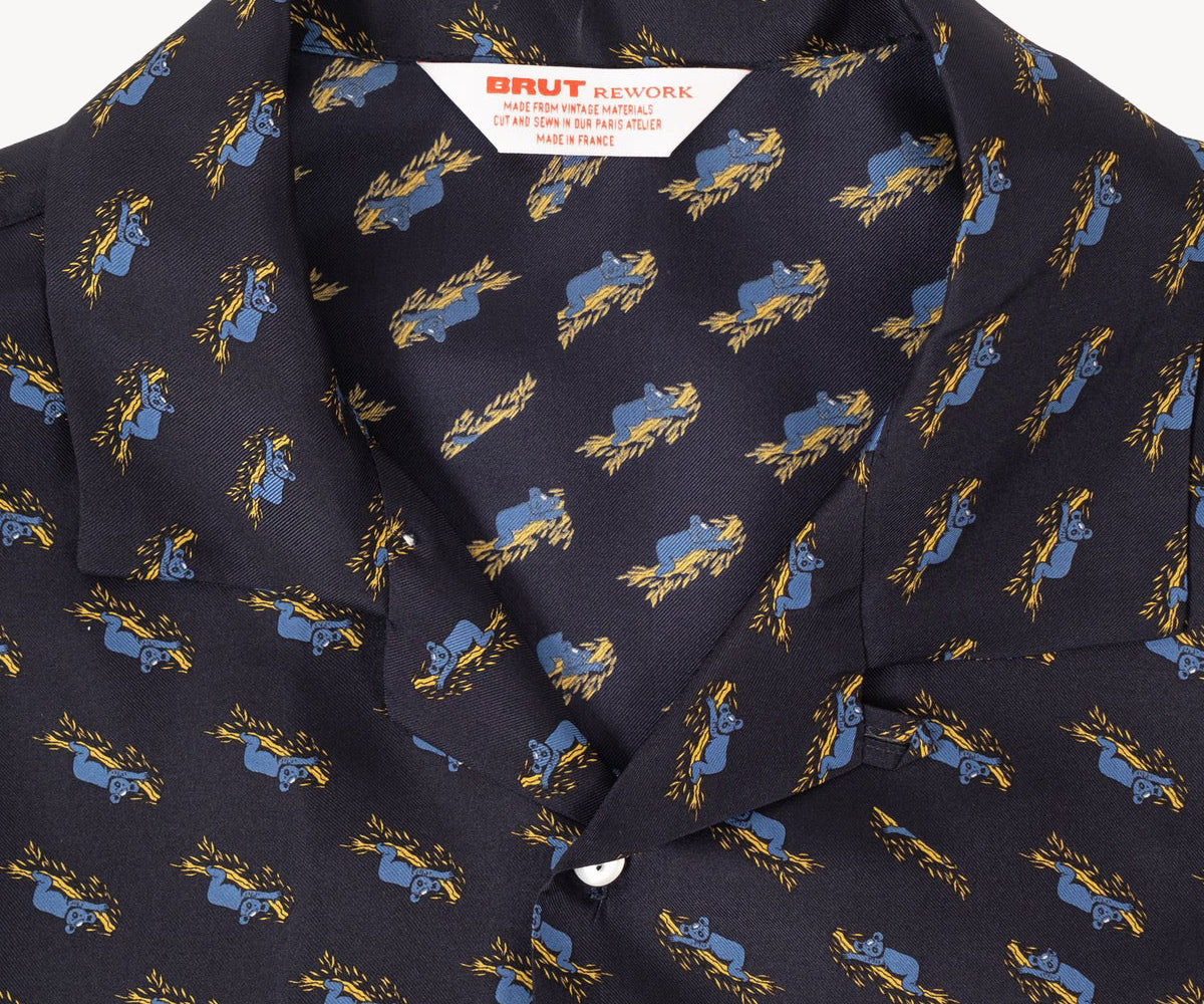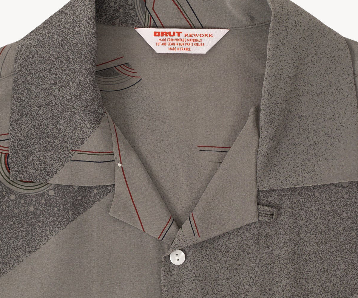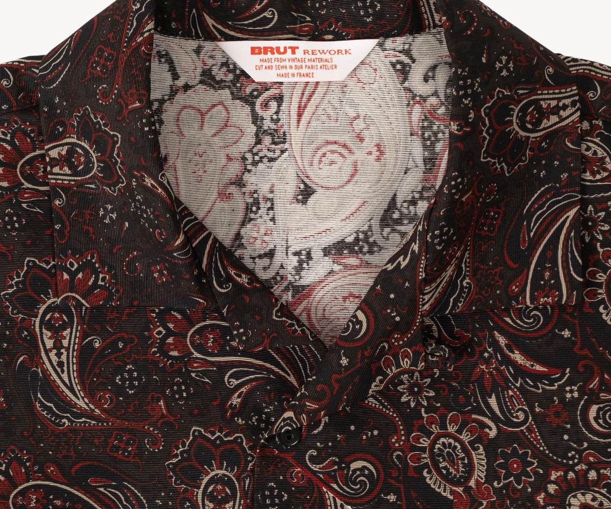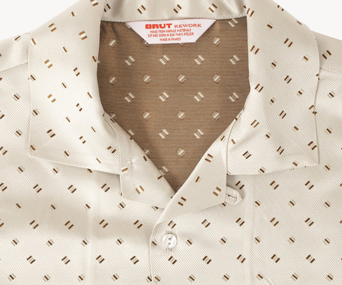 THESE SHIRTS ARE MADE FROM VINTAGE TIE FABRICS SOURCED FROM A WELL-KNOWN MERCHANT WHO USED TO SUPPLY PARISIAN LUXURY HOTELS AND NEO-CLASSICAL BISTROS BACK IN THE '70S. EACH PATTERN HAS ITS OWN VIBE, THERE ARE 35 IN TOTAL. EVERY PIECE IS ONE-OF-A-KIND AND HANDCRAFTED IN FRANCE, IN OUR PARIS WORKSHOP.
