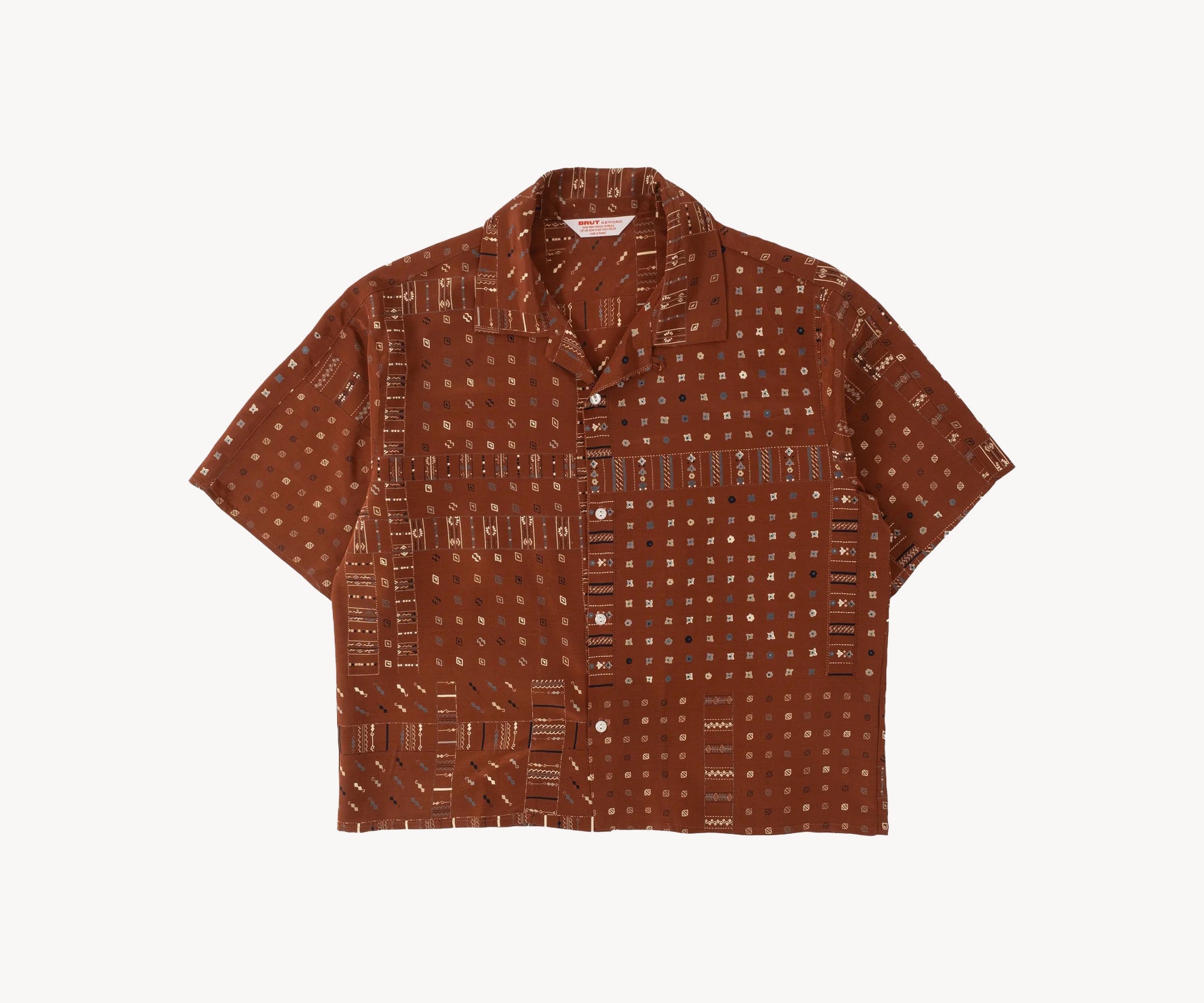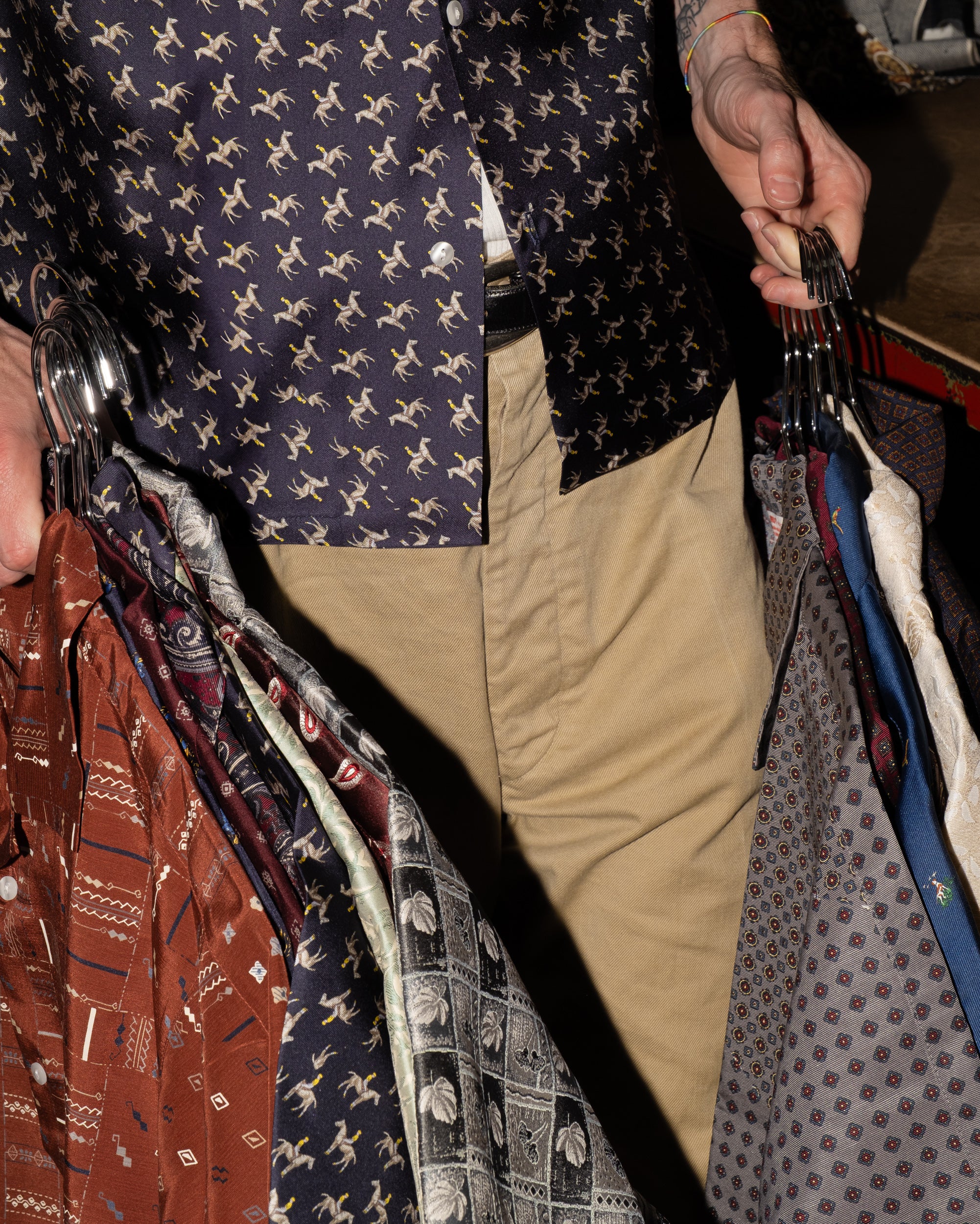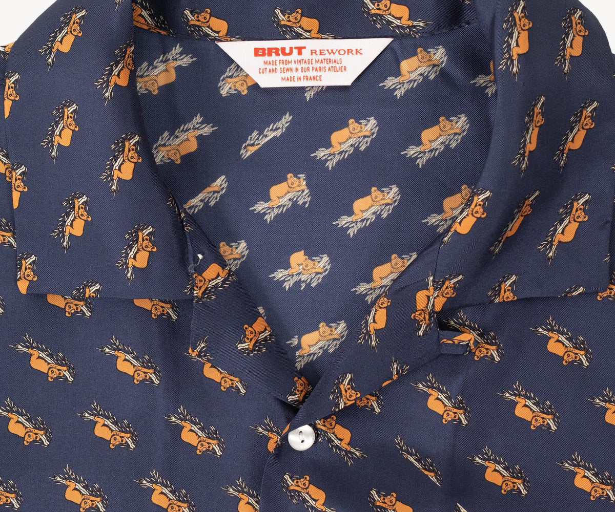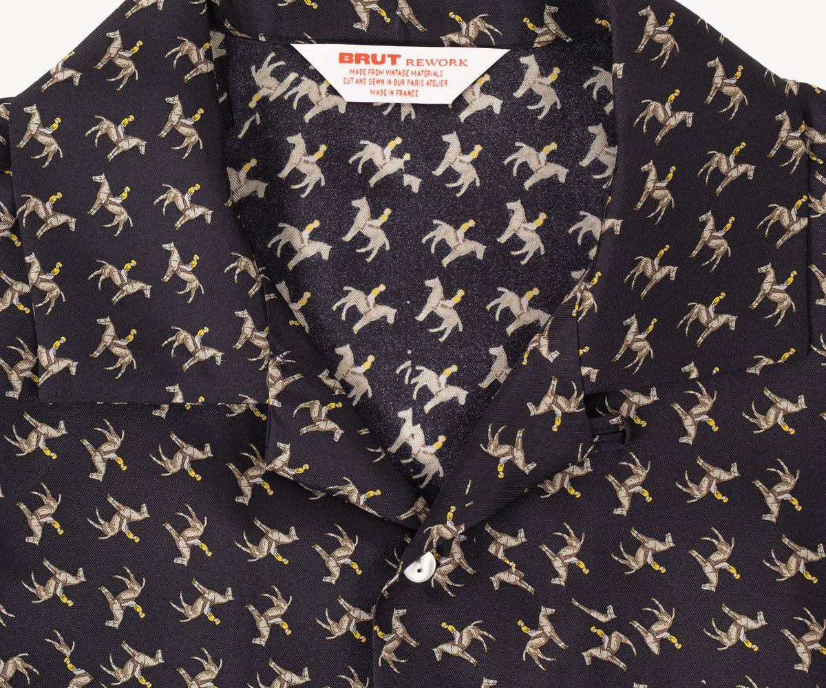 THESE SHIRTS ARE MADE FROM VINTAGE TIE FABRICS SOURCED FROM A WELL-KNOWN MERCHANT WHO USED TO SUPPLY PARISIAN LUXURY HOTELS AND NEO-CLASSICAL BISTROS BACK IN THE '70S. EACH PATTERN HAS ITS OWN VIBE, THERE ARE 35 IN TOTAL. EVERY PIECE IS ONE-OF-A-KIND AND HANDCRAFTED IN FRANCE, IN OUR PARIS WORKSHOP.