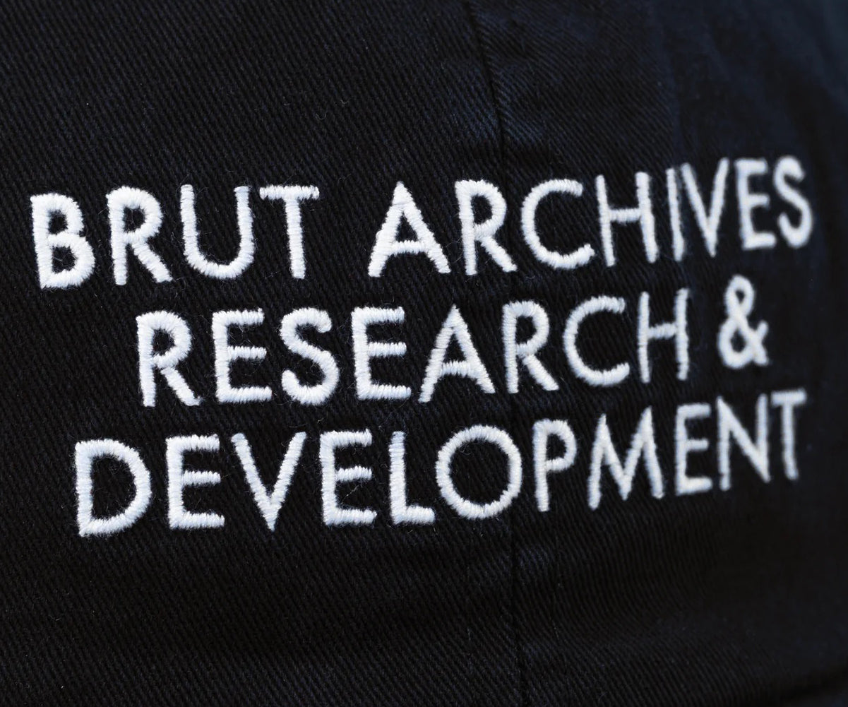 BRUT RESEARCH graphic embroidered on front.