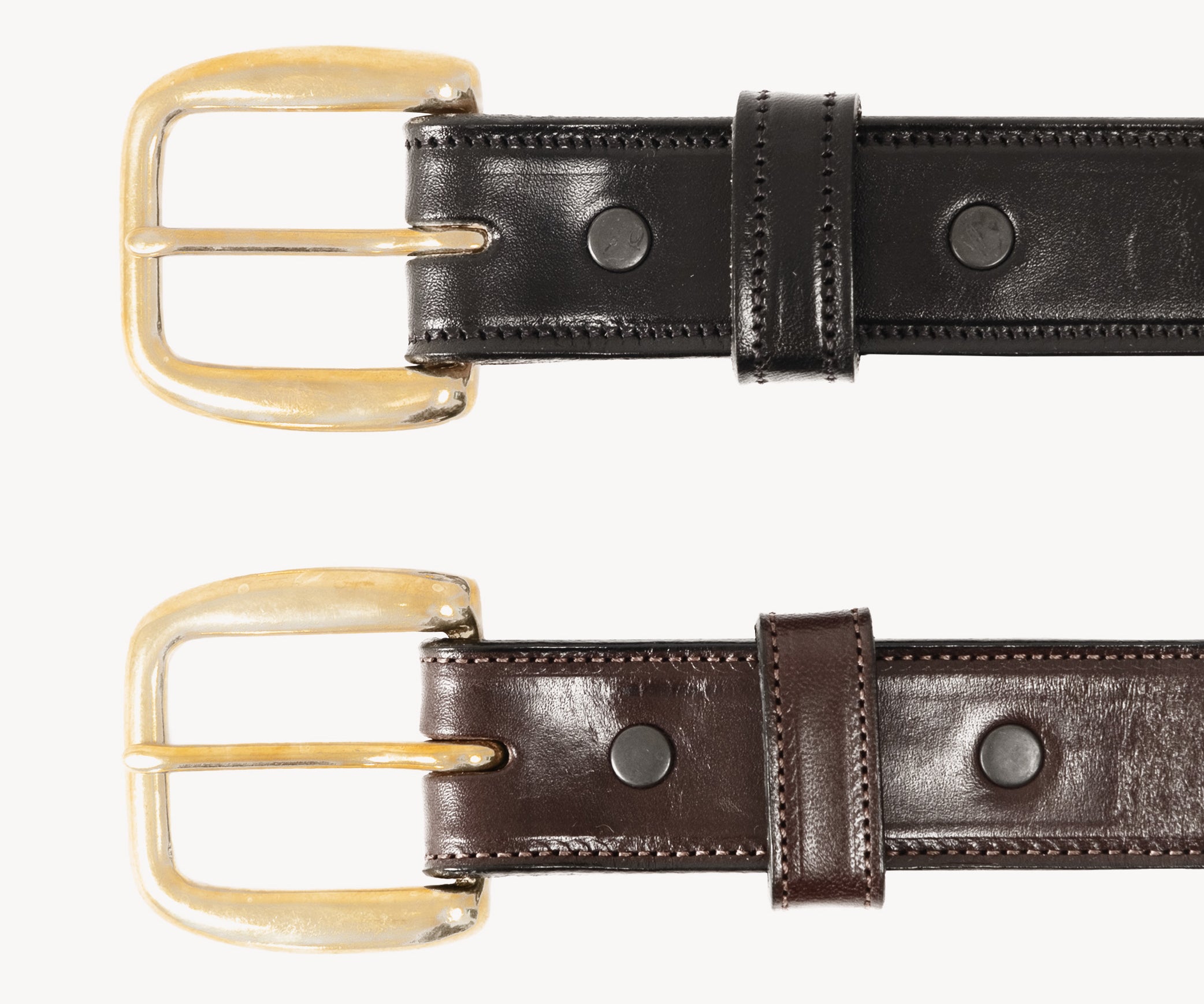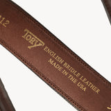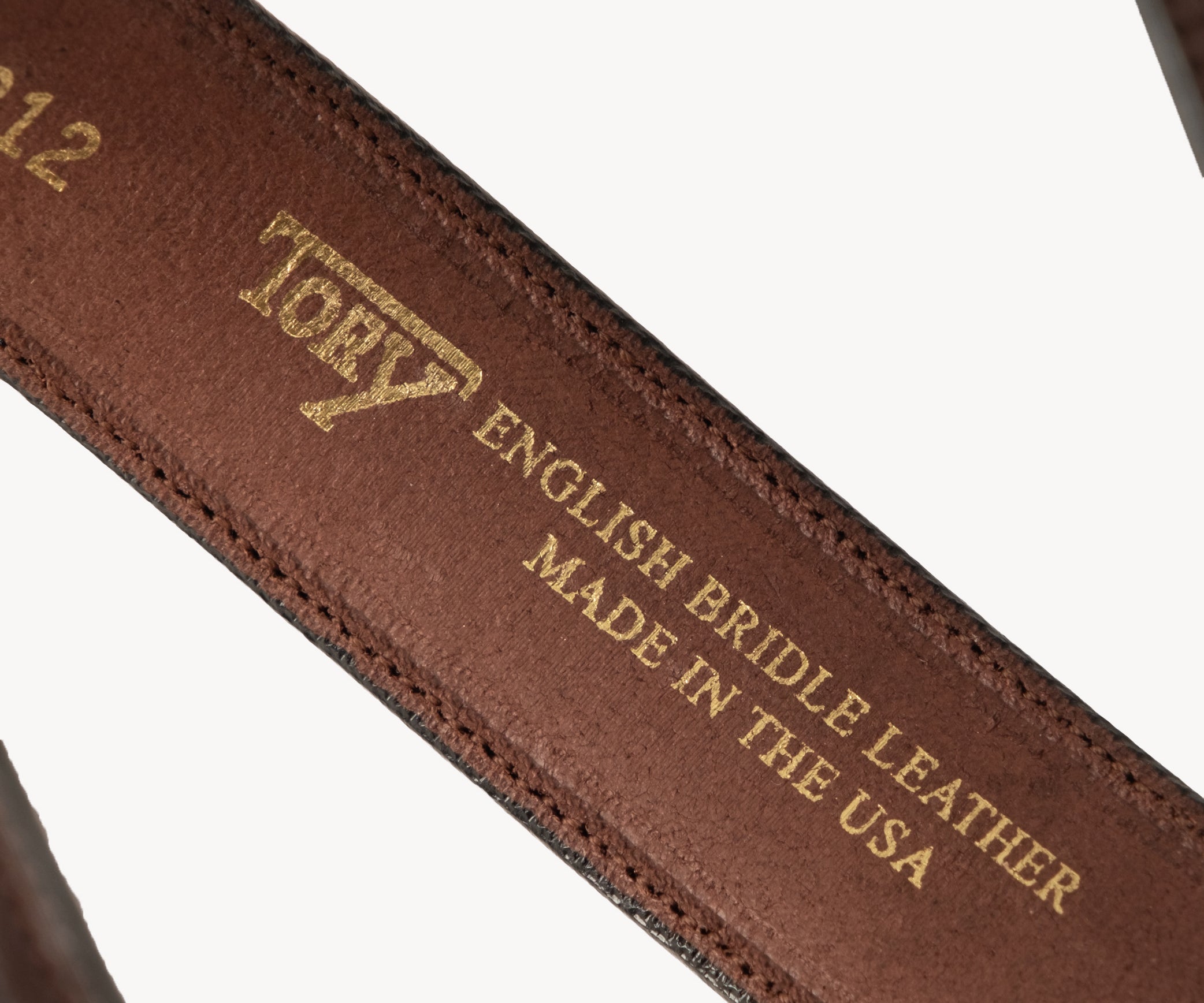 The belt is manufactured for BRUT by Tory Leather, an American company based in Curwensville, PA. Each belt is made from English bridle leather sourced from Wickett & Craig, awarded the 2015 Tannery of the Year.