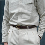 The belt is manufactured for BRUT by Tory Leather, an American company based in Curwensville, PA. Each belt is made from English bridle leather sourced from Wickett & Craig, awarded the 2015 Tannery of the Year.