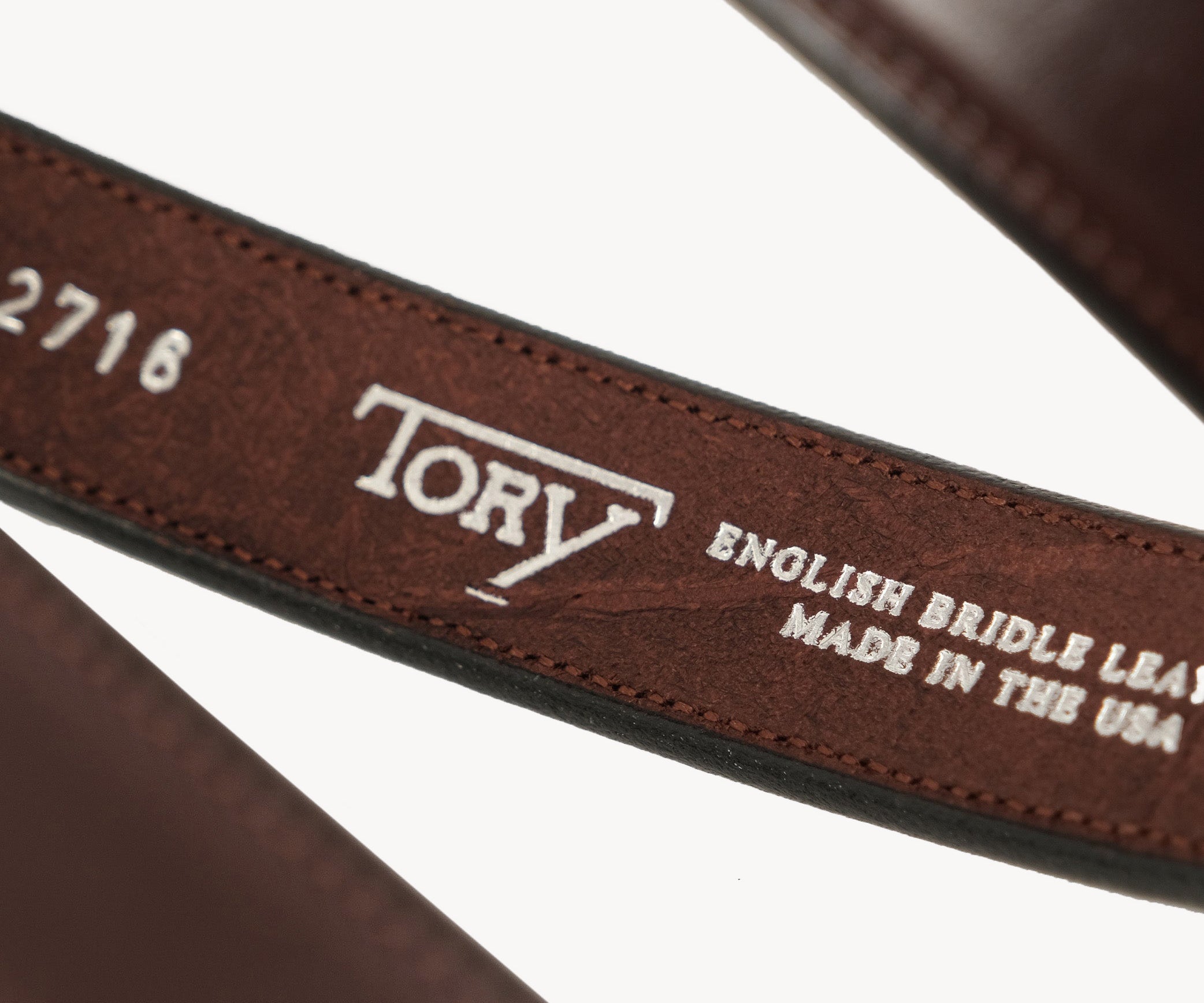 The belt is manufactured for BRUT by Tory Leather, an American company based in Curwensville, PA. Each belt is made from English bridle leather sourced from Wickett & Craig, awarded the 2015 Tannery of the Year.