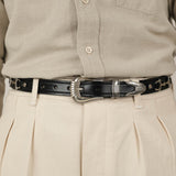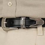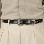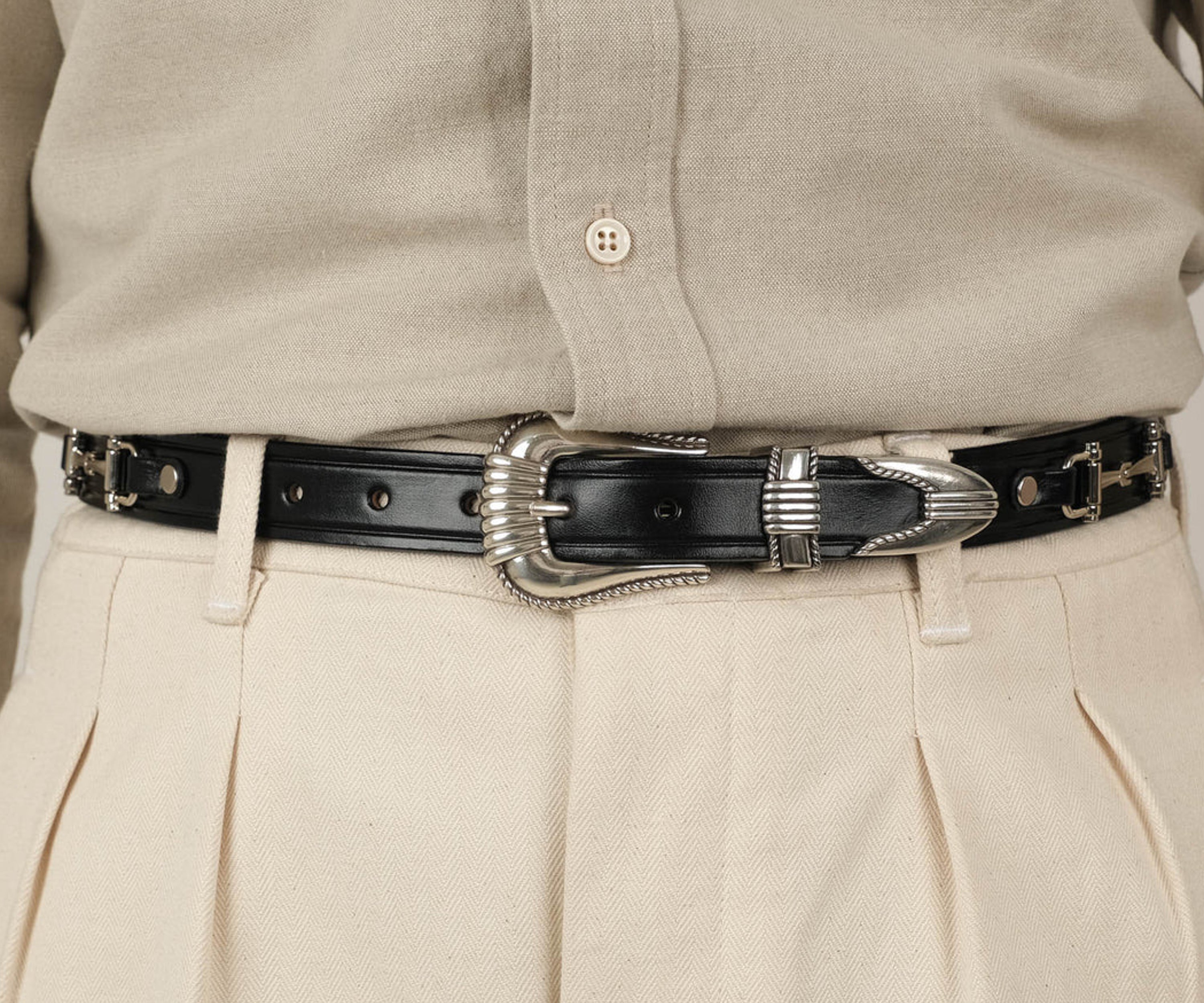 Our modern cowboy belt features a blend of traditional elements. Made from english bridle leather, intricate tooling, and cowboy-style buckles with contemporary materials, finishes, and design elements. Such a belt could appeal to individuals who appreciate the rugged and timeless appeal of cowboy fashion but also seek a more updated and versatile accessory.