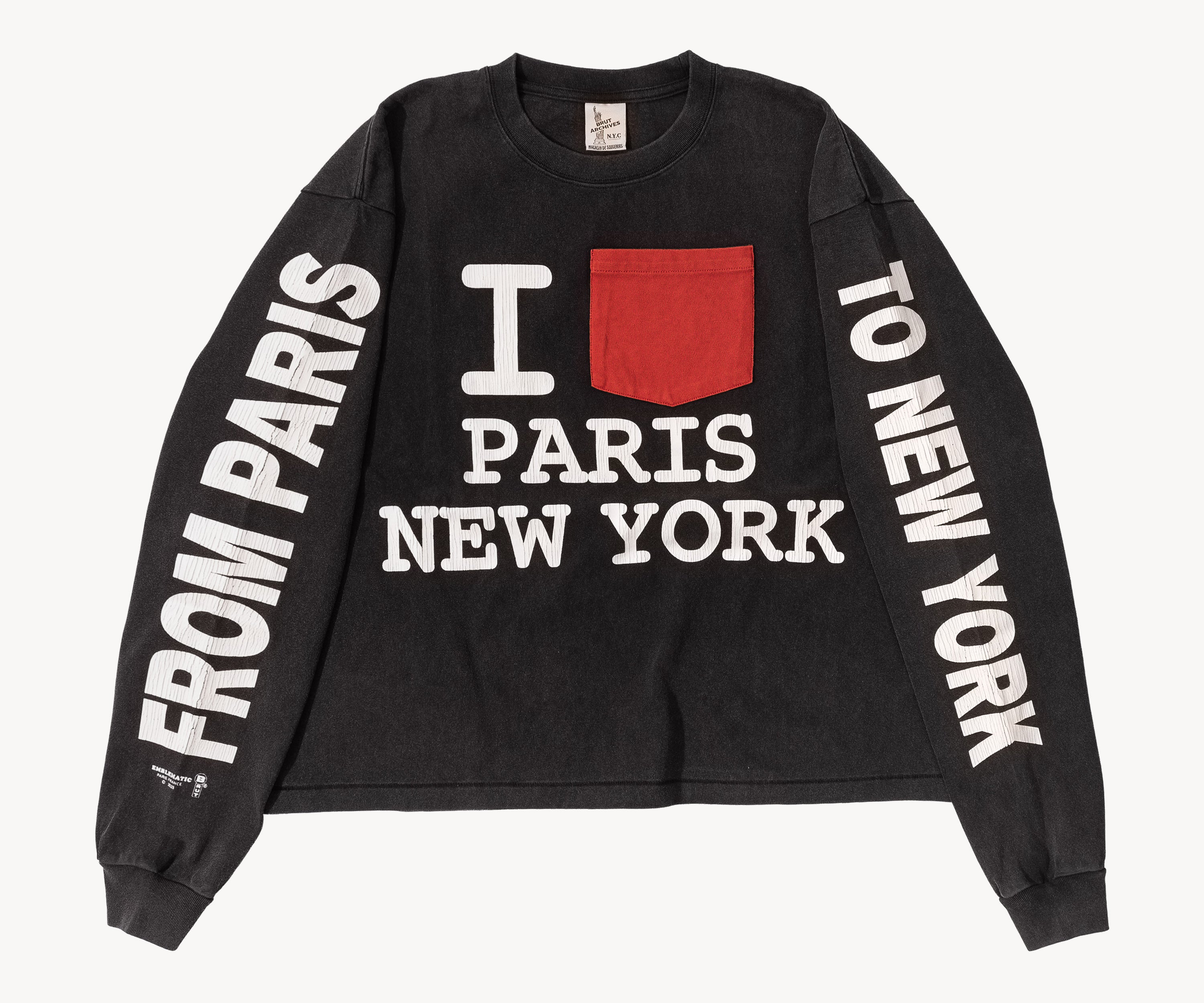Brut Archives I LOVE PARIS NYC graphics screen printed on front and sleeves.