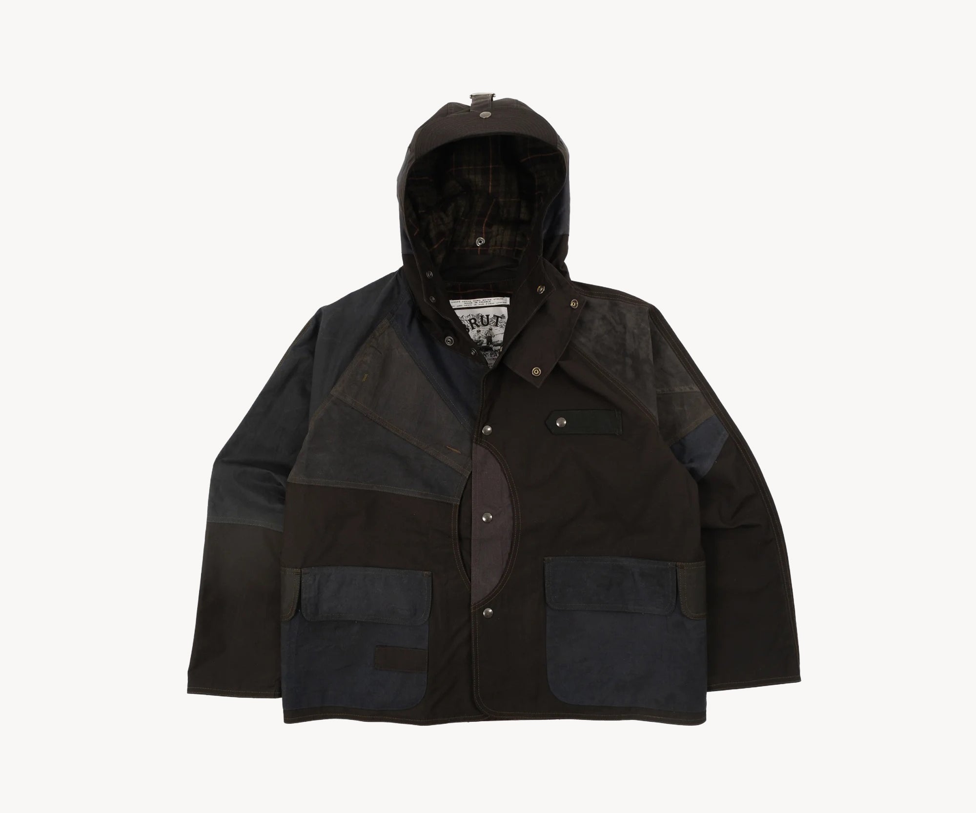The REWORK® BARBOUR FULL MOON is crafted from curated vintage Barbour and British Millerain dry waxed fabric in a patchwork style. Each jacket is one of a kind, made from vintage materials and quality hardware. To honor this legacy, all of our REWORK® BARBOUR FULL MOON jackets are cut and sewn with vintage equipment in our atelier in Paris.