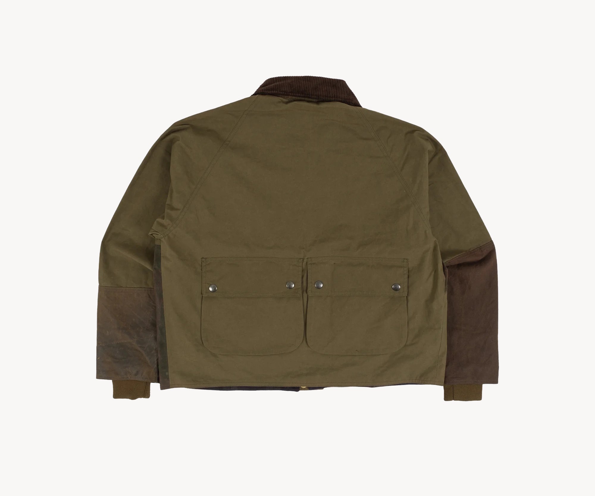 The REWORK® BARBOUR V4 is crafted from curated vintage Barbour and deadstock Barbour fabric in a patchwork style. Our exclusive design blends classic heritage with contemporary aesthetics. The fit is straight and cropped, perfectly complementing high-waisted and natural waist pants. Each patch on this jacket tells its own story, showcasing the character and history of the vintage Barbour pieces it's composed of.