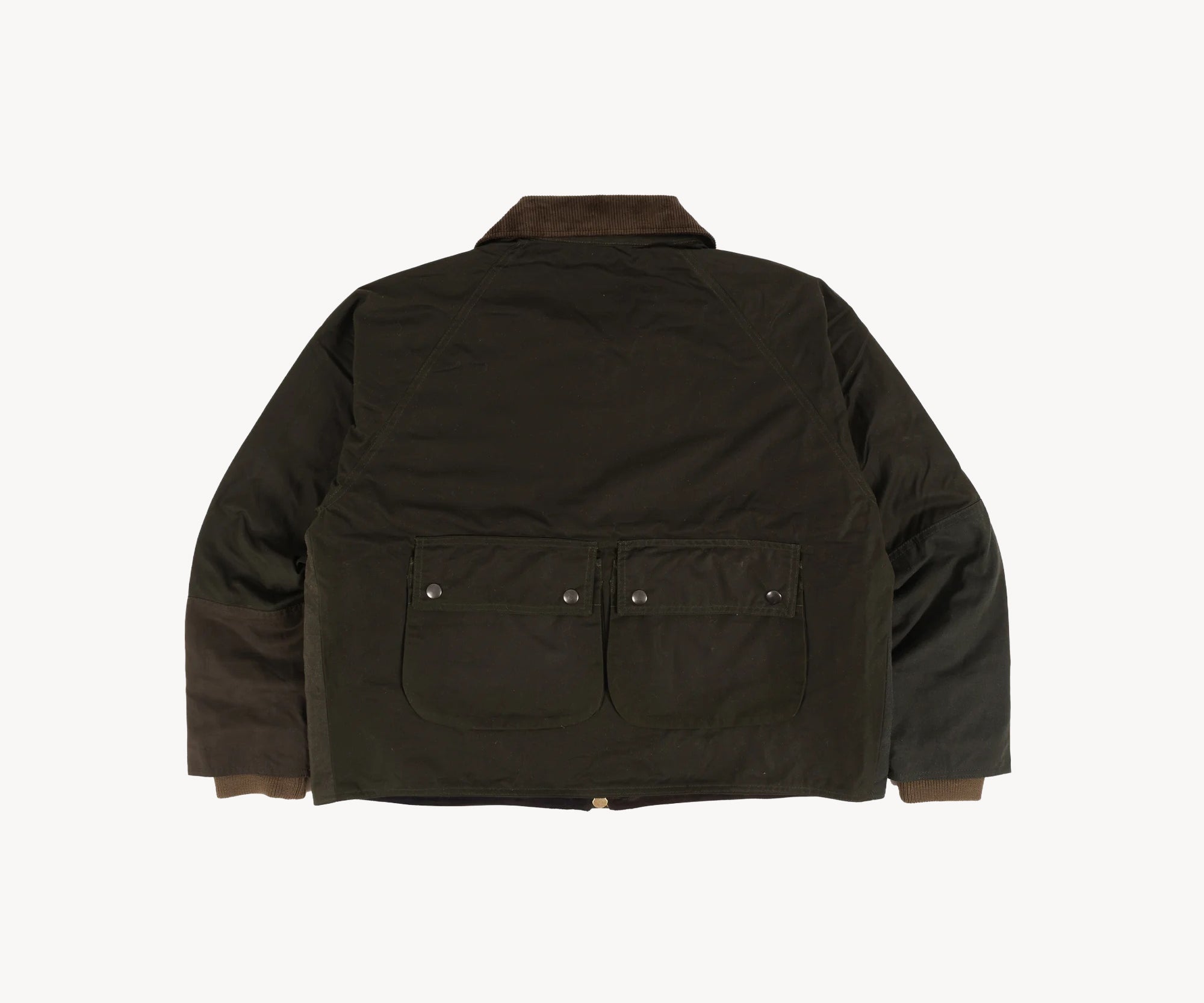 The REWORK® BARBOUR V4 is crafted from curated vintage Barbour and deadstock Barbour fabric in a patchwork style. Our exclusive design blends classic heritage with contemporary aesthetics. The fit is straight and cropped, perfectly complementing high-waisted and natural waist pants. Each patch on this jacket tells its own story, showcasing the character and history of the vintage Barbour pieces it's composed of.