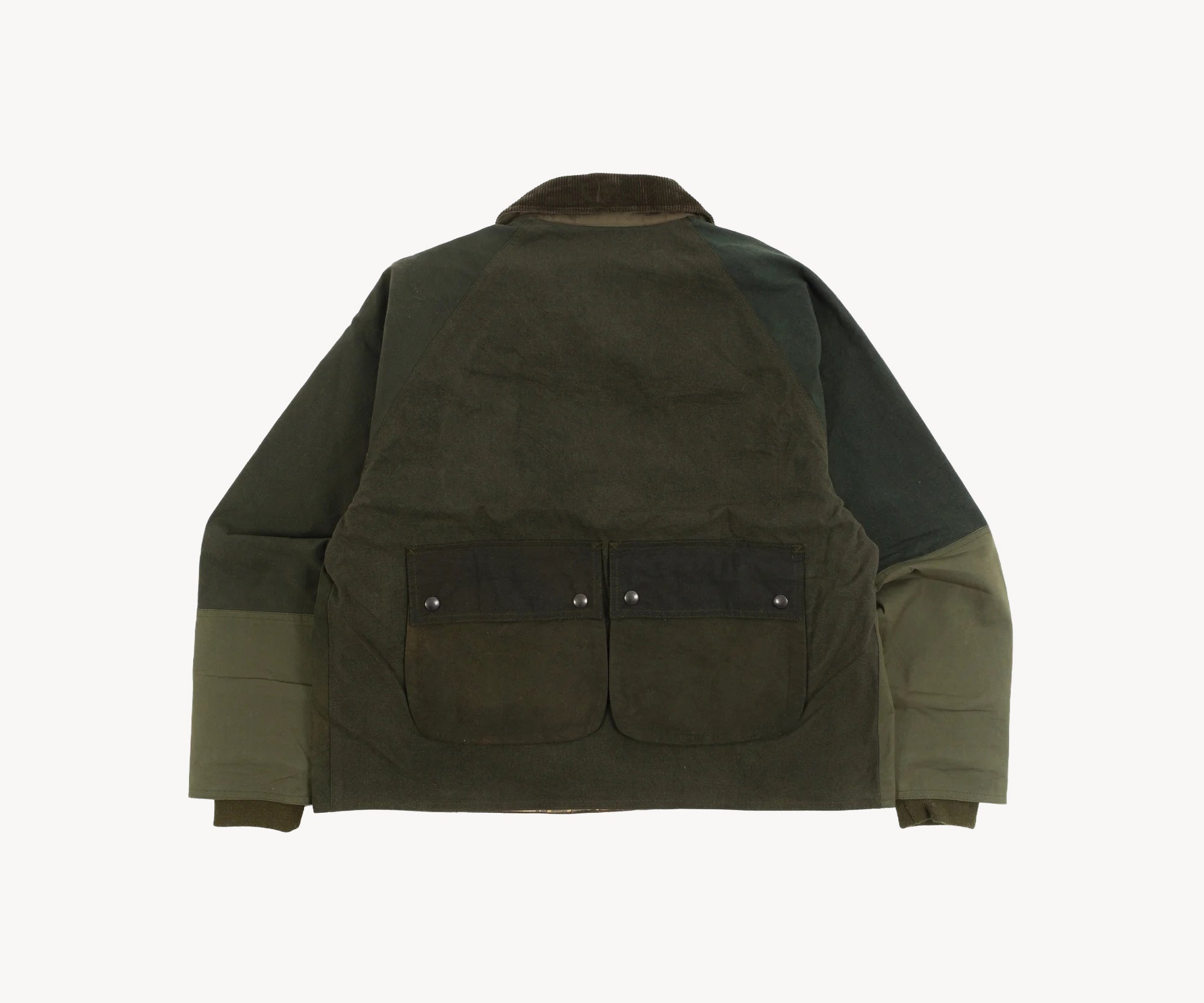 The REWORK® BARBOUR V5 is crafted from curated vintage Barbour and British Millerain dry waxed fabric in a patchwork style. Each jacket is one of a kind, made from vintage materials and quality hardware. To honor this legacy, all of our REWORK® BARBOUR V5 jackets are cut and sewn with vintage equipment in our atelier in Paris.