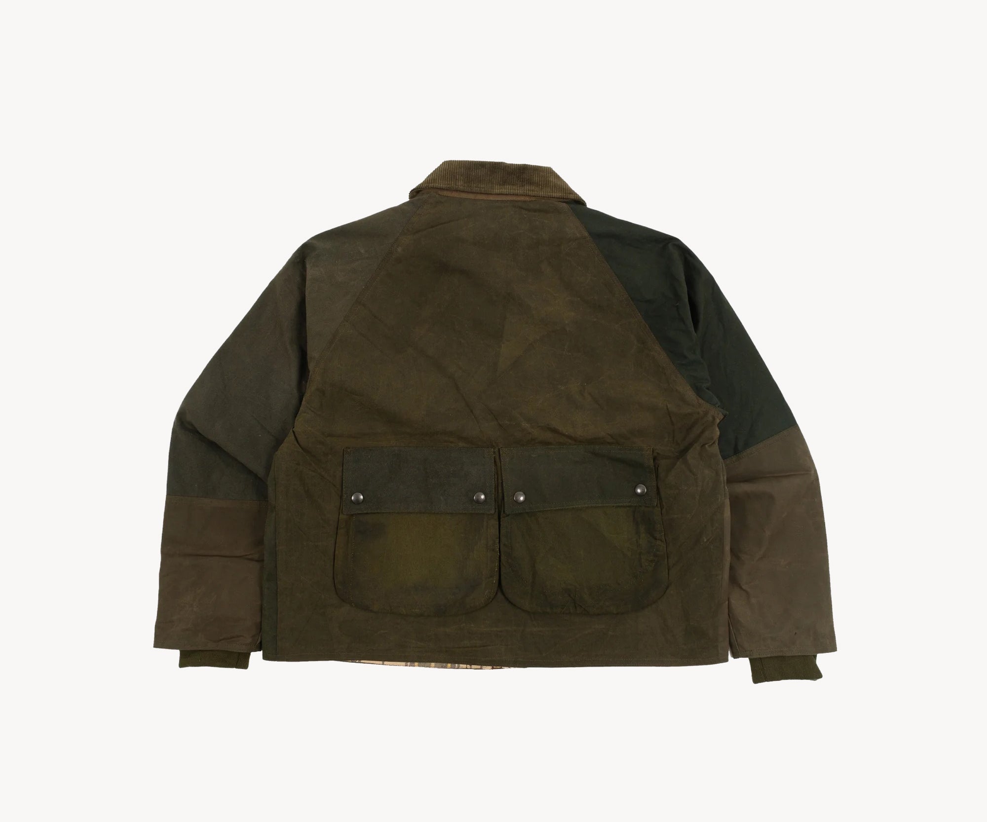The REWORK® BARBOUR V5 is crafted from curated vintage Barbour and British Millerain dry waxed fabric in a patchwork style. Each jacket is one of a kind, made from vintage materials and quality hardware. To honor this legacy, all of our REWORK® BARBOUR V5 jackets are cut and sewn with vintage equipment in our atelier in Paris.