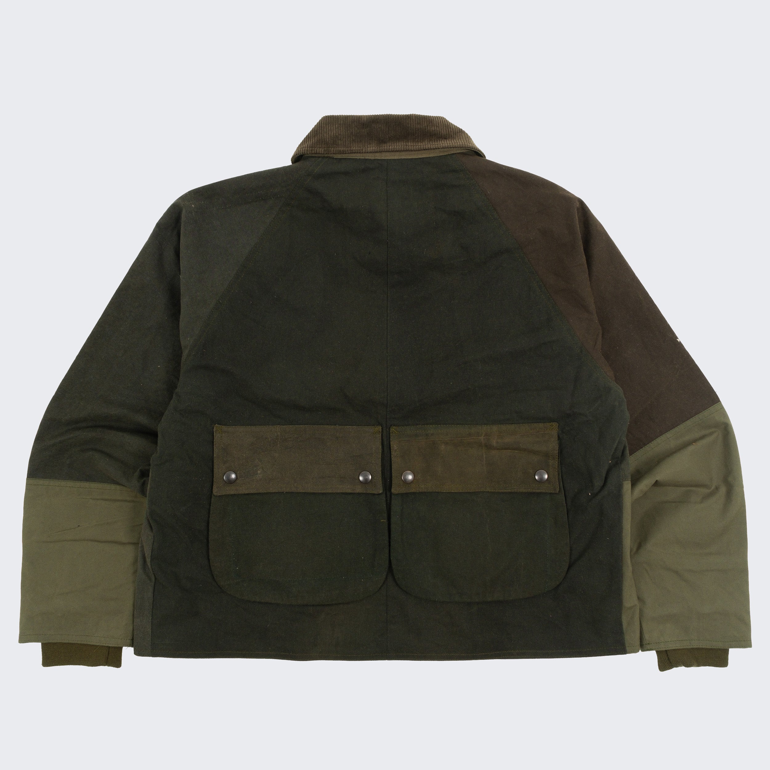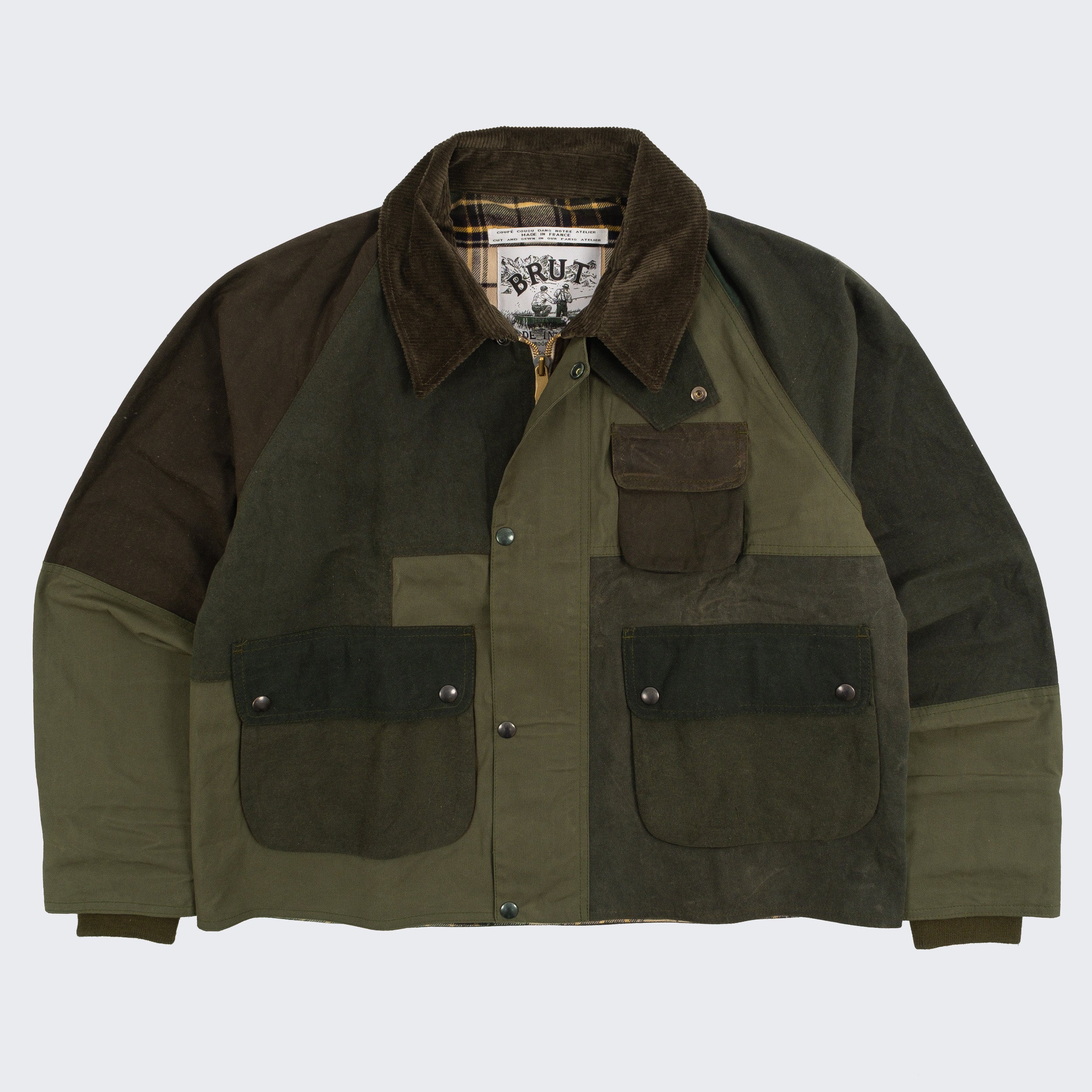 ID : The REWORK® BARBOUR V5 is crafted from curated vintage Barbour and British Millerain dry waxed fabric in a patchwork style. Each jacket is one of a kind, made from vintage materials and quality hardware. To honor this legacy, all of our REWORK® BARBOUR V5 jackets are cut and sewn with vintage equipment in our atelier in Paris.
