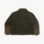 The REWORK® BARBOUR V5 is crafted from curated vintage Barbour and British Millerain dry waxed fabric in a patchwork style. Each jacket is one of a kind, made from vintage materials and quality hardware. To honor this legacy, all of our REWORK® BARBOUR V5 jackets are cut and sewn with vintage equipment in our atelier in Paris.