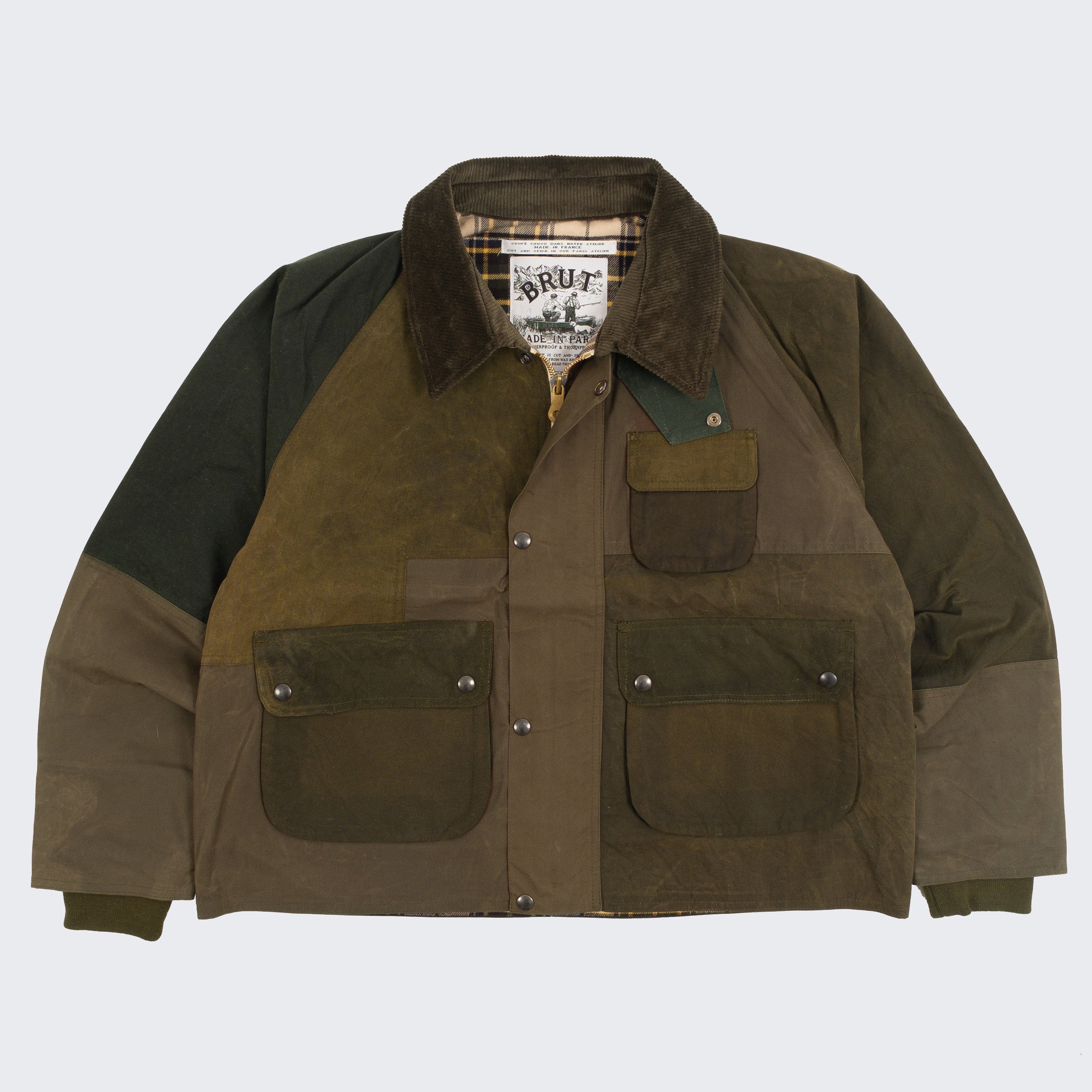 ID : The REWORK® BARBOUR V5 is crafted from curated vintage Barbour and British Millerain dry waxed fabric in a patchwork style. Each jacket is one of a kind, made from vintage materials and quality hardware. To honor this legacy, all of our REWORK® BARBOUR V5 jackets are cut and sewn with vintage equipment in our atelier in Paris.