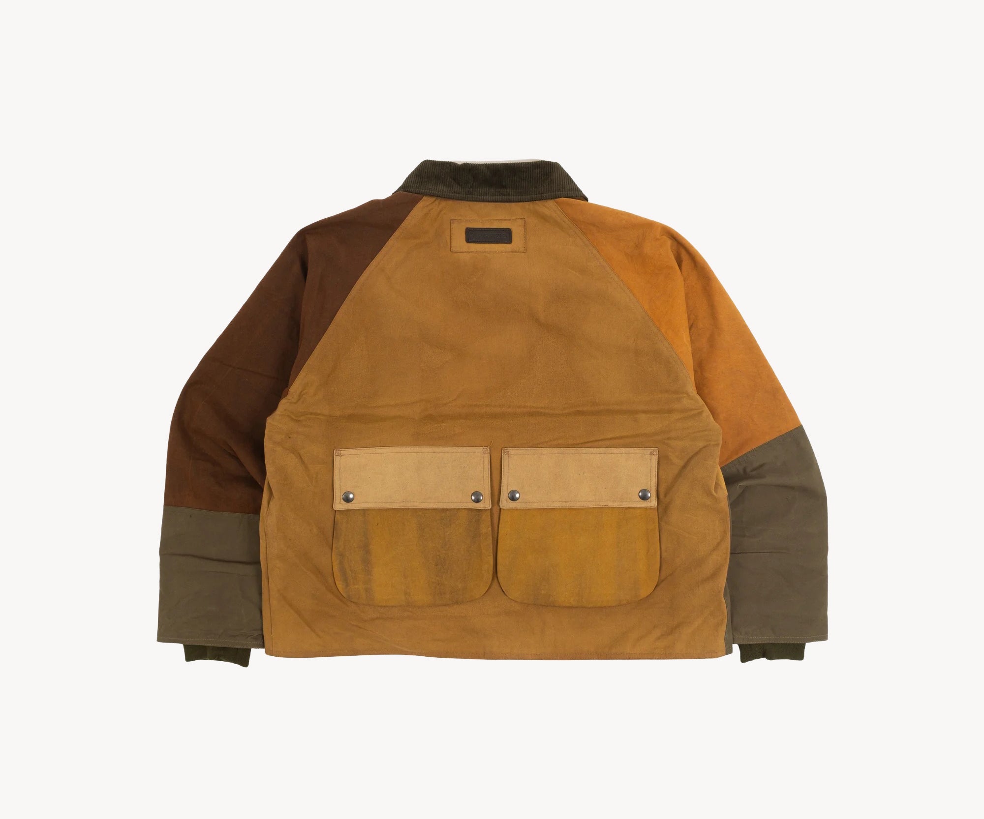 The REWORK® BARBOUR V5 is crafted from curated vintage Barbour and British Millerain dry waxed fabric in a patchwork style. Each jacket is one of a kind, made from vintage materials and quality hardware. To honor this legacy, all of our REWORK® BARBOUR V5 jackets are cut and sewn with vintage equipment in our atelier in Paris.