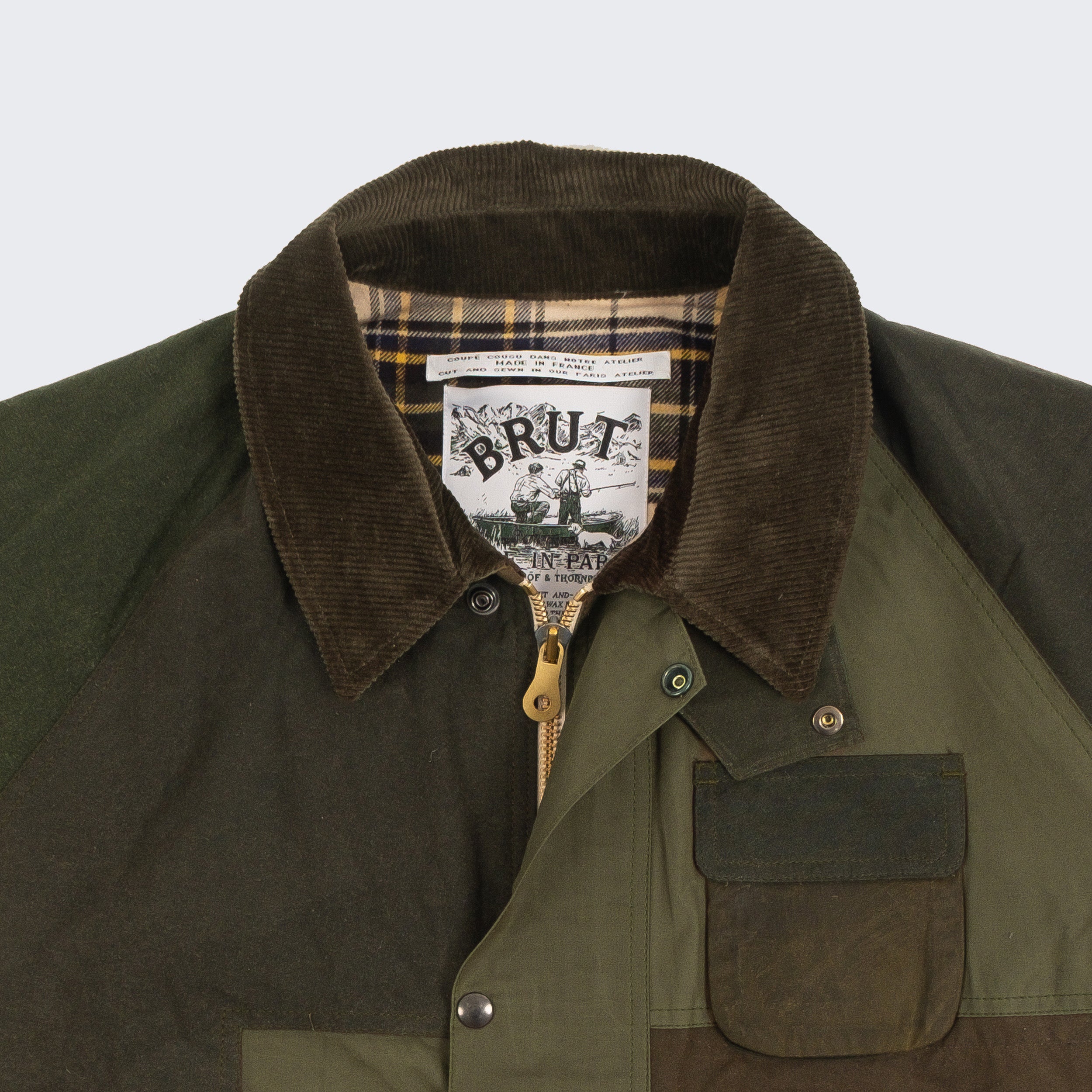 ID : The REWORK® BARBOUR V5 is crafted from curated vintage Barbour and British Millerain dry waxed fabric in a patchwork style. Each jacket is one of a kind, made from vintage materials and quality hardware. To honor this legacy, all of our REWORK® BARBOUR V5 jackets are cut and sewn with vintage equipment in our atelier in Paris.