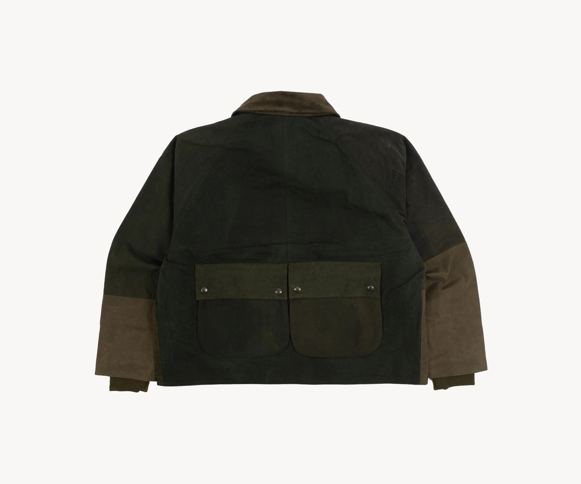 The REWORK® BARBOUR V5 is crafted from curated vintage Barbour and British Millerain dry waxed fabric in a patchwork style. Each jacket is one of a kind, made from vintage materials and quality hardware. To honor this legacy, all of our REWORK® BARBOUR V5 jackets are cut and sewn with vintage equipment in our atelier in Paris.