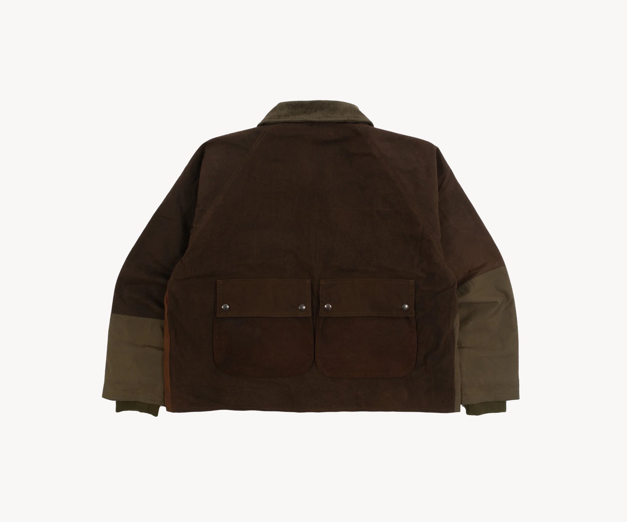 The REWORK® BARBOUR V5 is crafted from curated vintage Barbour and British Millerain dry waxed fabric in a patchwork style. Each jacket is one of a kind, made from vintage materials and quality hardware. To honor this legacy, all of our REWORK® BARBOUR V5 jackets are cut and sewn with vintage equipment in our atelier in Paris.