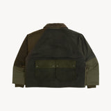 The REWORK® BARBOUR V5 is crafted from curated vintage Barbour and British Millerain dry waxed fabric in a patchwork style. Each jacket is one of a kind, made from vintage materials and quality hardware. To honor this legacy, all of our REWORK® BARBOUR V5 jackets are cut and sewn with vintage equipment in our atelier in Paris.