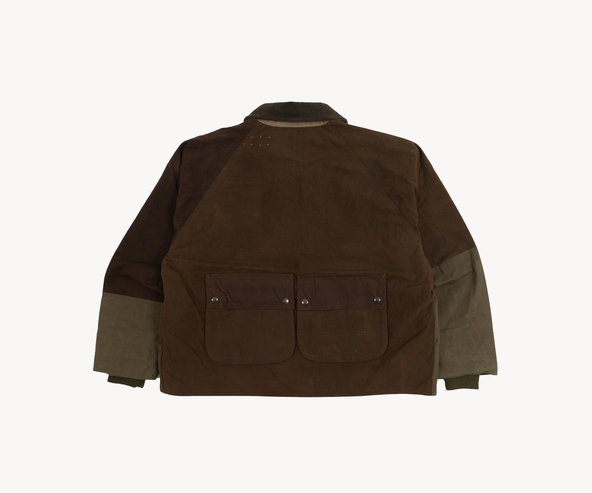 The REWORK® BARBOUR V5 is crafted from curated vintage Barbour and British Millerain dry waxed fabric in a patchwork style. Each jacket is one of a kind, made from vintage materials and quality hardware. To honor this legacy, all of our REWORK® BARBOUR V5 jackets are cut and sewn with vintage equipment in our atelier in Paris.