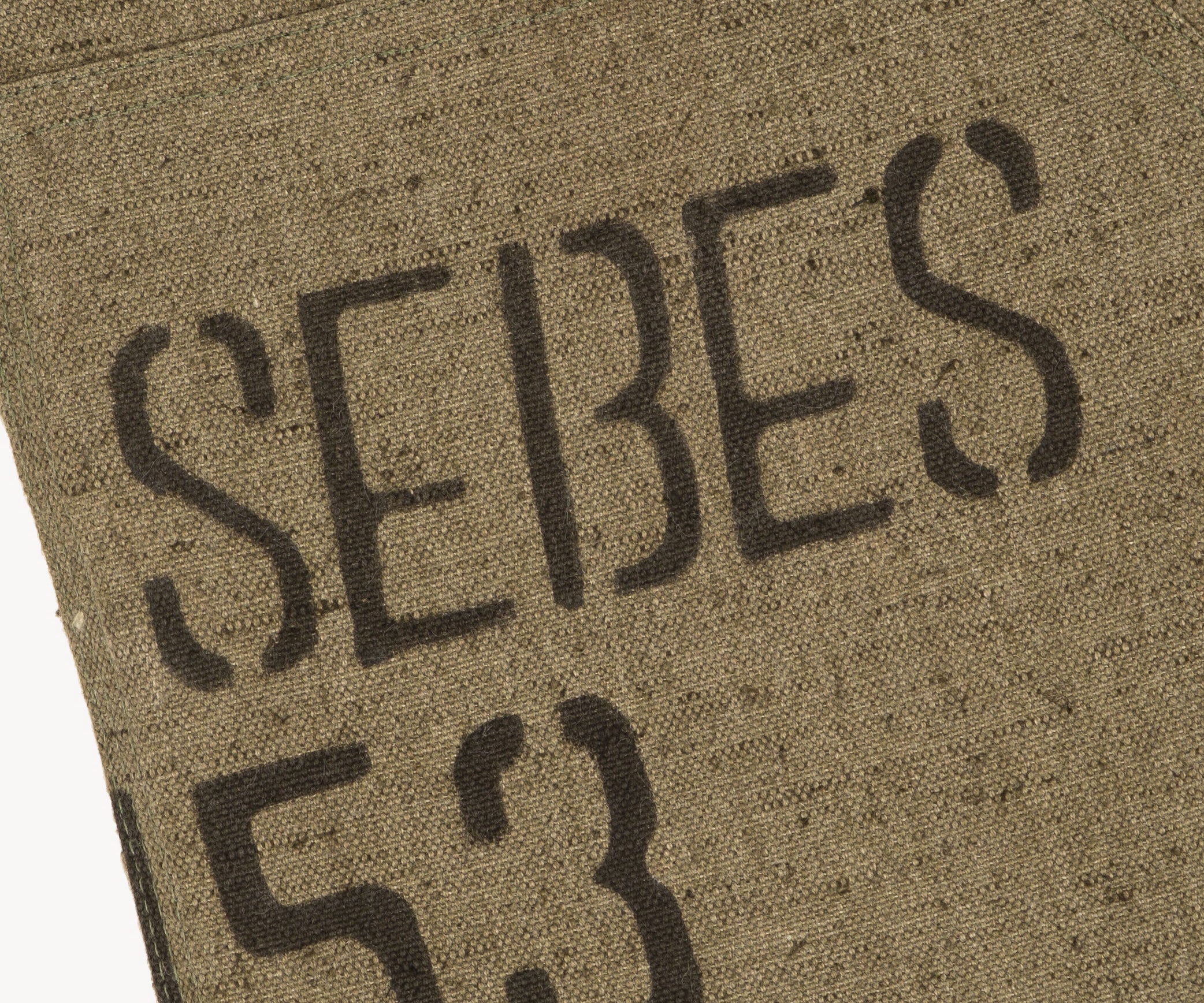 100% cotton from vintage transport bag from Eastern Europe. This piece is carefully handmade on vintage equipment in our Parisian atelier. Made in France.