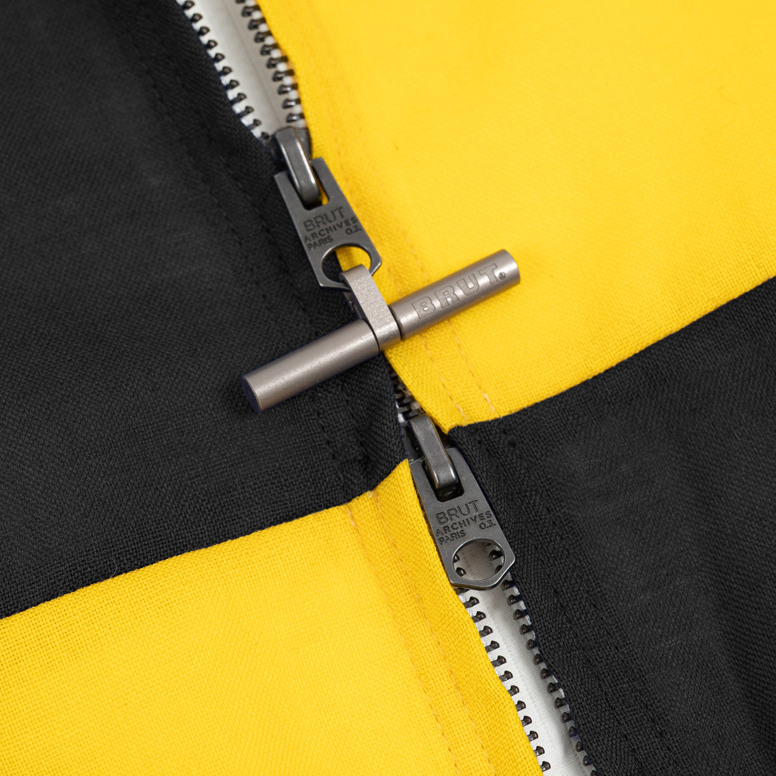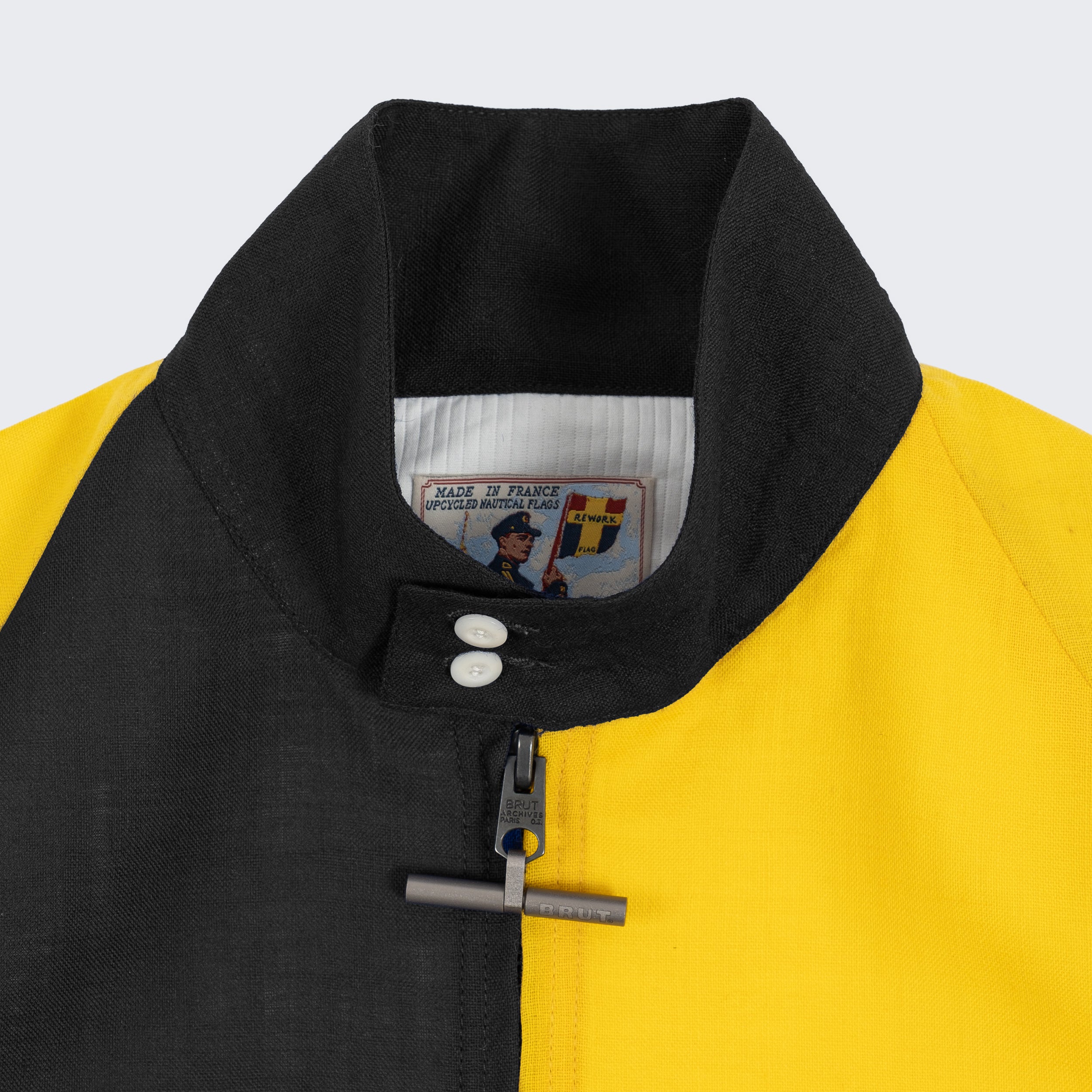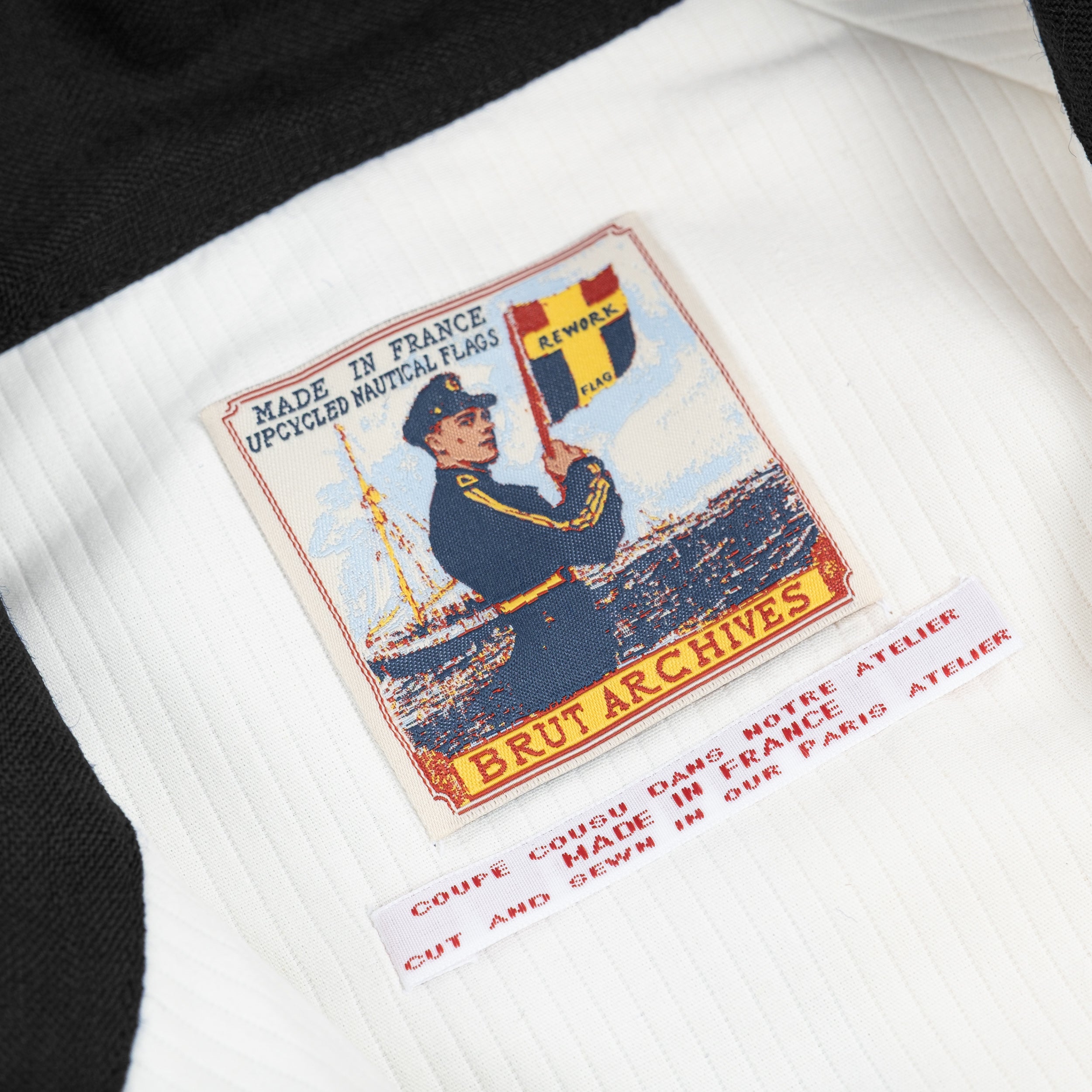 Crafted in our Parisian atelier from authentic vintage nautical flags, carefully reassembled into a bold patchwork design. Each panel carries its own story, showcasing the marks, colors, and textures of its past life at sea. One-of-a-kind.
