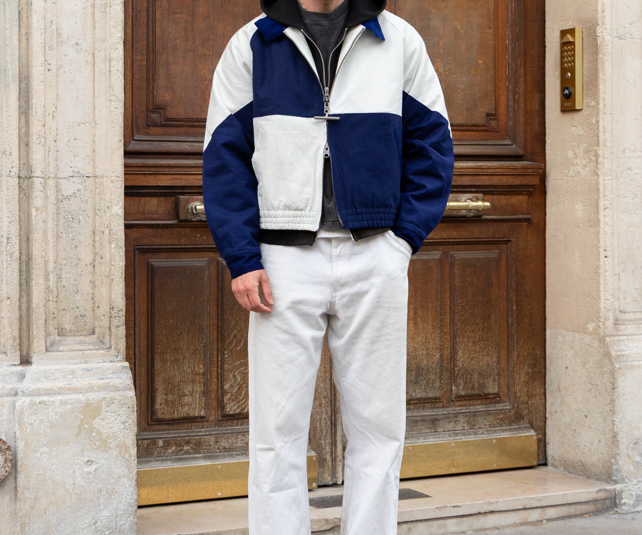 Crafted in our Parisian atelier from authentic vintage nautical flags, carefully reassembled into a bold patchwork design. Each panel carries its own story, showcasing the marks, colors, and textures of its past life at sea. One-of-a-kind.