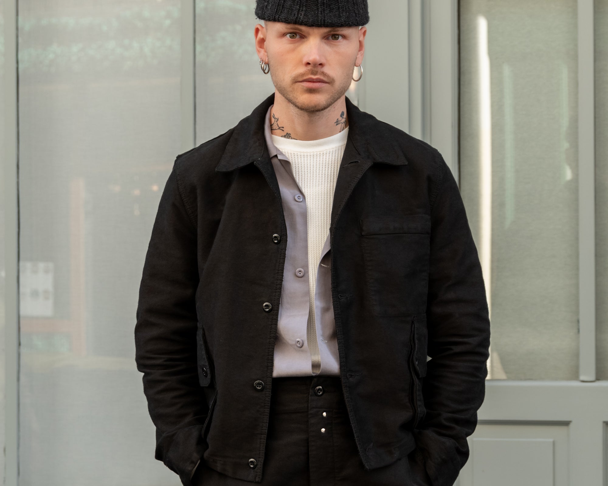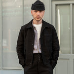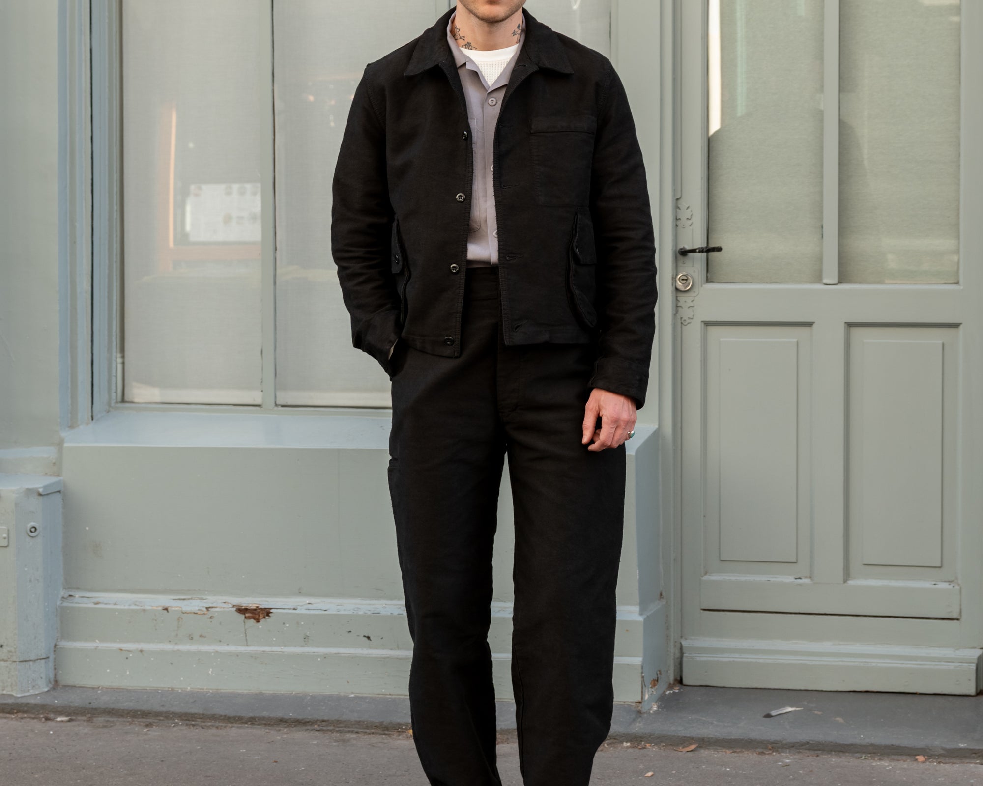 100% cotton black moleskin. This piece is carefully handmade on vintage equipment in our Parisian atelier. Made in France.