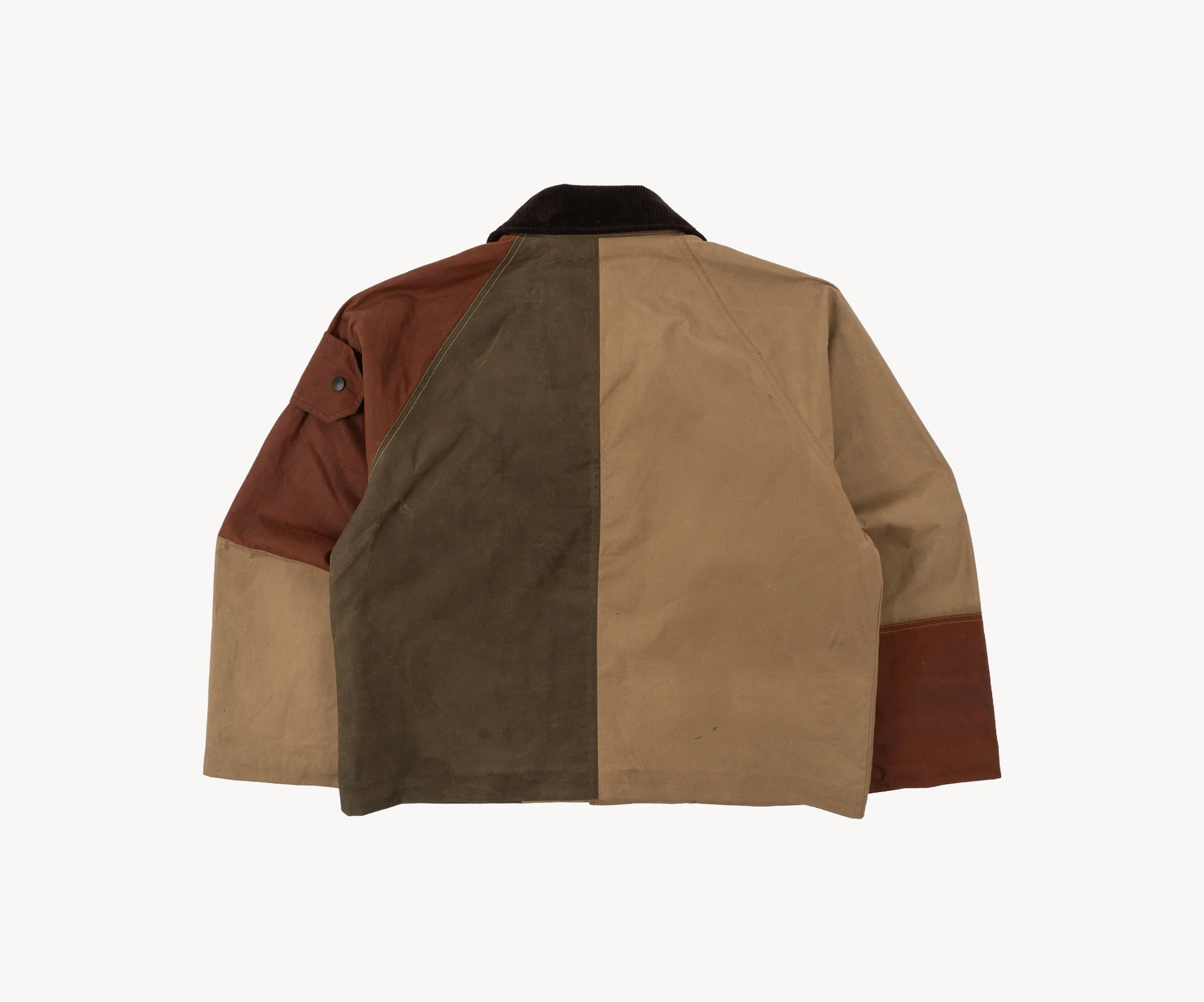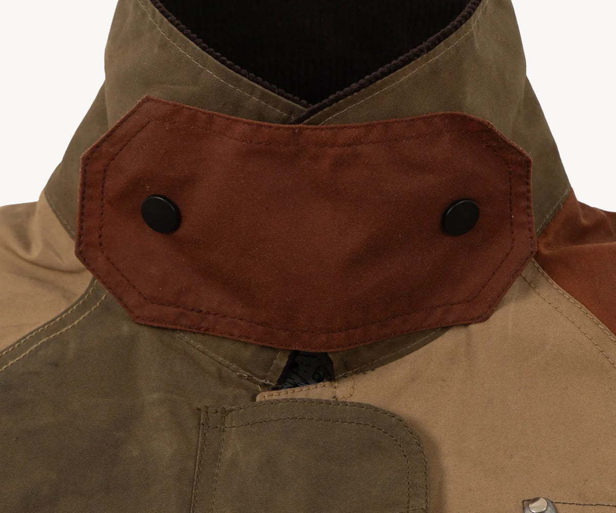The REWORK® WAX HOOK JACKET is crafted from old stock British Millerain dry waxed fabric in a patchwork style. Each jacket is one of a kind, made from vintage materials and quality hardware. To honor this legacy, all of our REWORK® WAX HOOK JACKETS are cut and sewn with vintage equipment in our atelier in Paris.