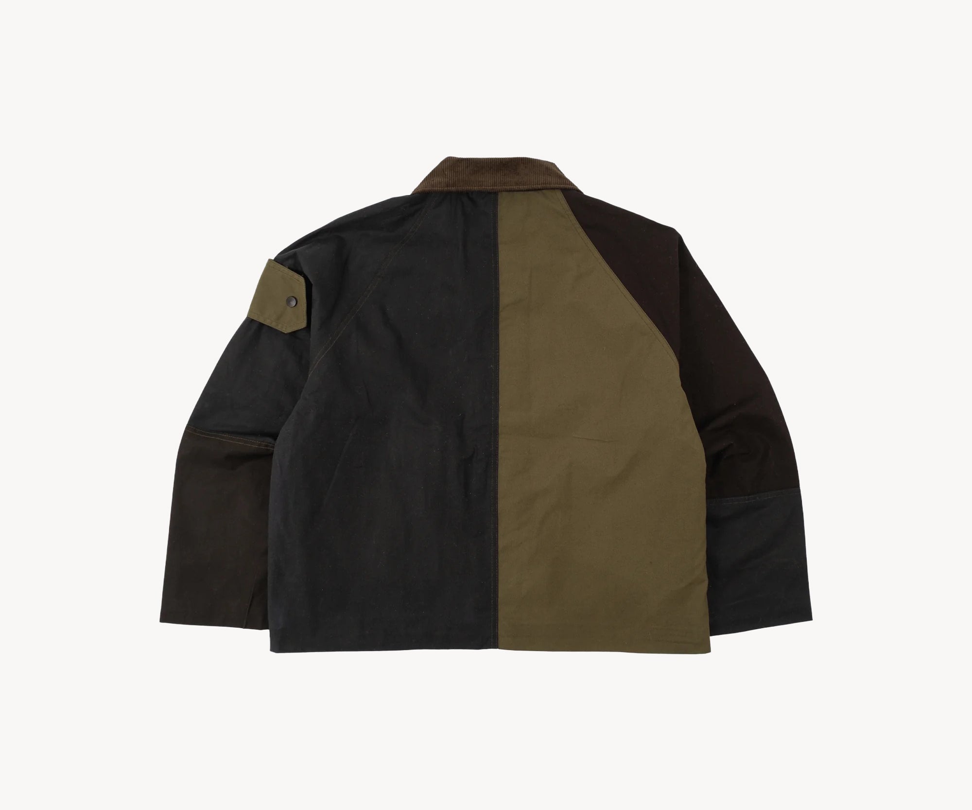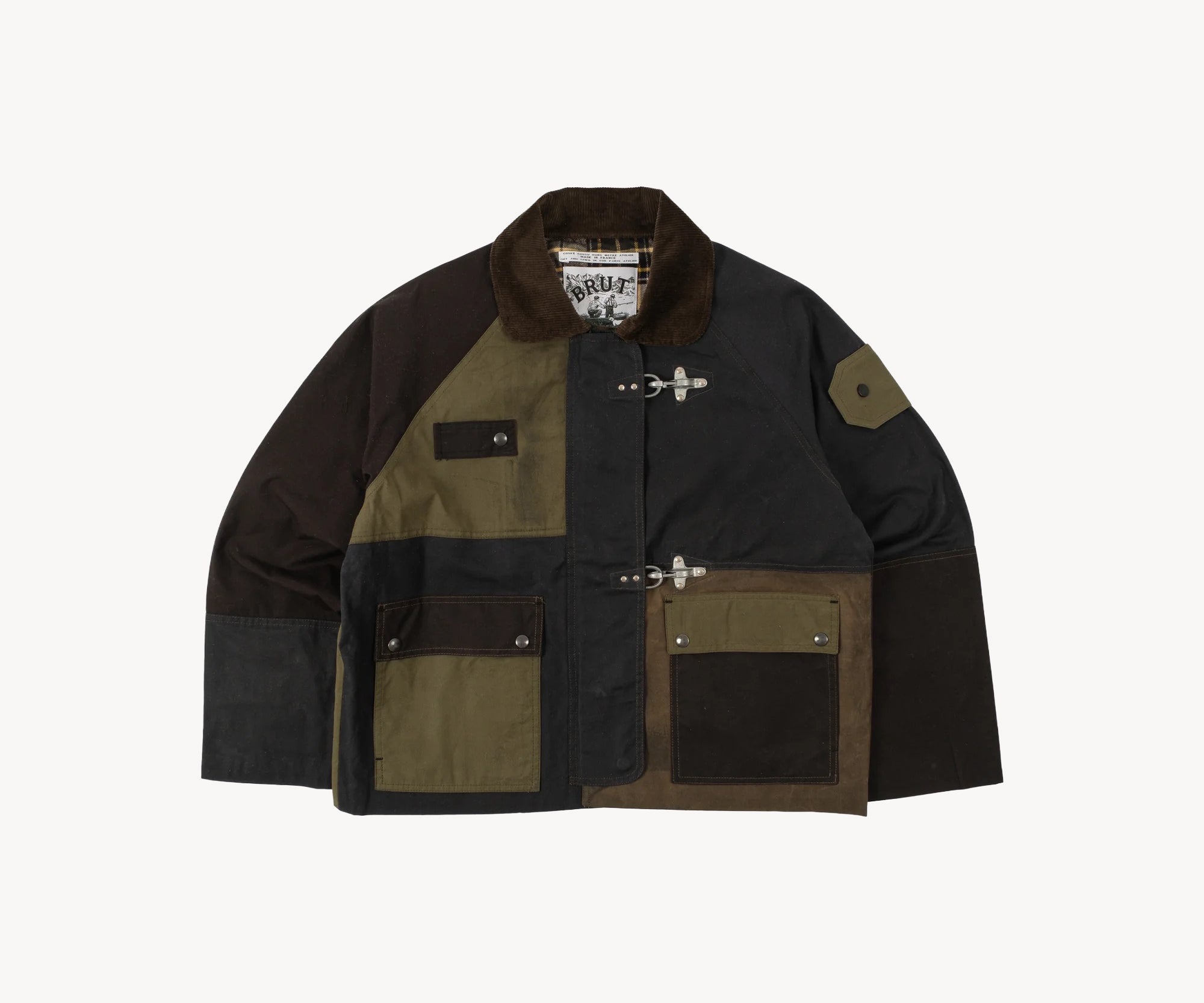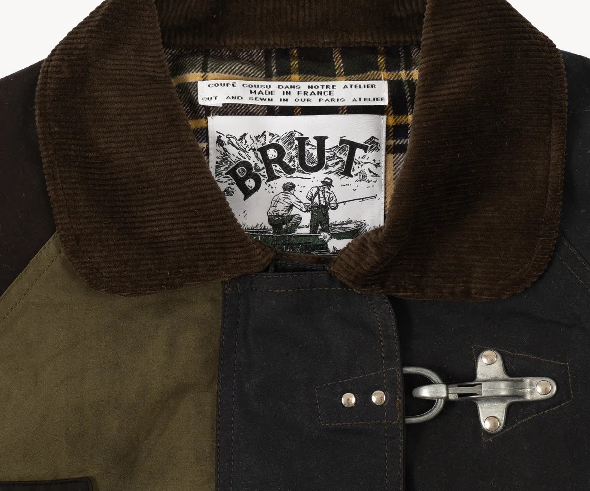 The REWORK® WAX HOOK JACKET is crafted from old stock British Millerain dry waxed fabric in a patchwork style. Each jacket is one of a kind, made from vintage materials and quality hardware. To honor this legacy, all of our REWORK® WAX HOOK JACKETS are cut and sewn with vintage equipment in our atelier in Paris.