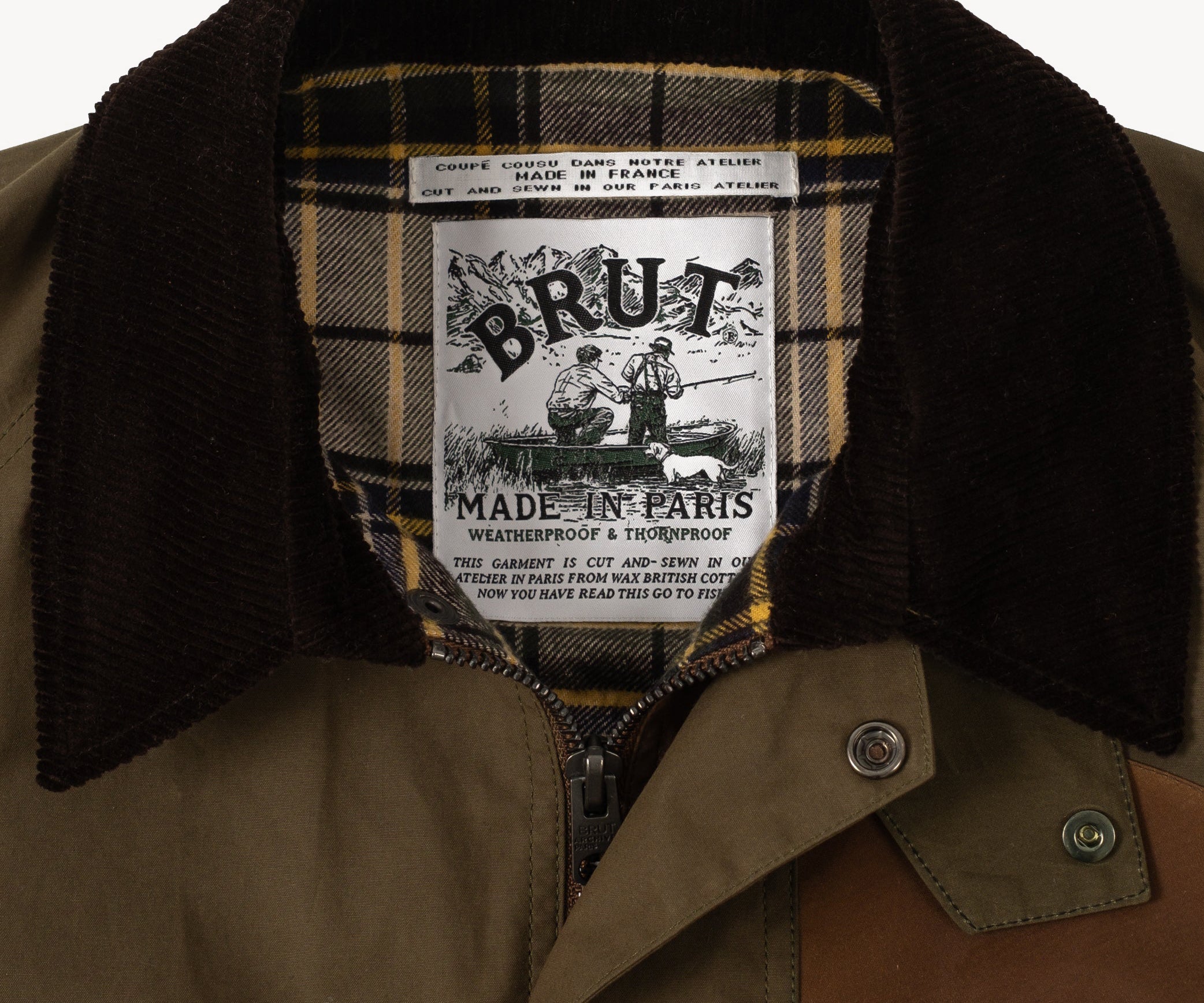 100% dry waxed cotton from British Millerain. This piece is carefully handmade on vintage equipment in our Parisian atelier. Made in France.