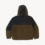 Elastic waist and hood adjusters.