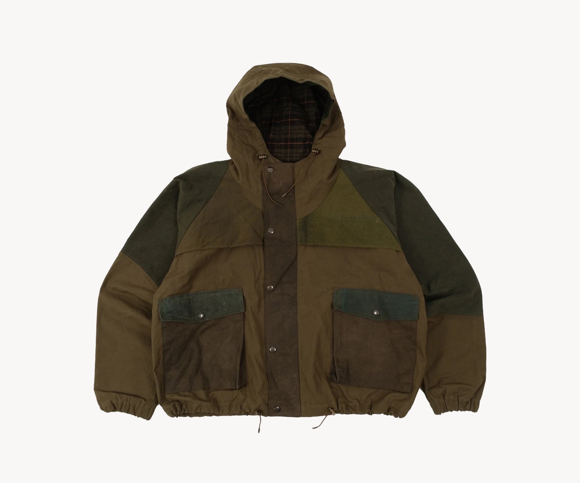 The REWORK® WAX RAIN CROPPED JACKET is crafted from old stock British Millerain dry waxed fabric and curated vintage Barbour in a patchwork style. Each jacket is one of a kind, made from vintage materials and quality hardware. To honor this legacy, all of our REWORK® WAX RAIN CROPPED JACKET are cut and sewn with vintage equipment in our atelier in Paris.