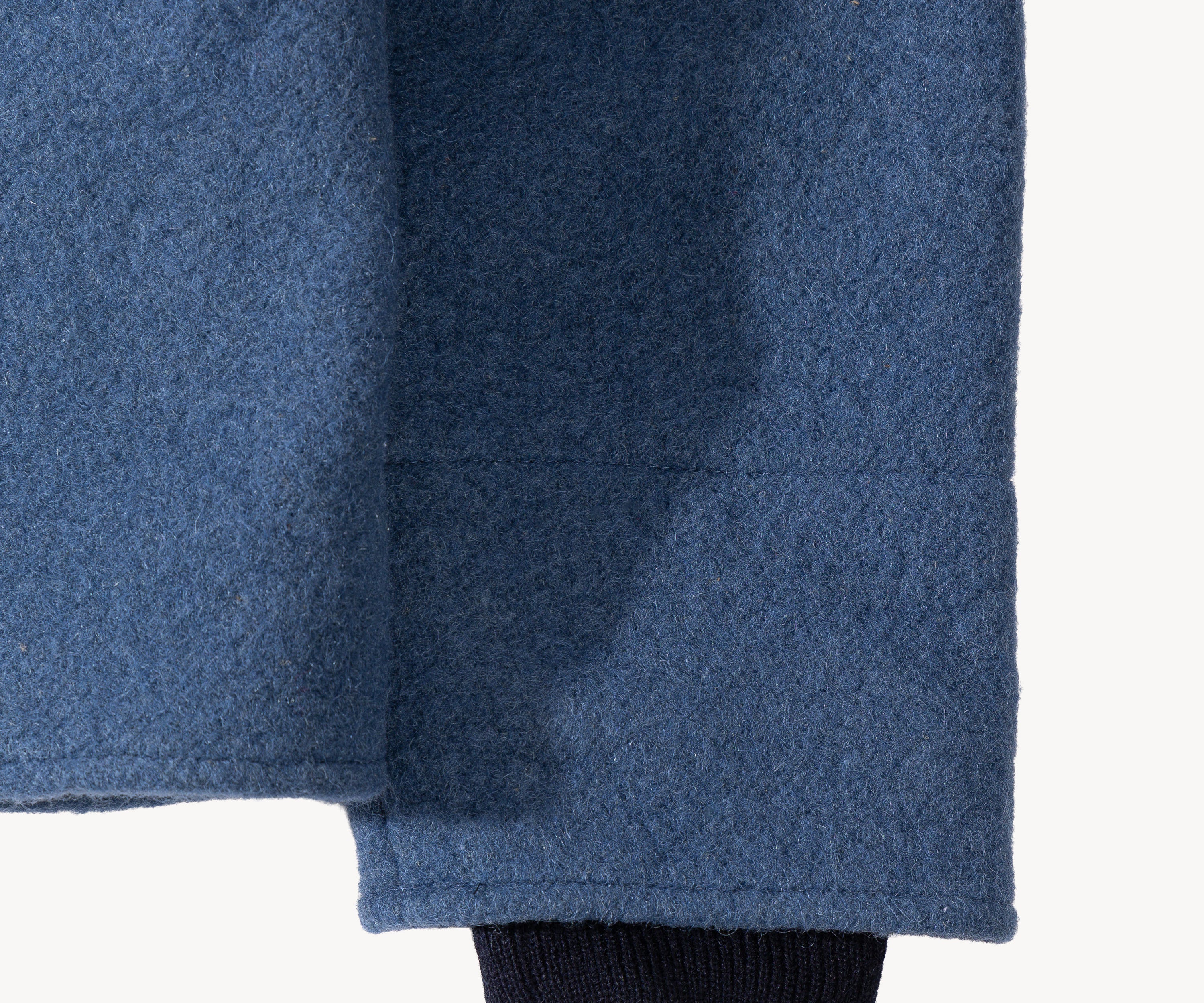 Crafted in our Parisian atelier from authentic vintage wool french navy blanket, carefully reassembled into a bold design. One-of-a-kind.