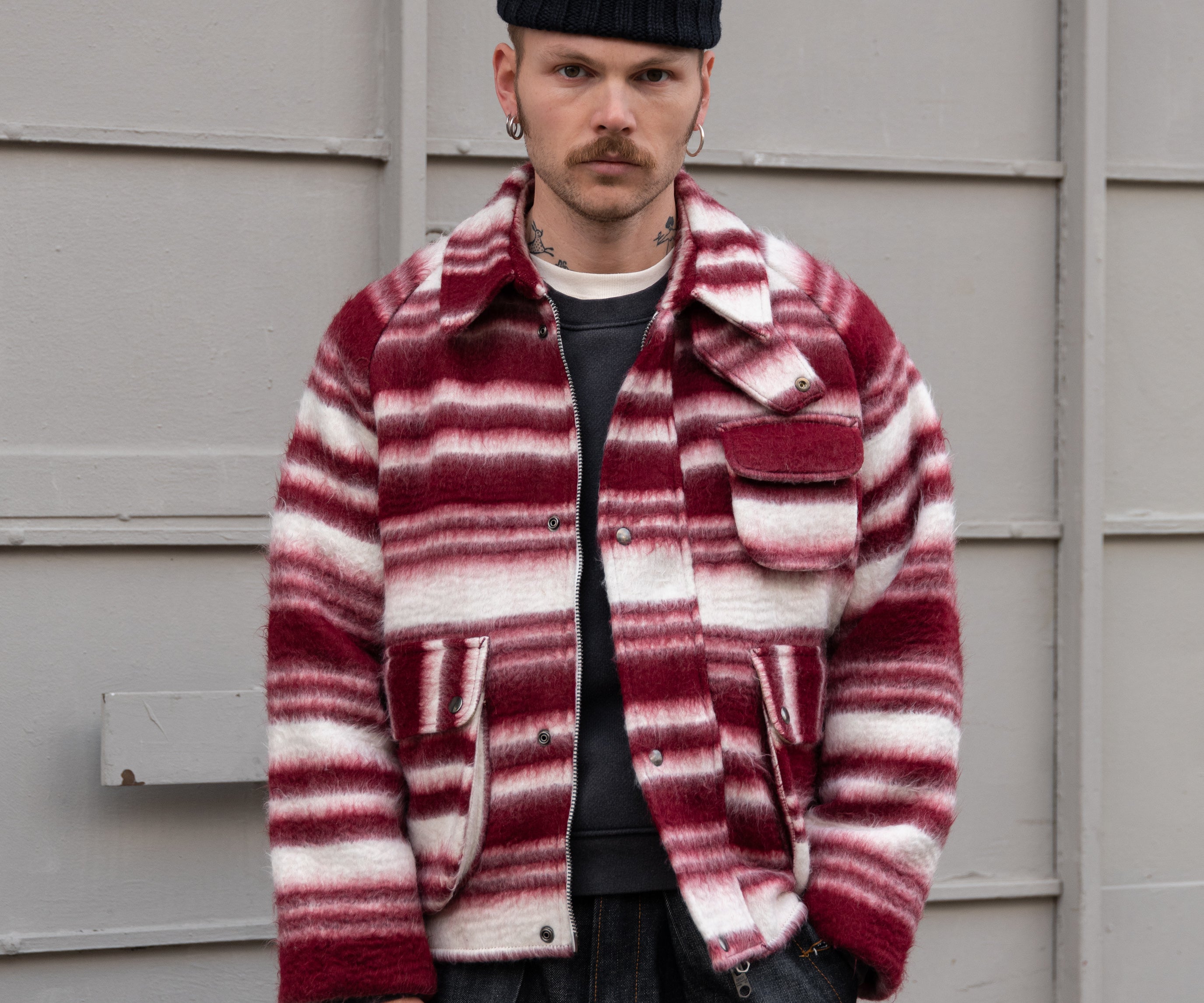 Crafted in our Parisian atelier from authentic vintage wool blanket, carefully reassembled into a bold design. One-of-a-kind.