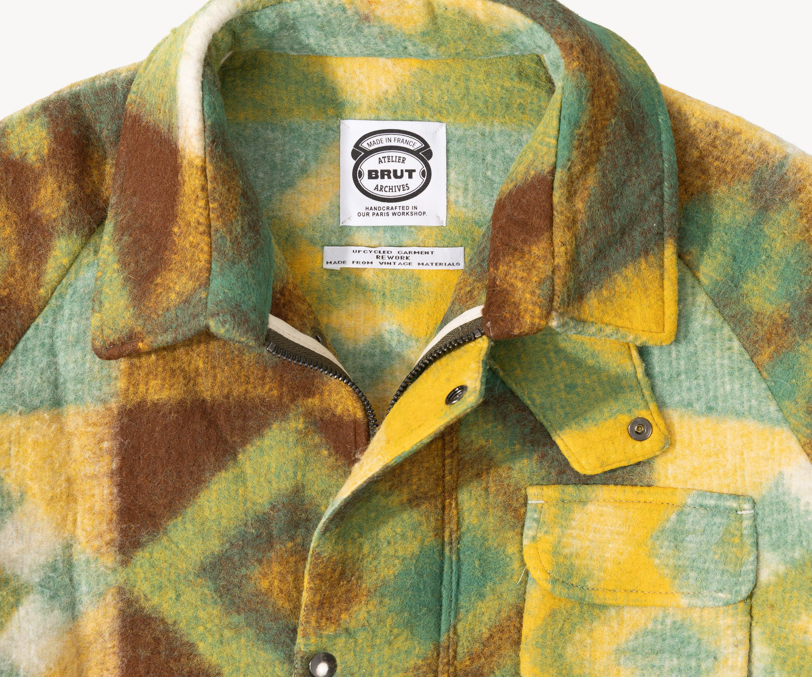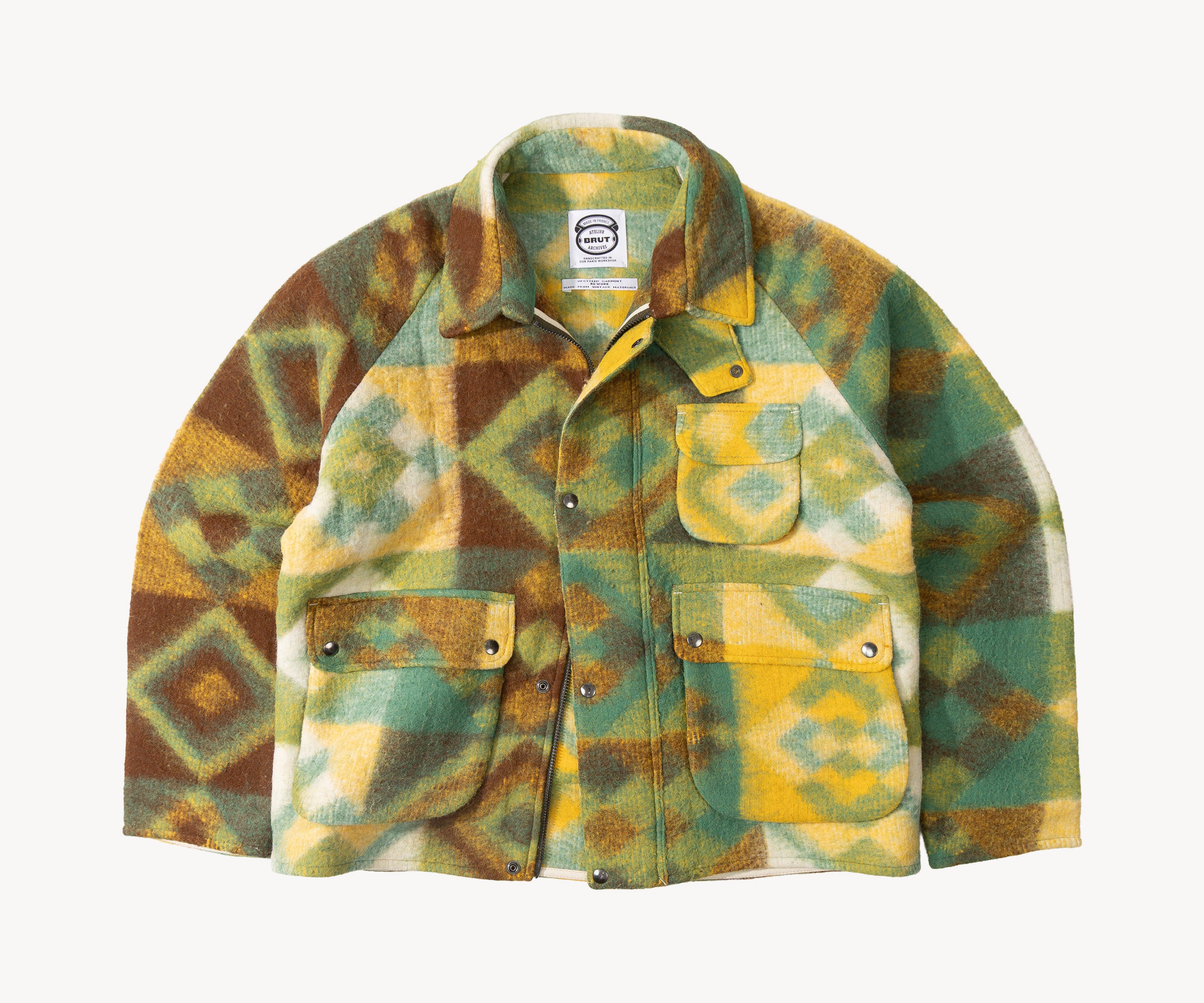 Crafted in our Parisian atelier from authentic vintage wool blanket, carefully reassembled into a bold design. One-of-a-kind.