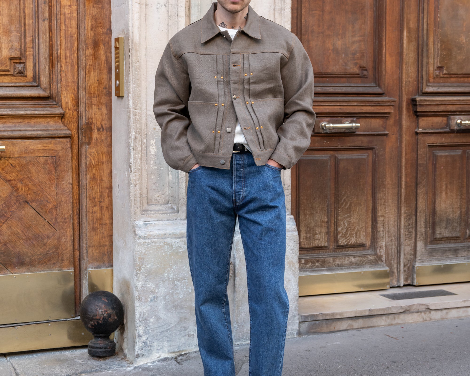 The PLEATED LINEN JACKET is a nod to American workwear design from our archives. Crafted from high-quality denim fabric, it is designed for all-day comfort. BRUT's commitment to quality ensures that this jacket will stand the test of time. Proudly made in PARIS in our atelier sew on vintage equipment.