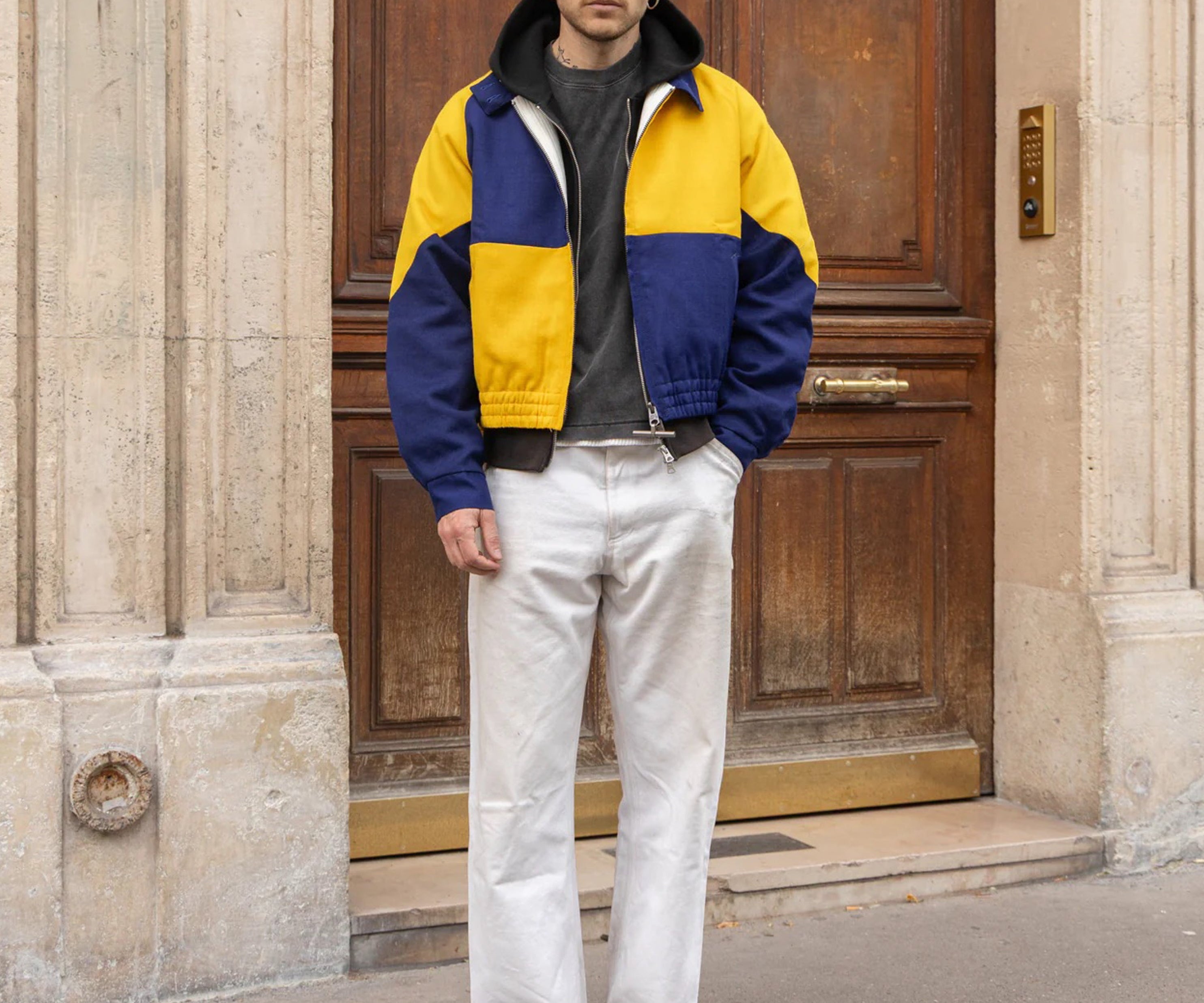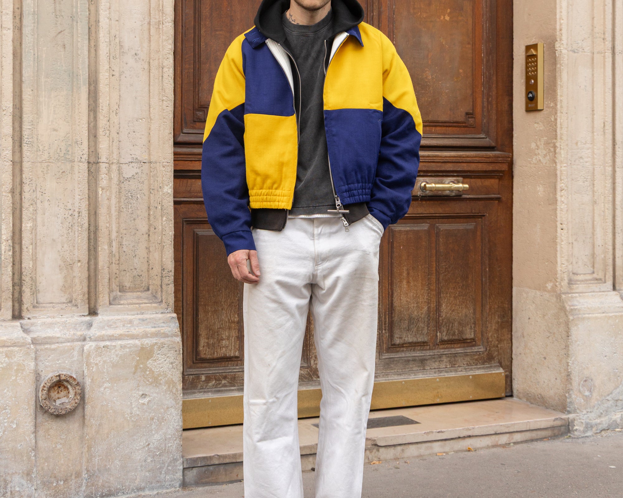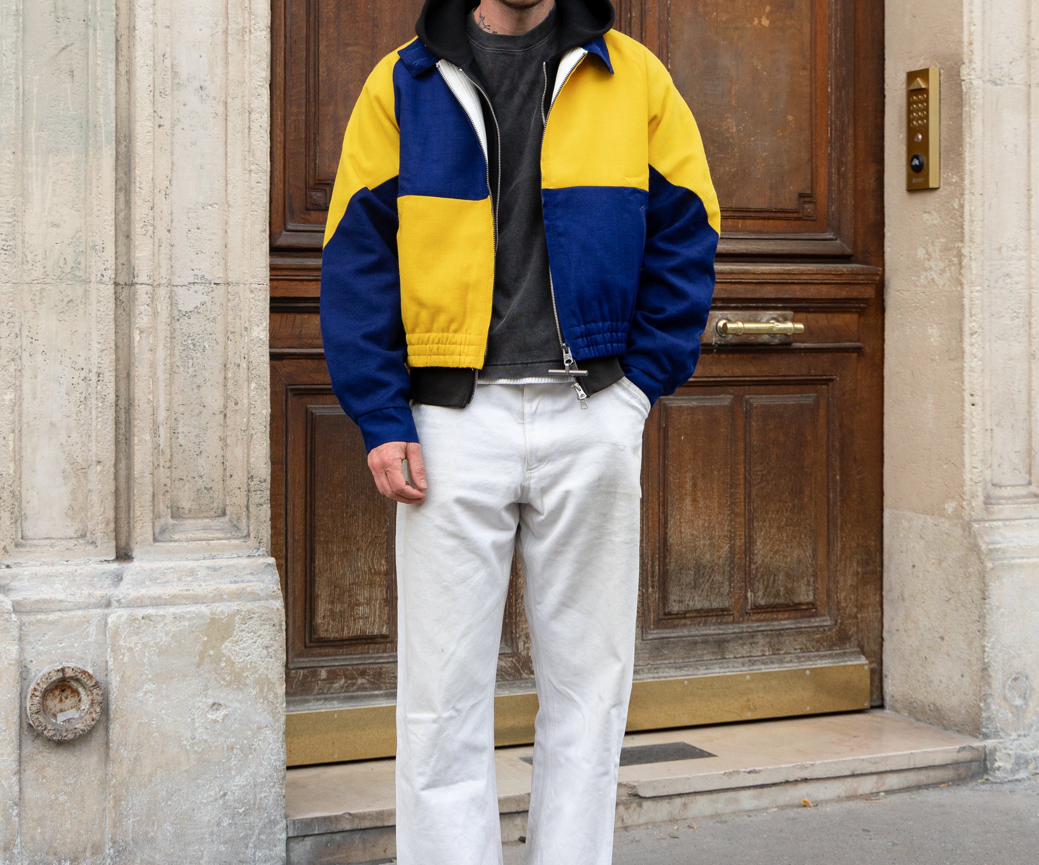 Crafted in our Parisian atelier from authentic vintage nautical flags, carefully reassembled into a bold patchwork design. Each panel carries its own story, showcasing the marks, colors, and textures of its past life at sea. One-of-a-kind.