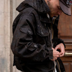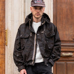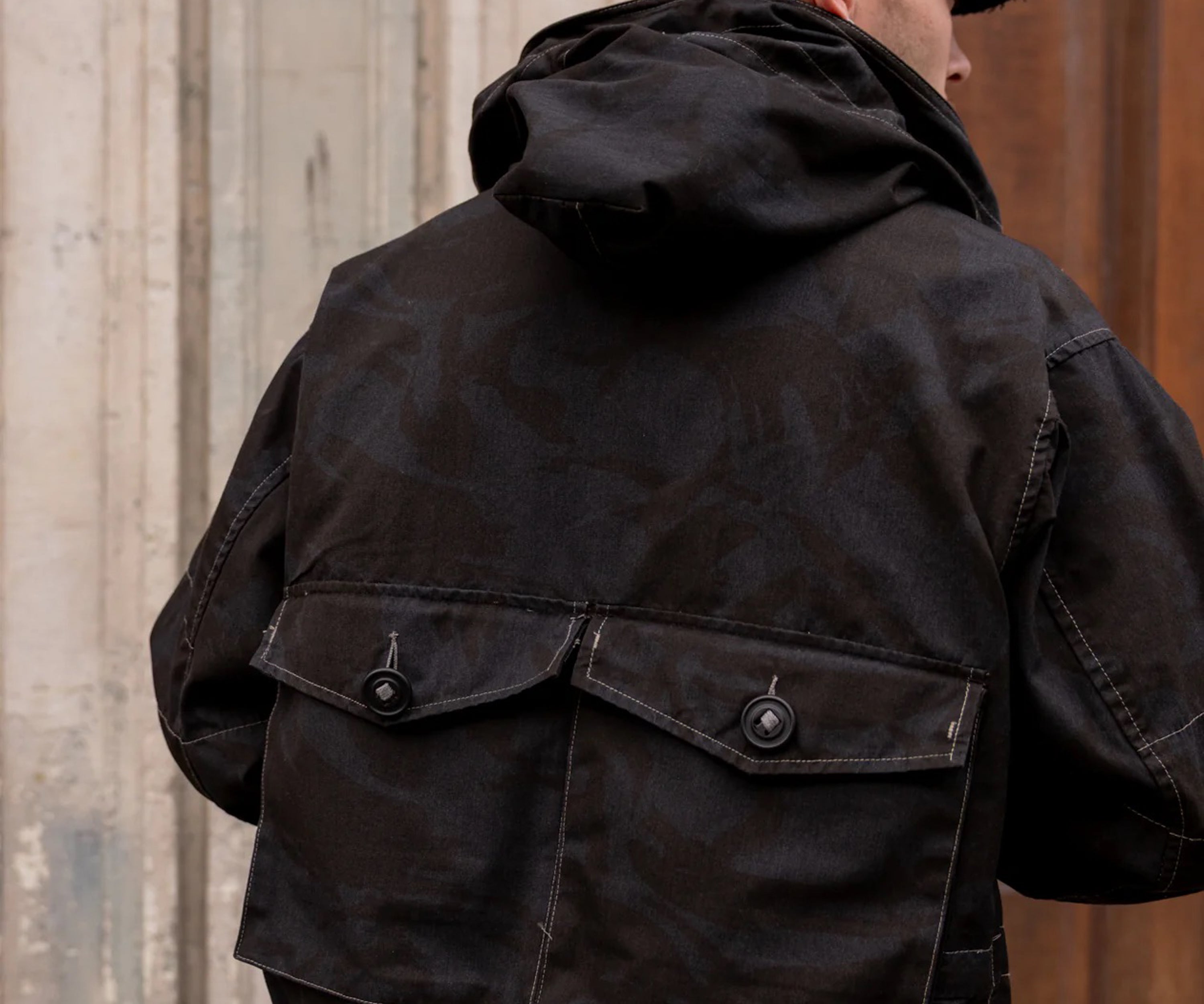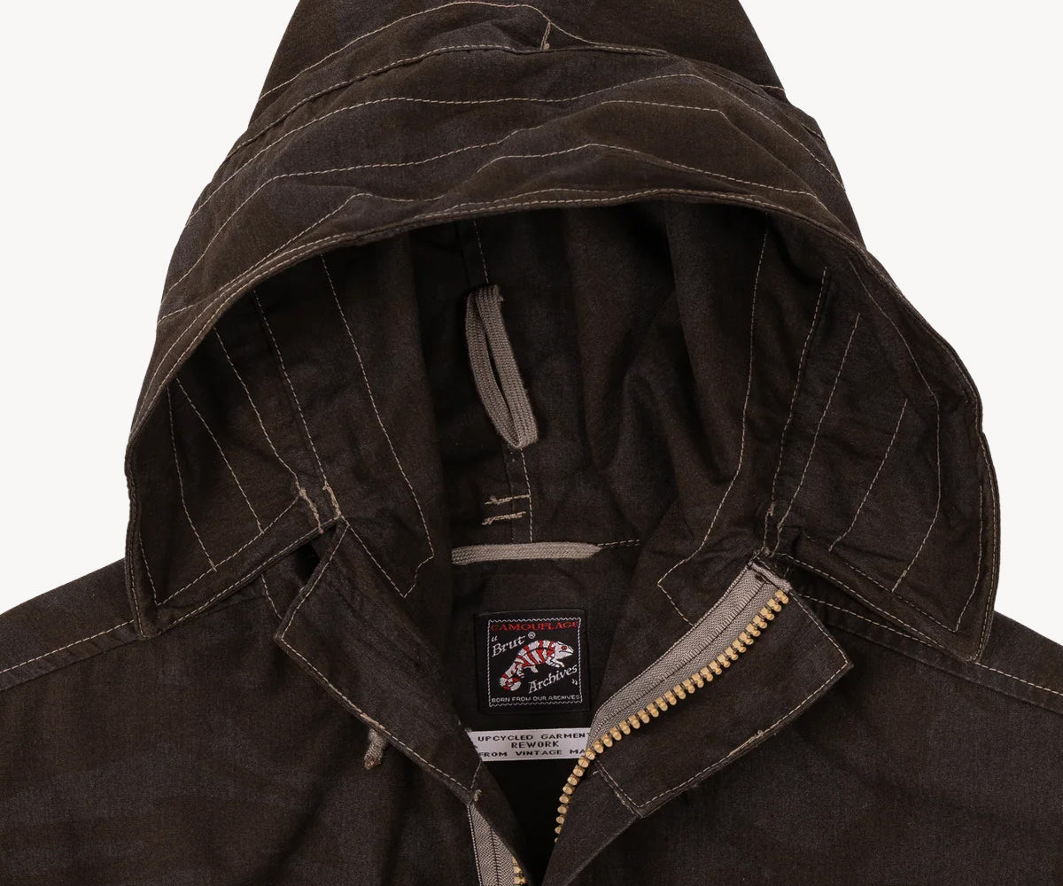 Vintage overdyed polycotton. Made in England vintage military jacket entirely reconstructed and overdyed in Paris. To respect this legacy all of our rework garments are made on vintage equipment.