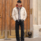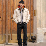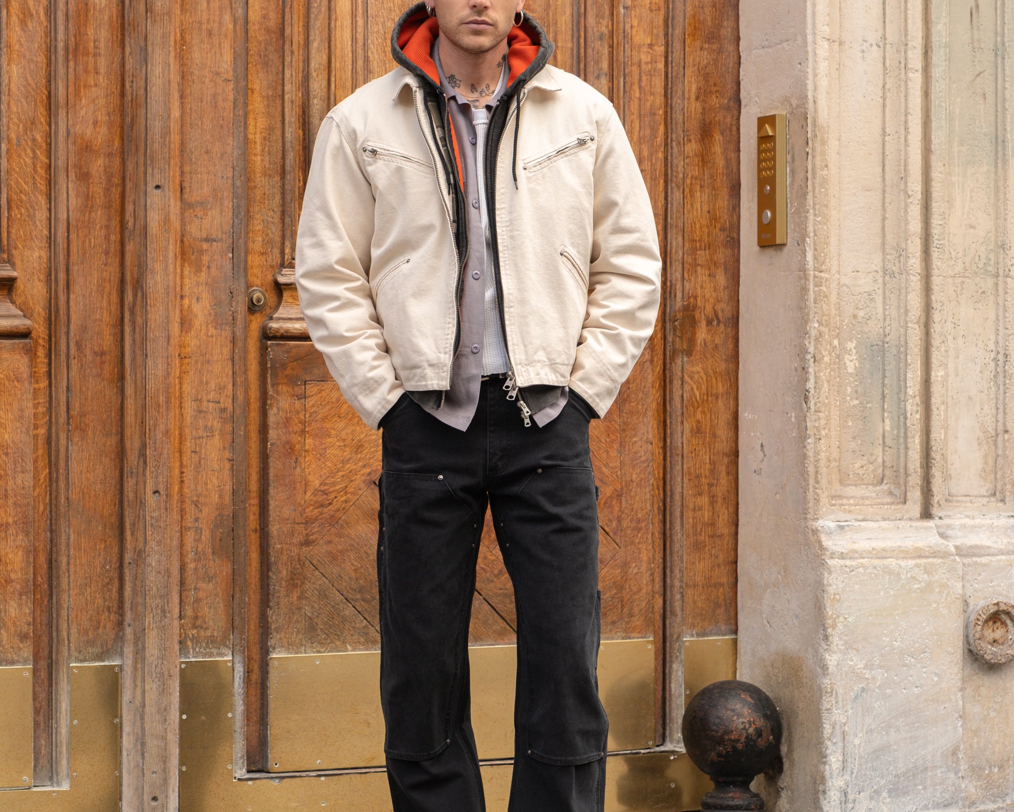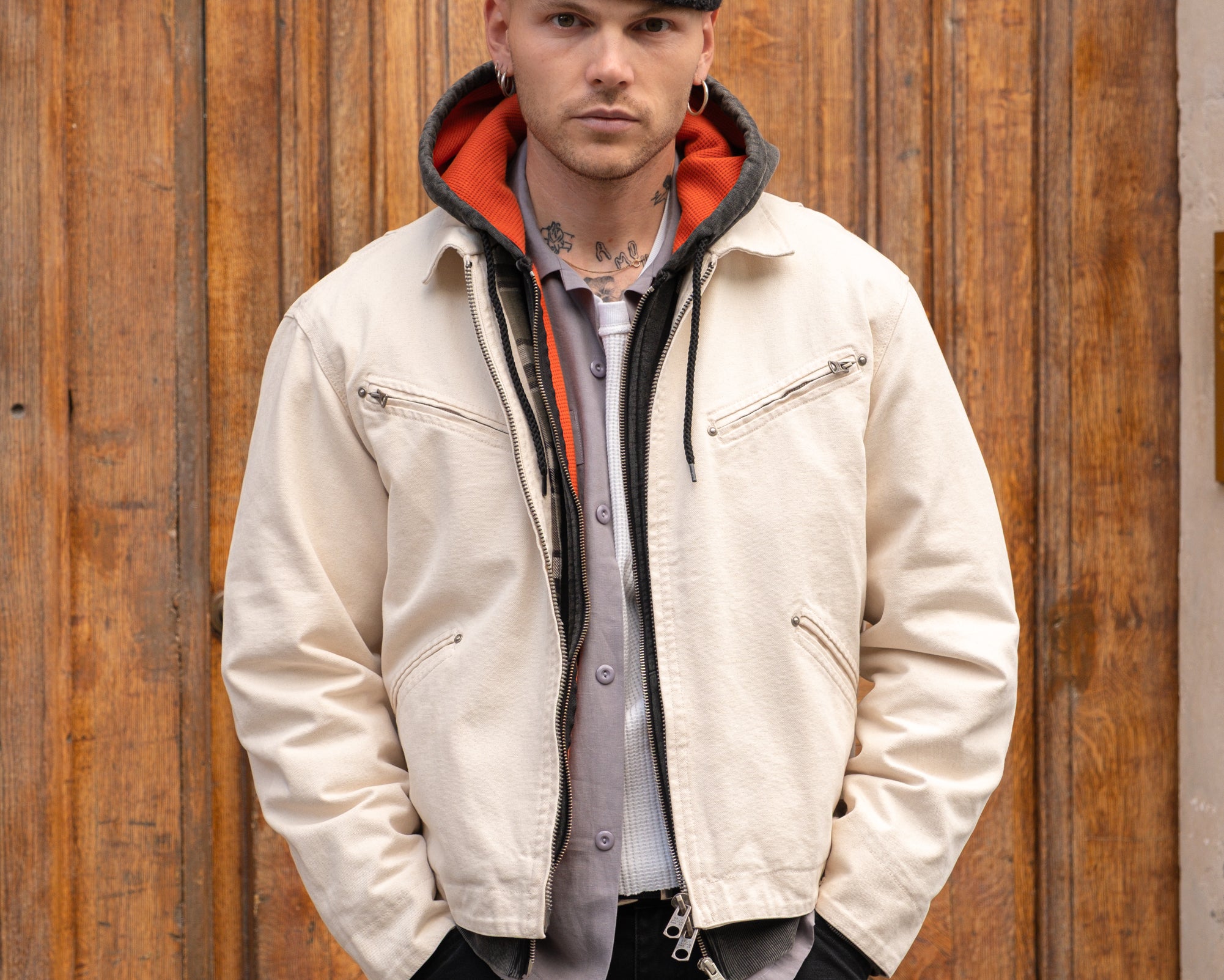 ID : This jacket gives the timeless zip-up workwear style a modern edge. It’s designed with a boxy, relaxed fit to keep things casual but still functional.
