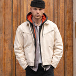 FABRIC : 100% heavyweight cotton canvas with a brushed cotton flannel lining.