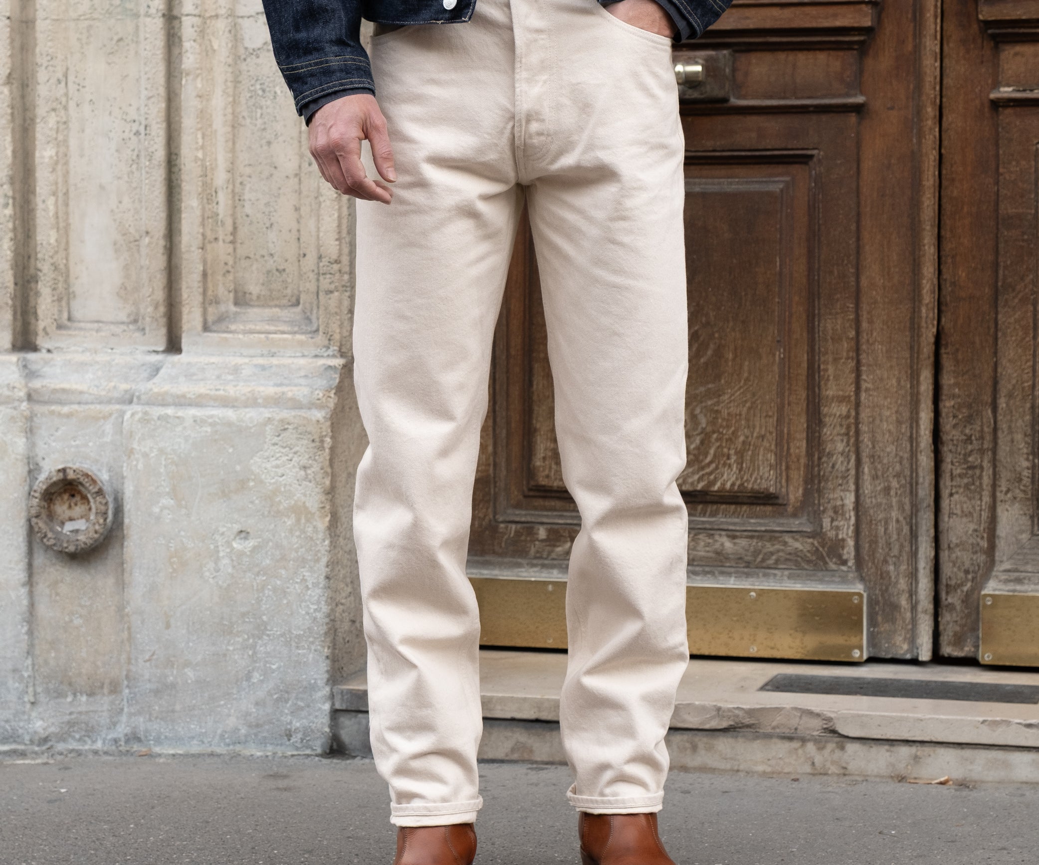 100% Organic cotton. All our denim are washed by our factory, they won't shrink at all ! Made in Tunisia.