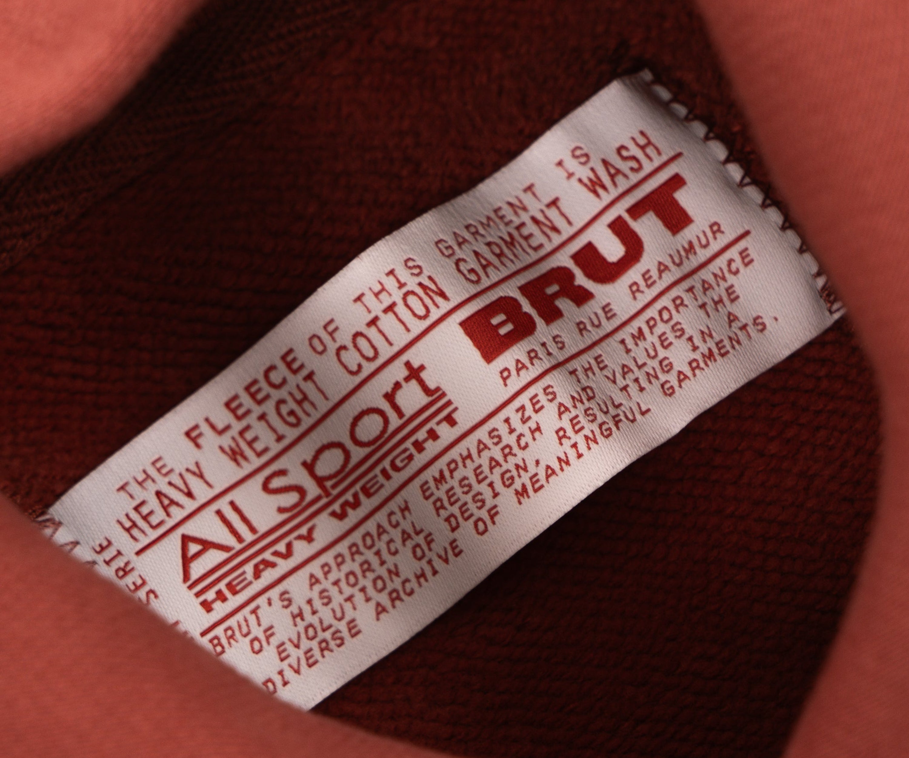 This sweatshirt represents BRUT's vision of the perfect hoodie, designed by our team in Paris after carefully studying the structure, design, weight, shape, and colors of our favorite vintage hoodies from our archive. After many samples, we arrived at what we deem to be the Best Sweat.